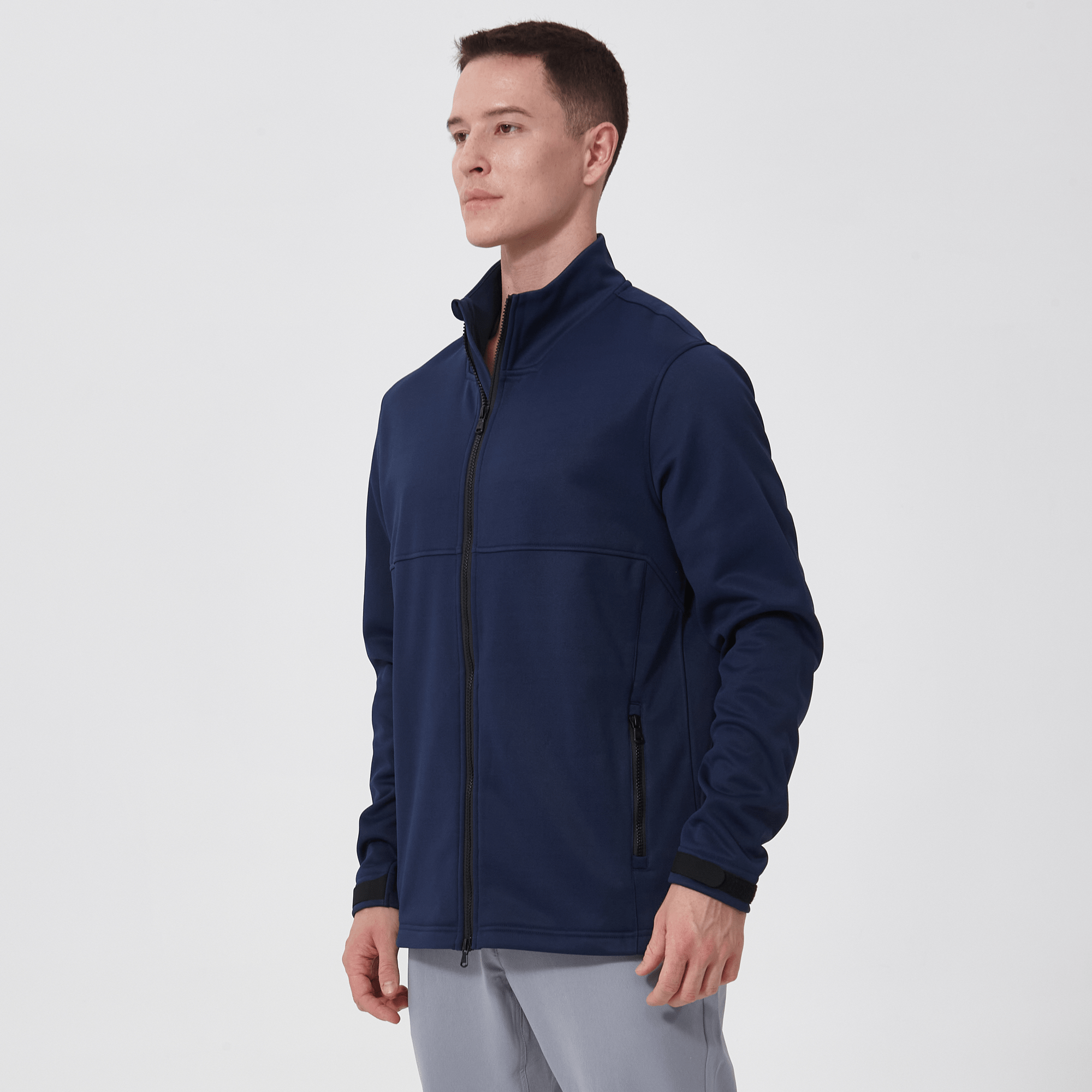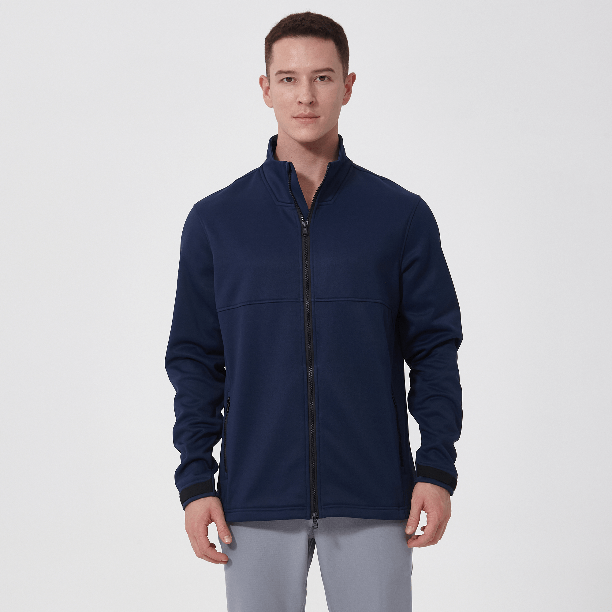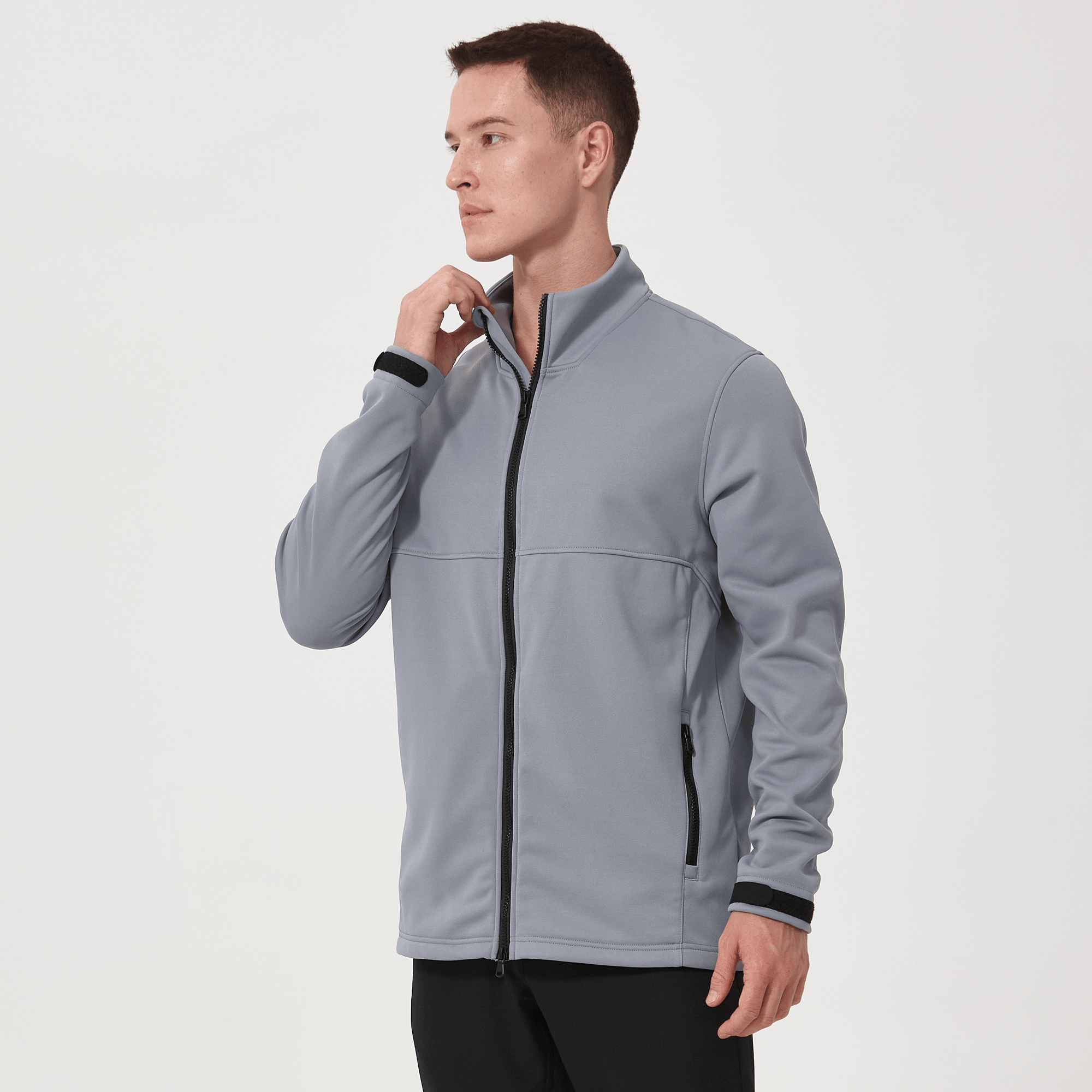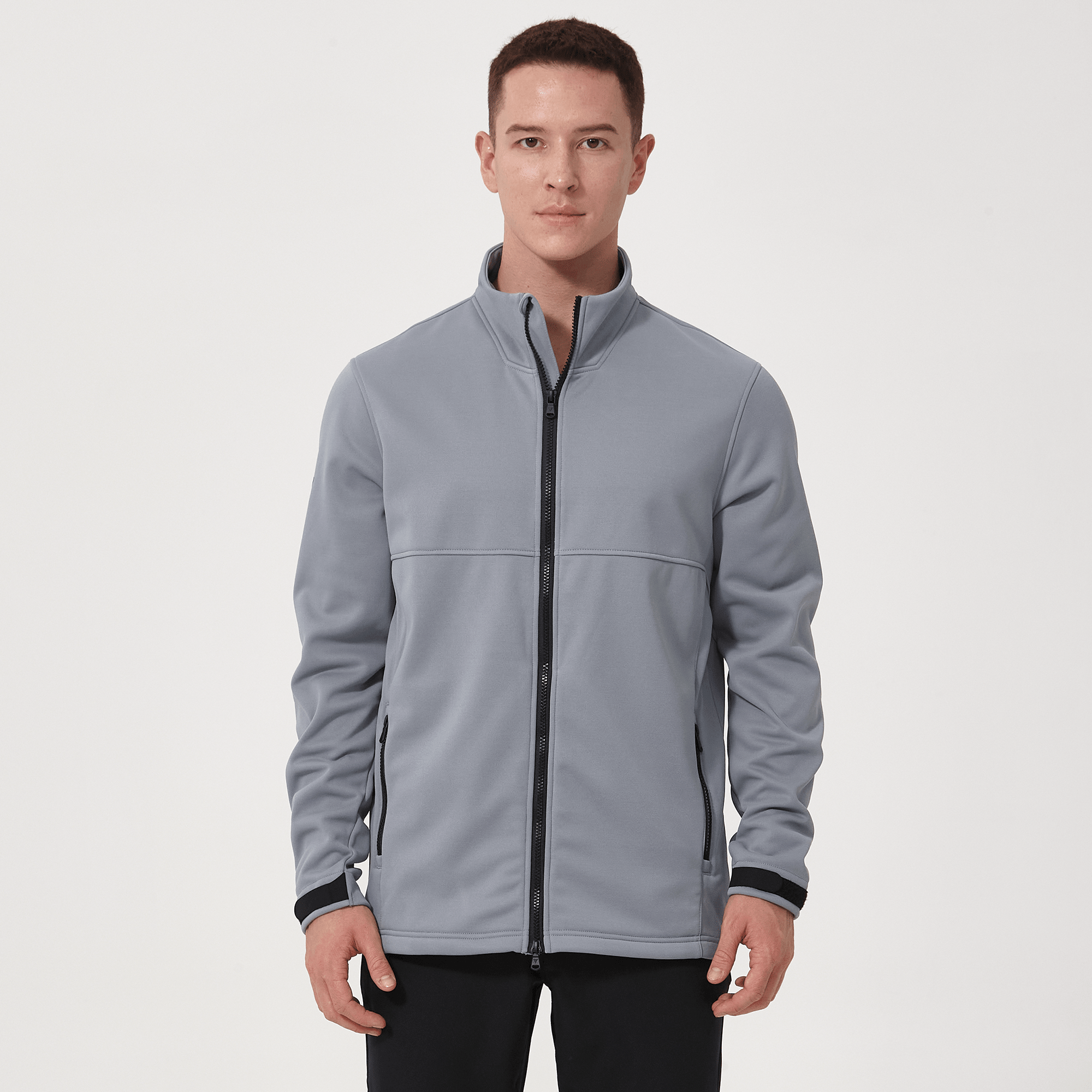 - Two-way front zip with stand-up collar
