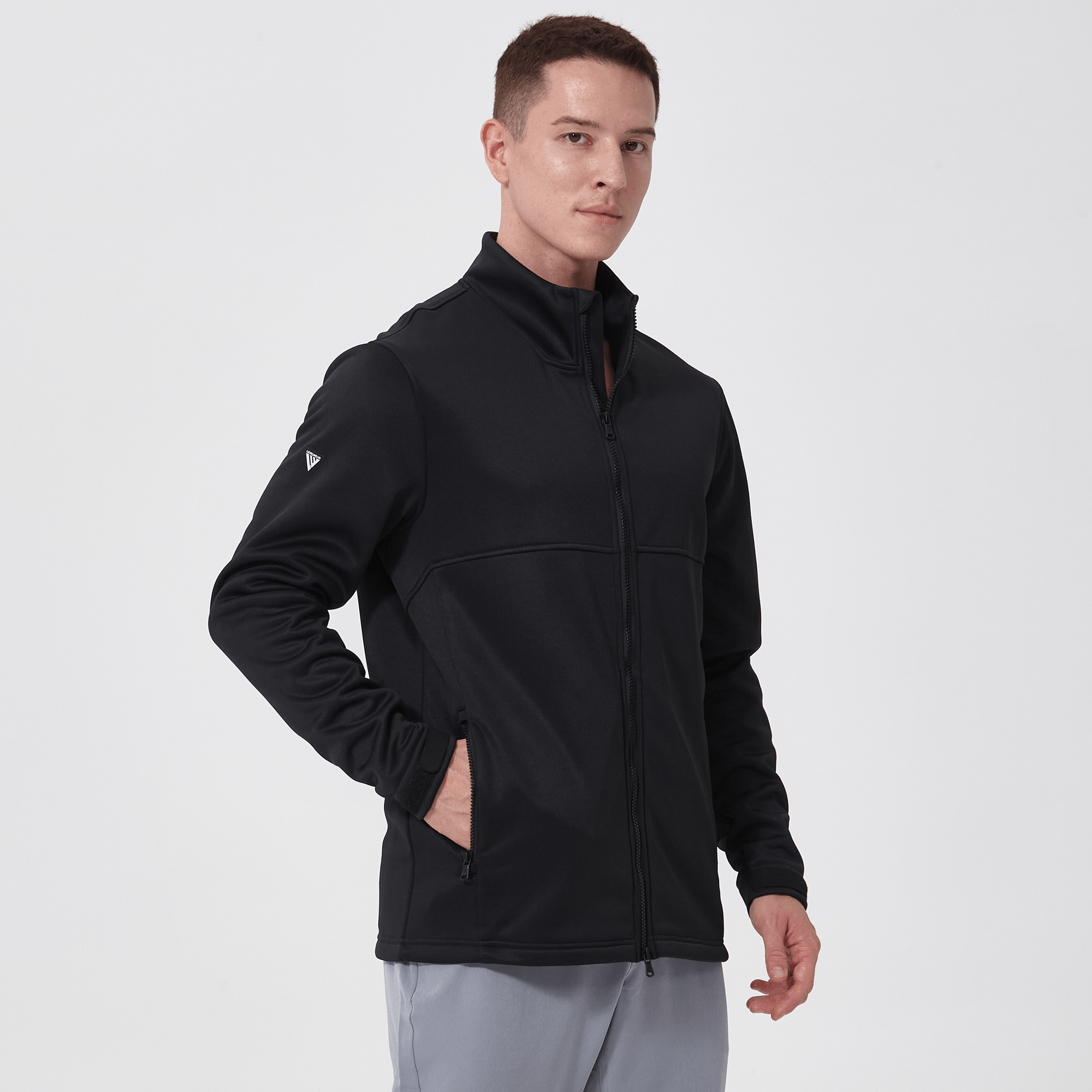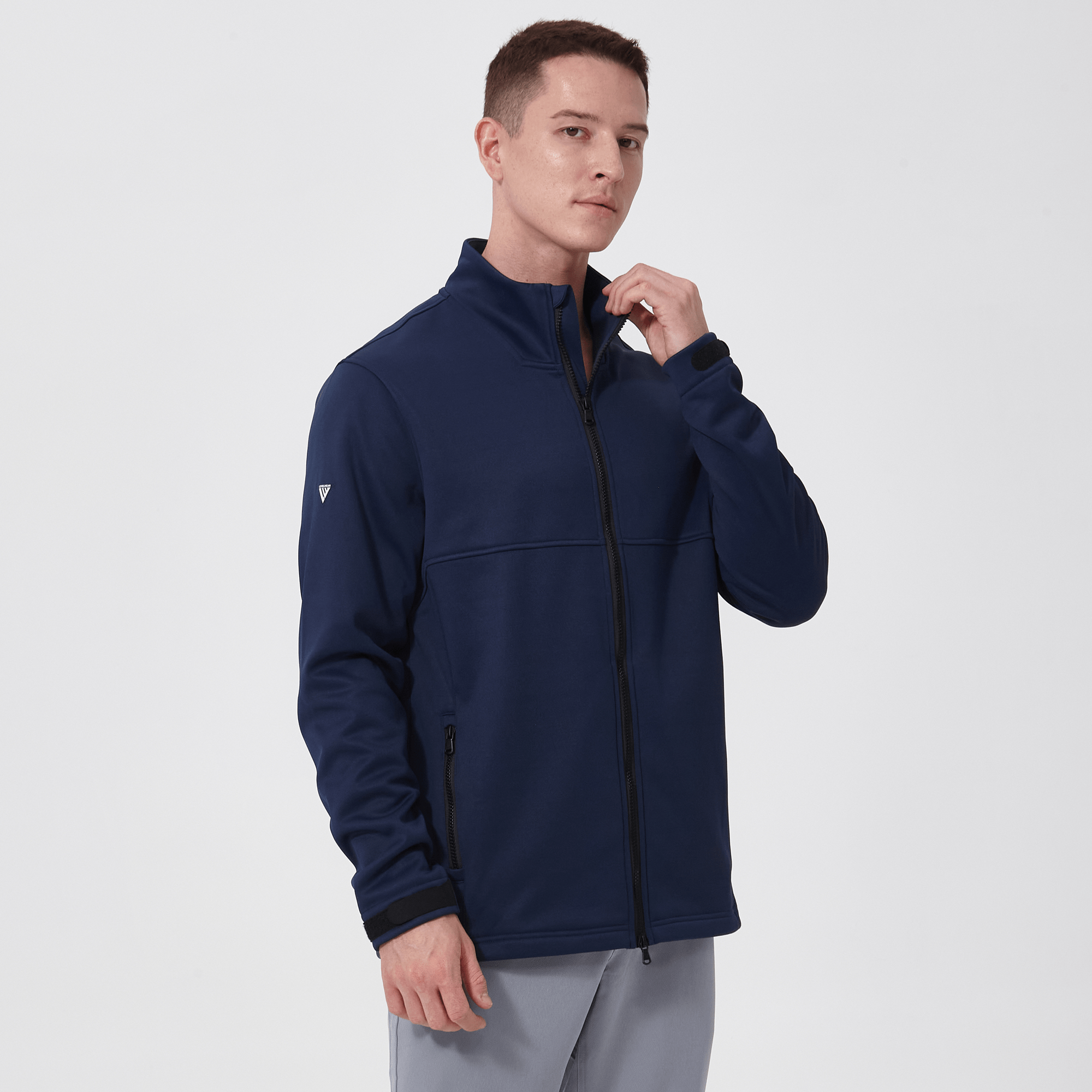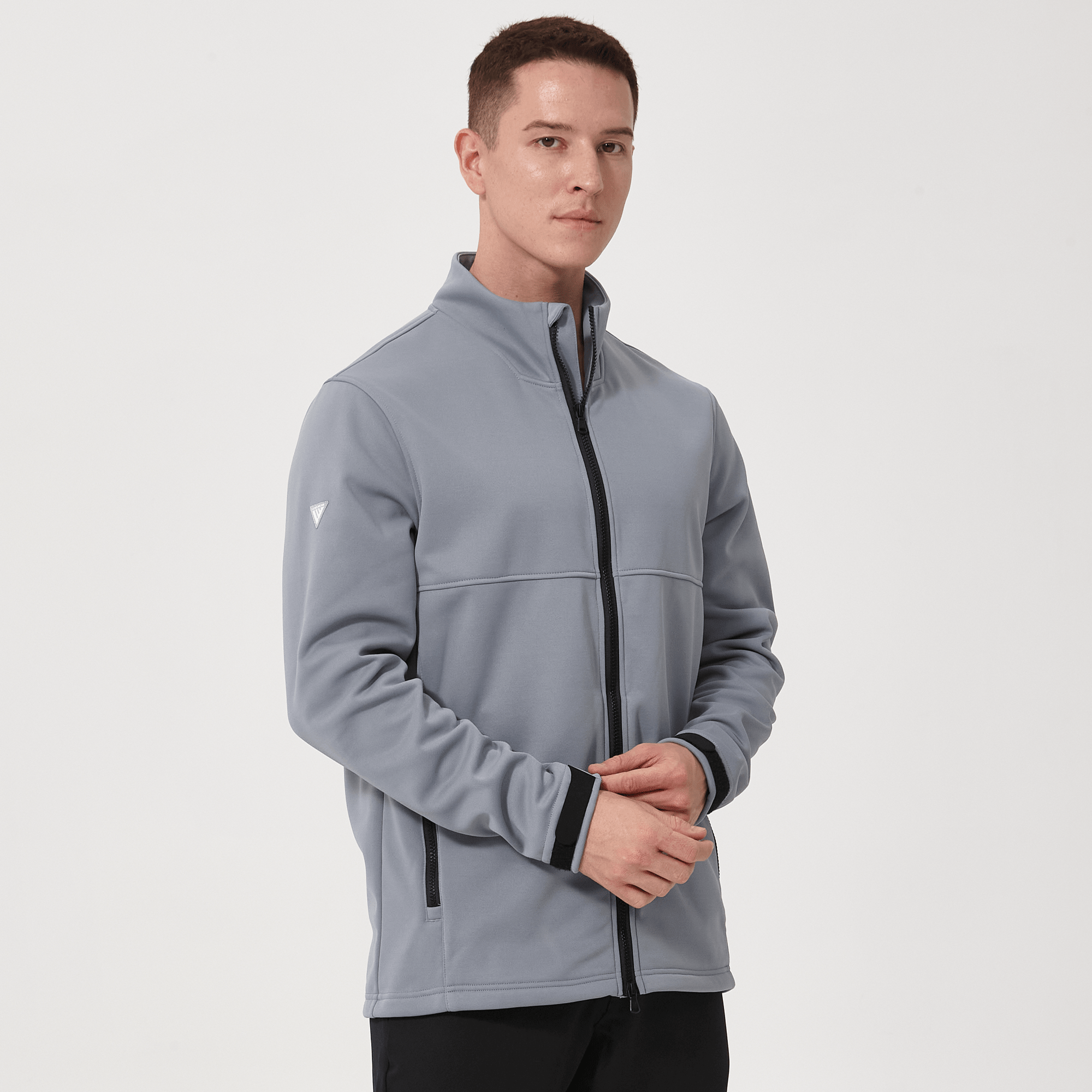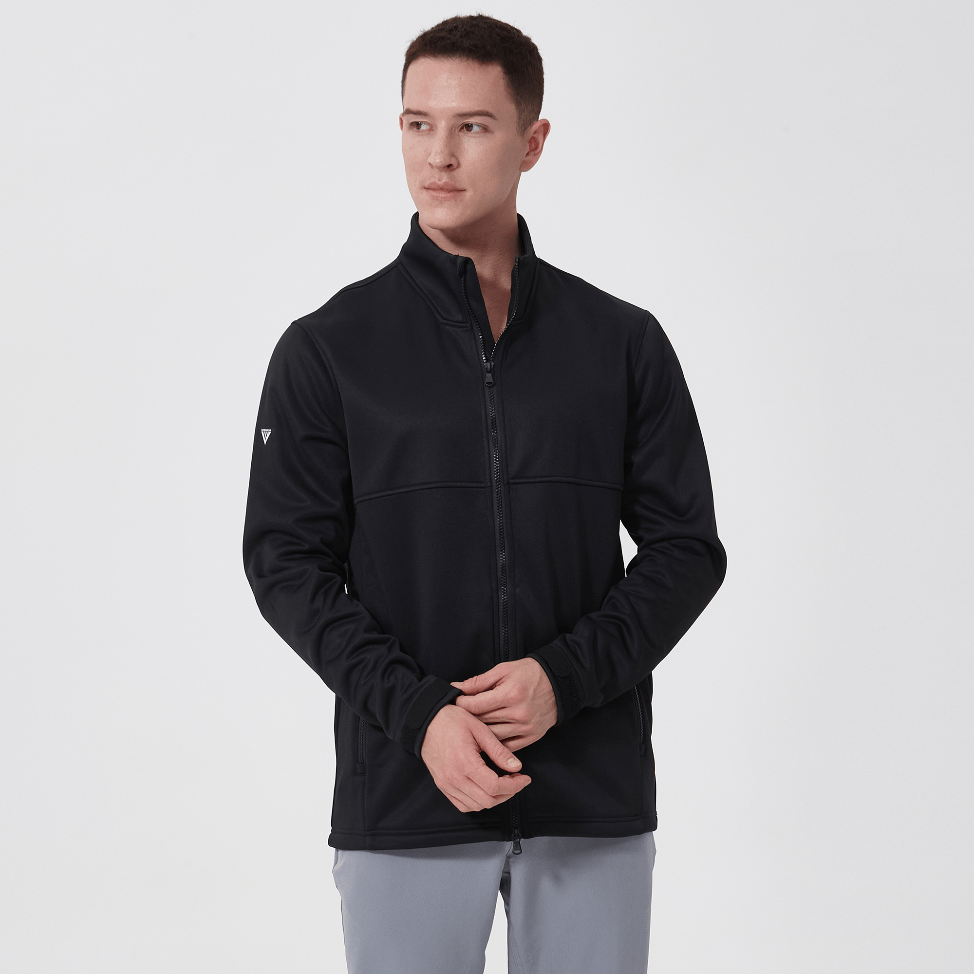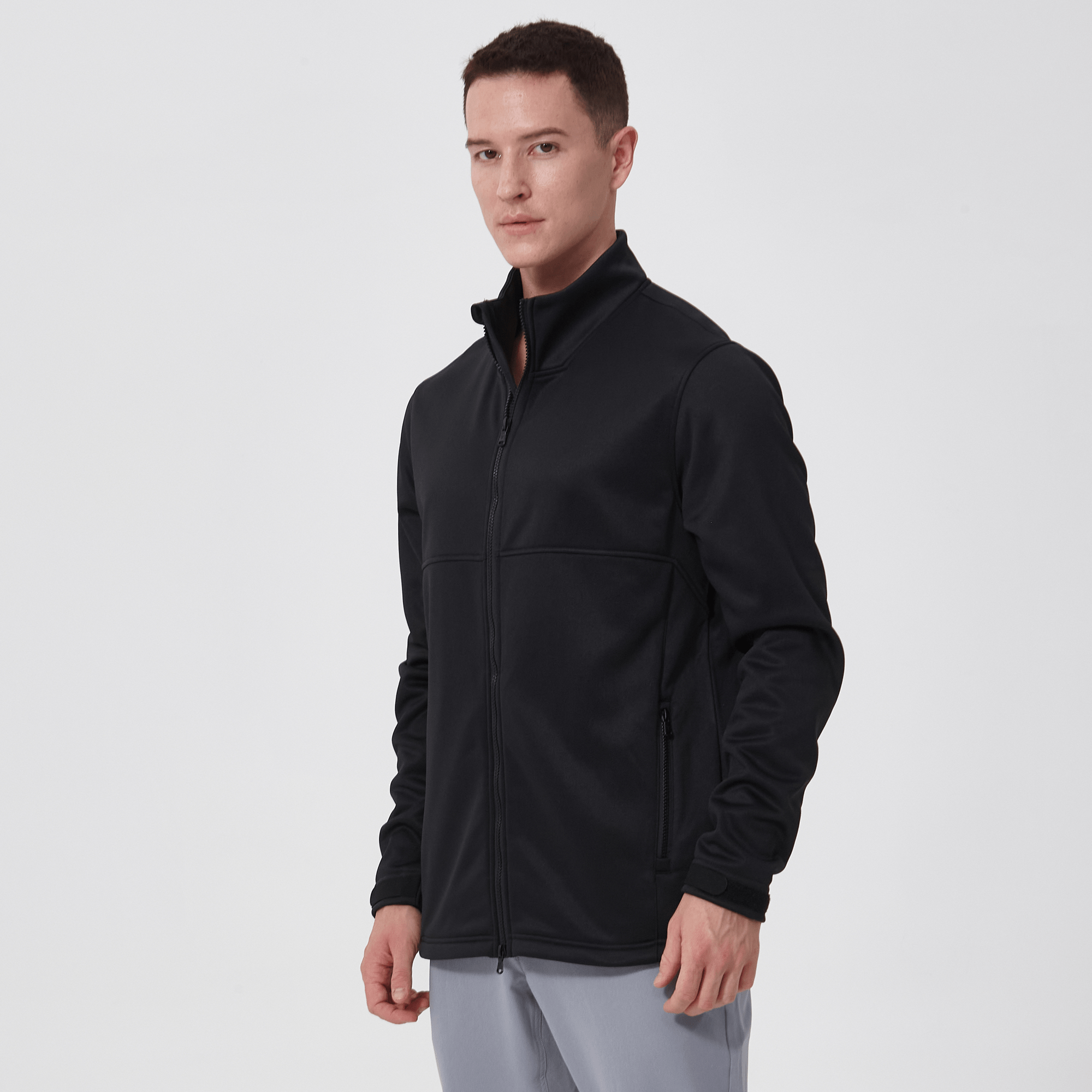 - Two-way front zip with stand-up collar