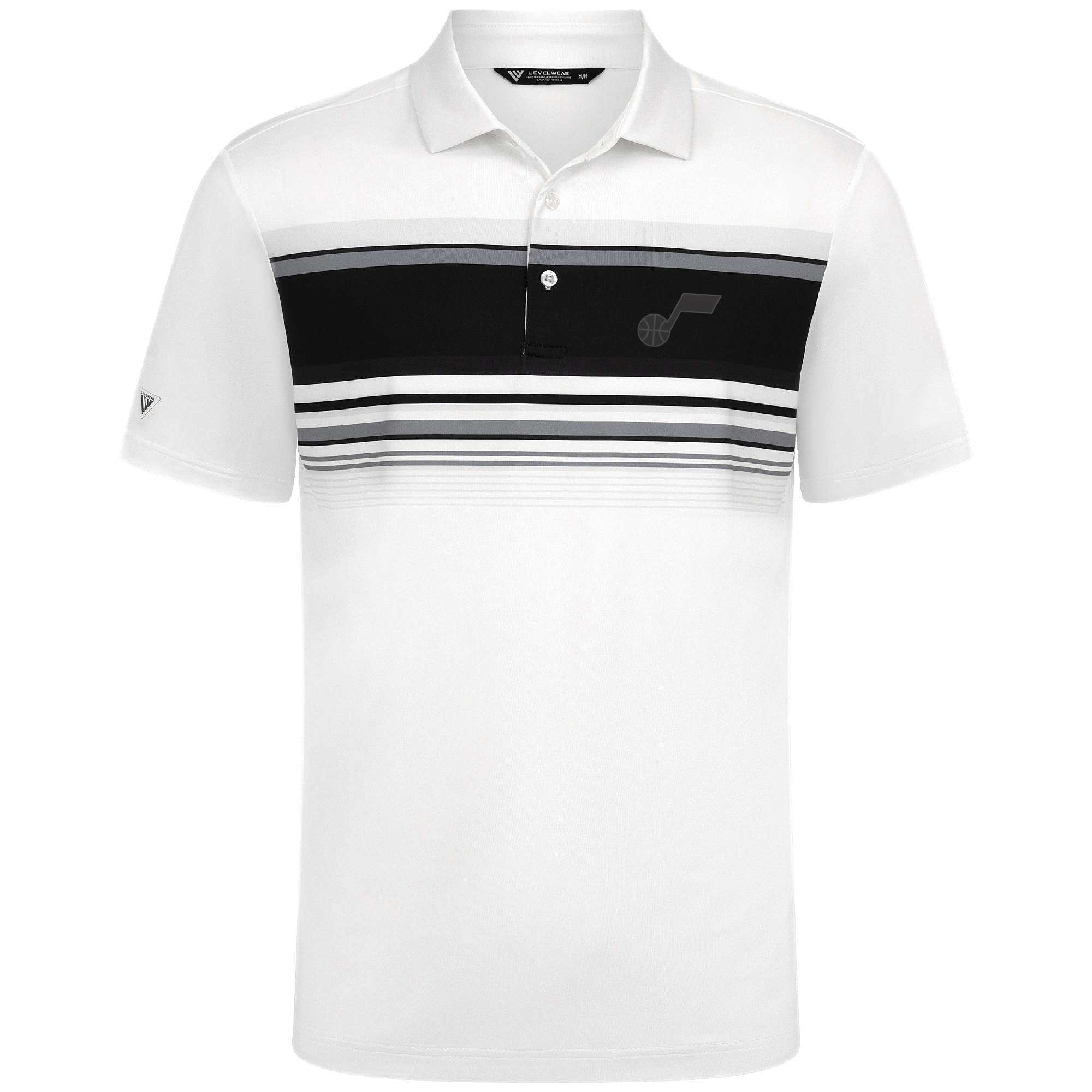 Elevate your game with the Onward men's polo, designed for avid golfers. This shirt features UPF50+ protection and moisture-wicking technology to keep you dry and shielded on sunny days. Its anti-bacterial properties ensure lasting freshness during play. The stylish stripe print across the front chest and a neat self-fabric collar with a built-in collar stay enhance its sophisticated and classic appearance. Tailored with a high-low hem and side slits for greater mobility, this polo is made from 92% recycled polyester and 8% spandex, blending eco-conscious fashion with functional design.