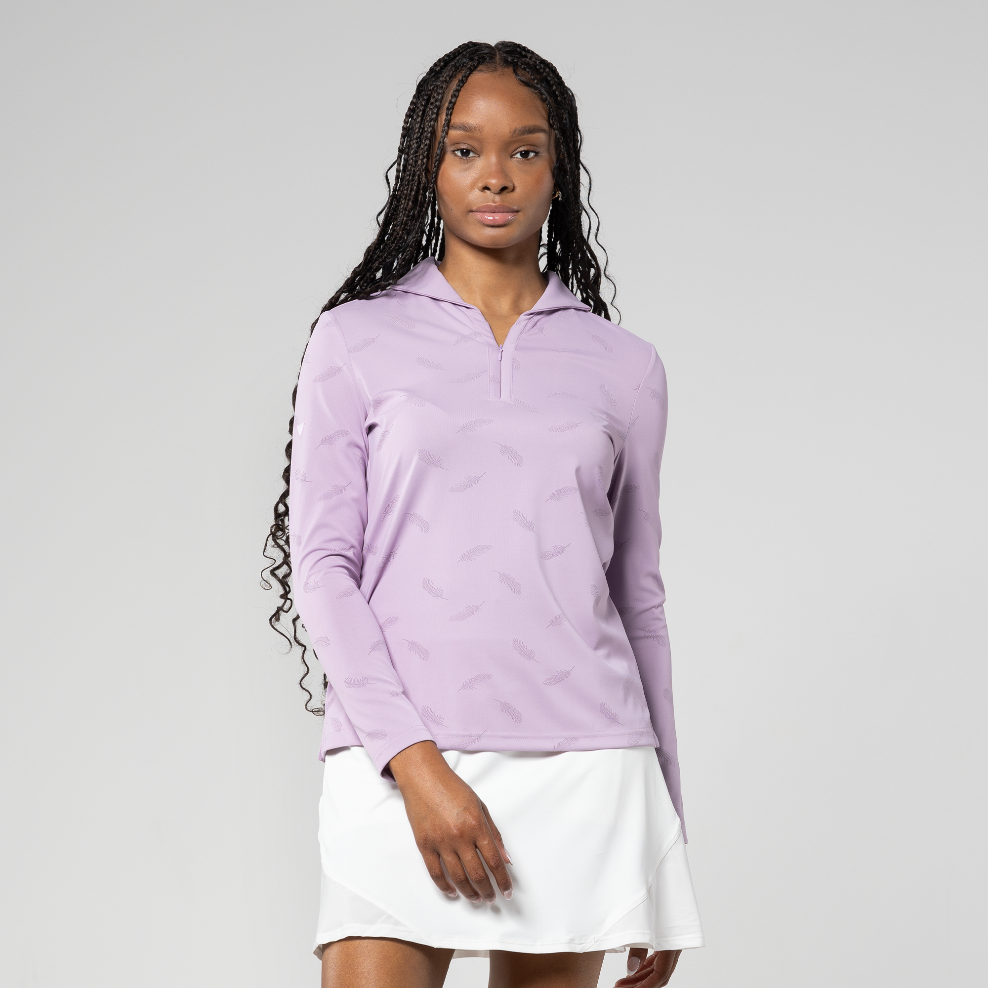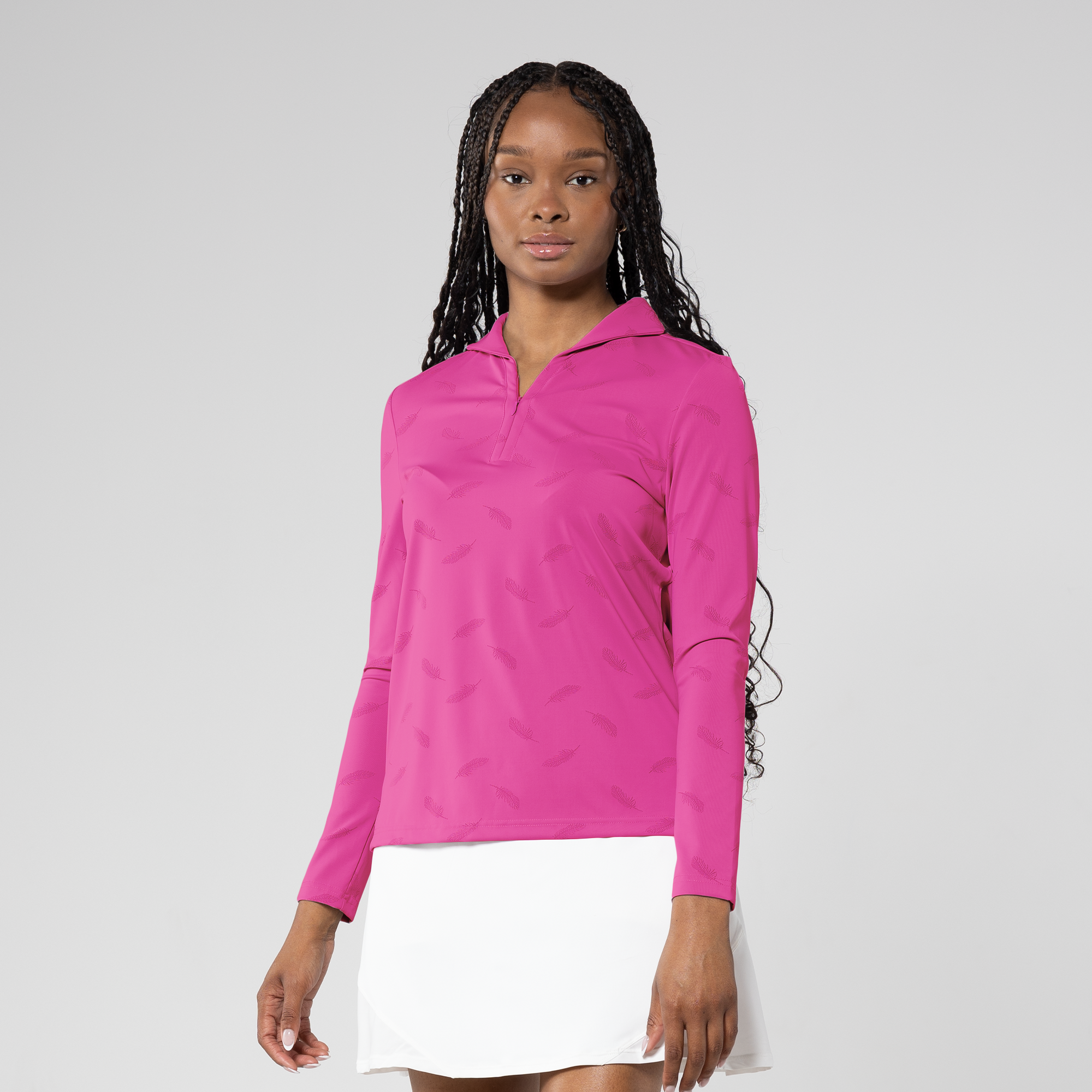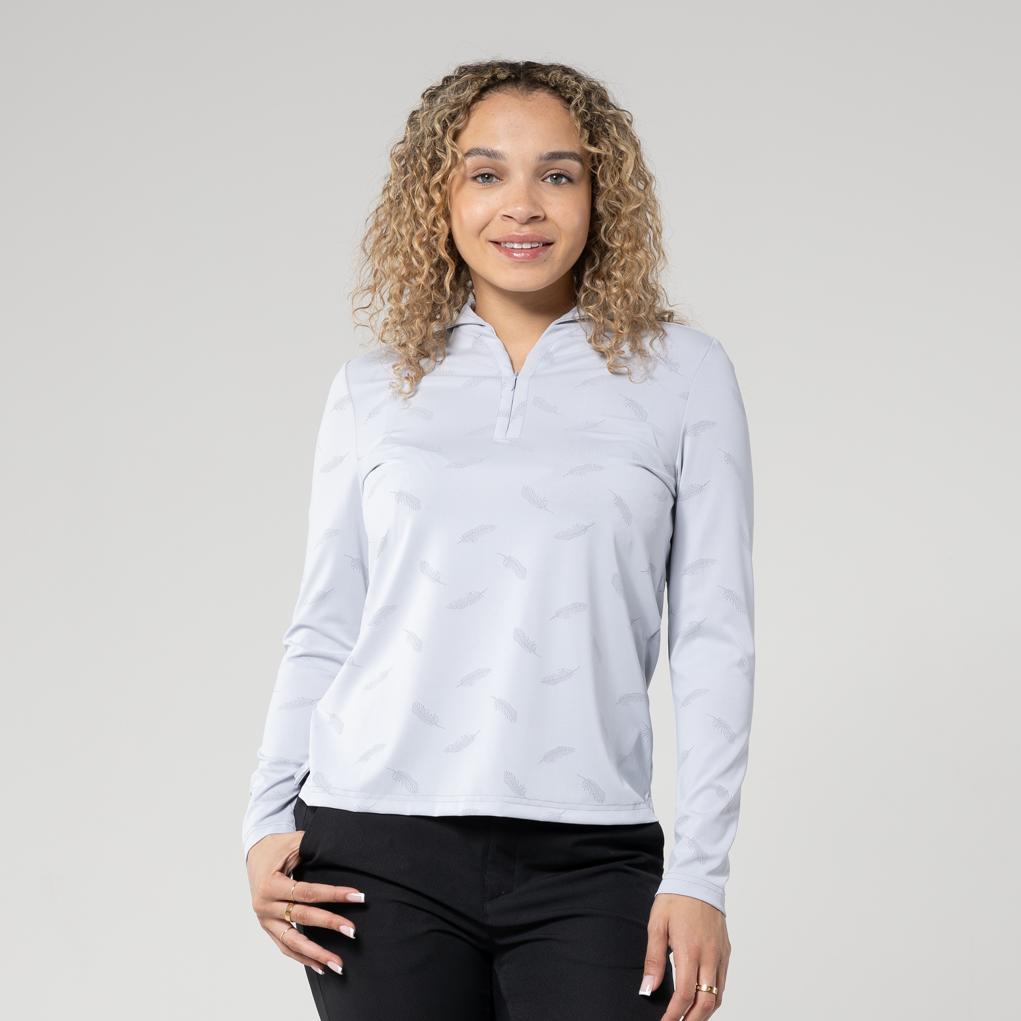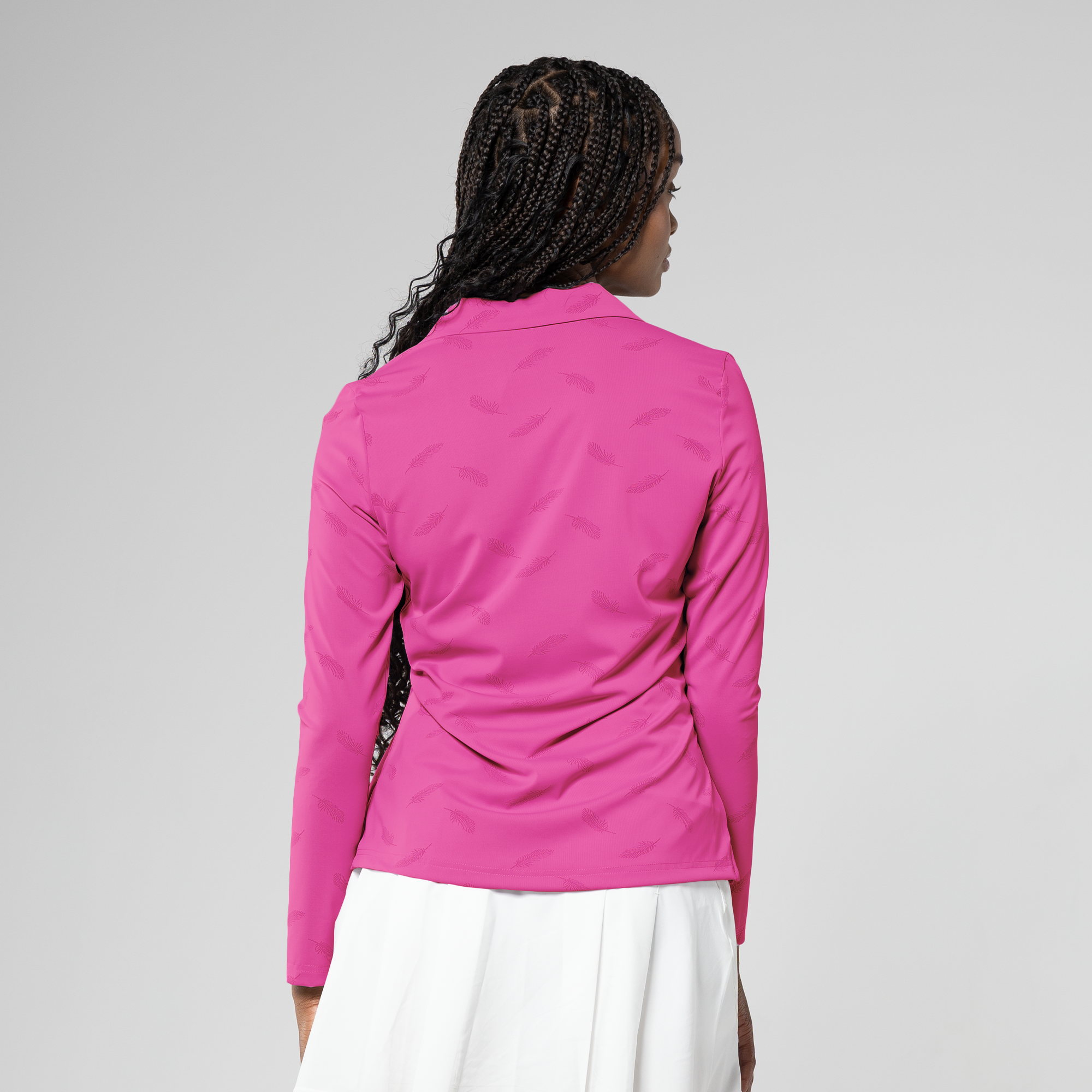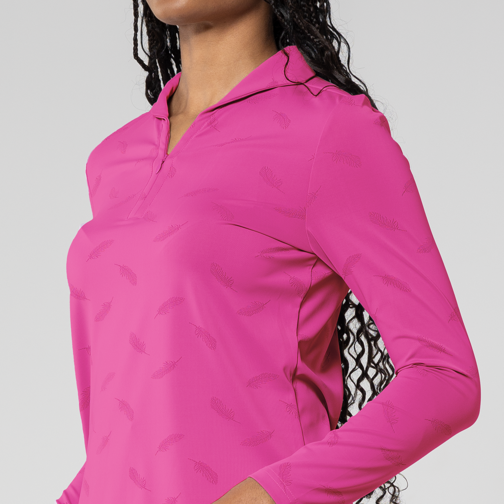 Elevate your style with the Aero long sleeve polo. Crafted from a blend of 68% nylon and 32% spandex, it ensures both flexibility and comfort. Its moisture-wicking properties keep you fresh, and the UPF 50+ protection adds an extra layer of functionality. The subtle all-over feather print pattern complements the fashionable collar design with button placket, making this shirt your perfect choice for a blend of fashion and performance during any occasion.