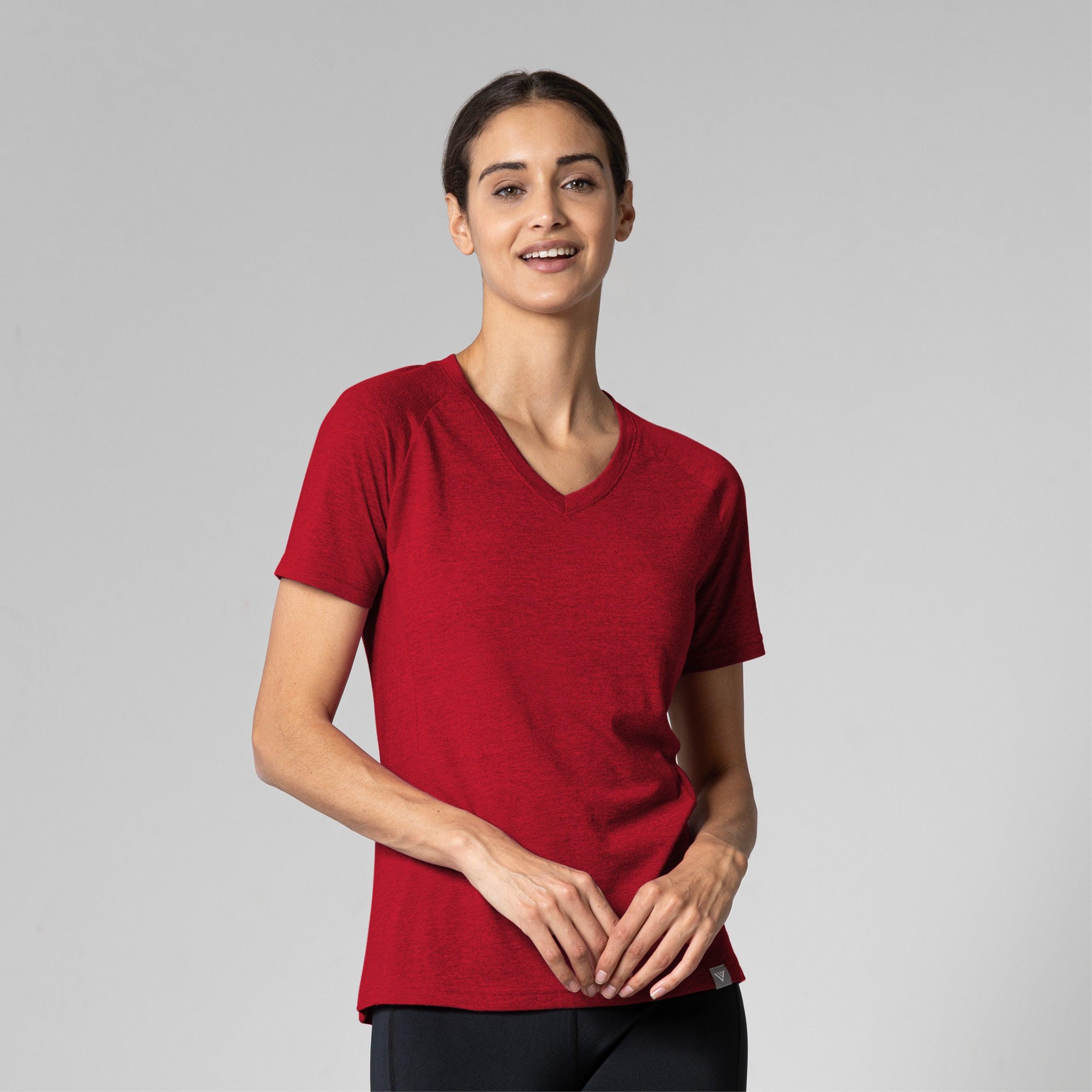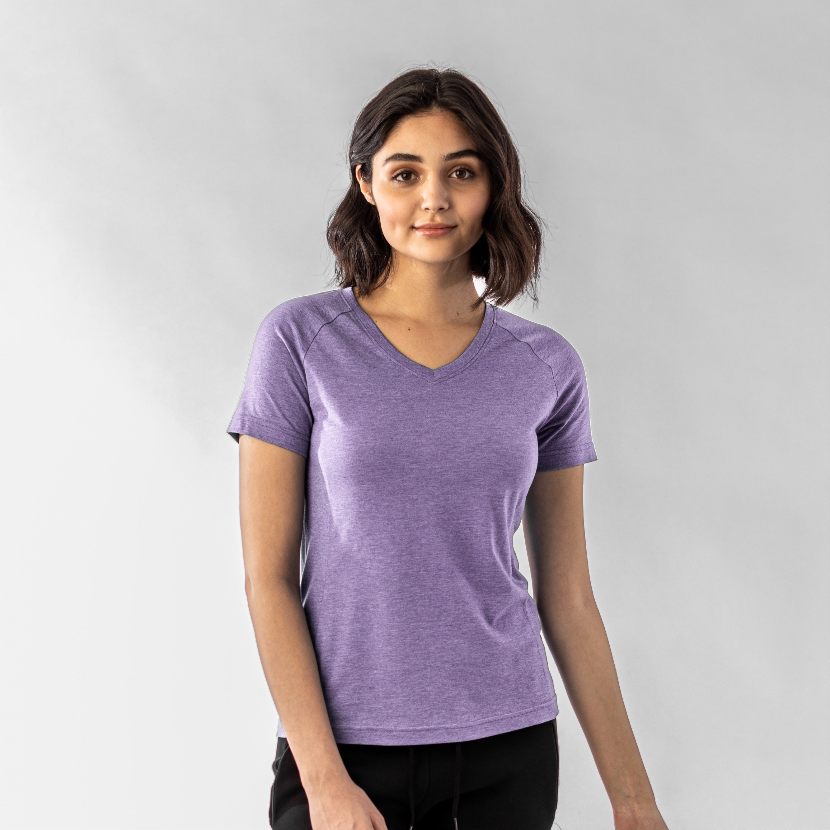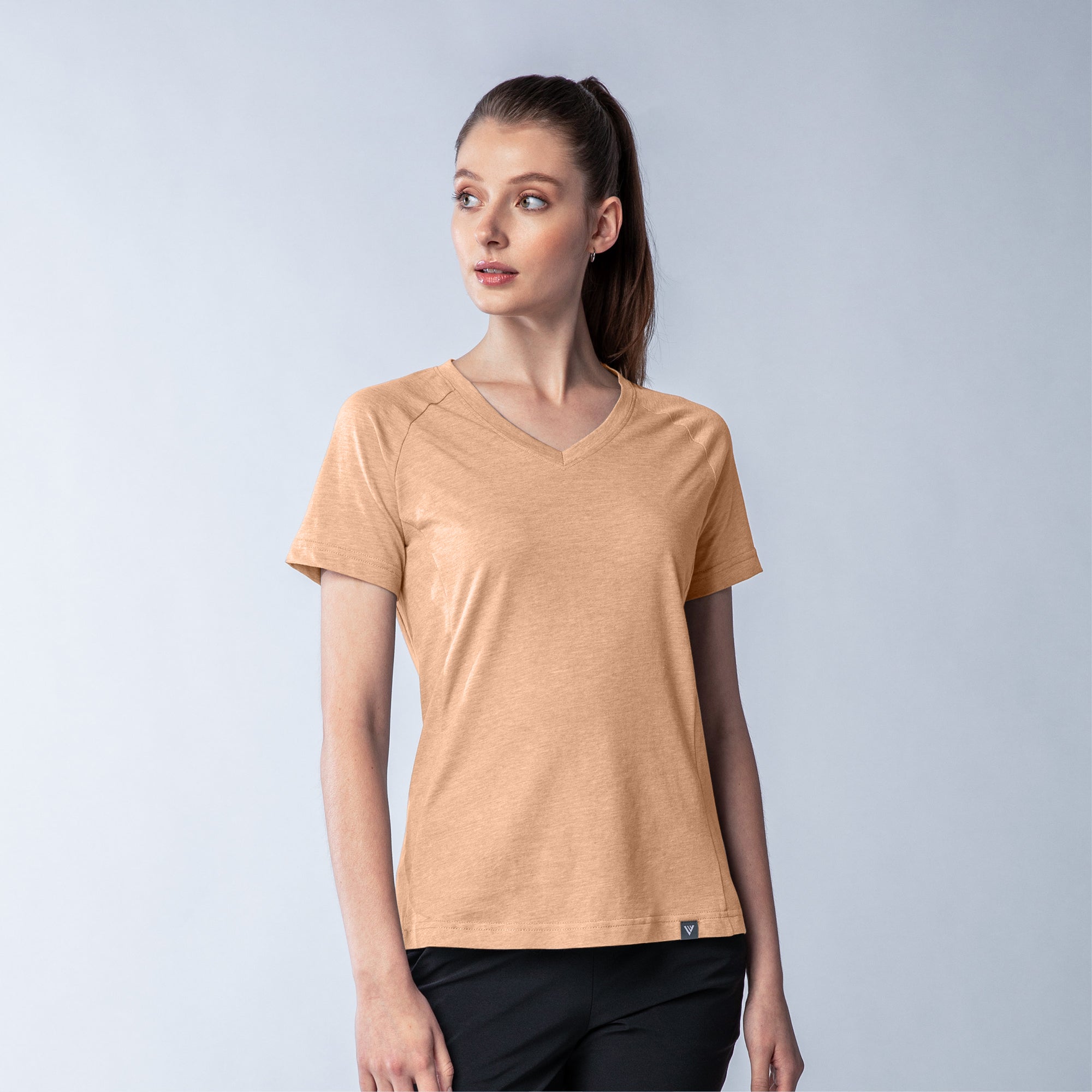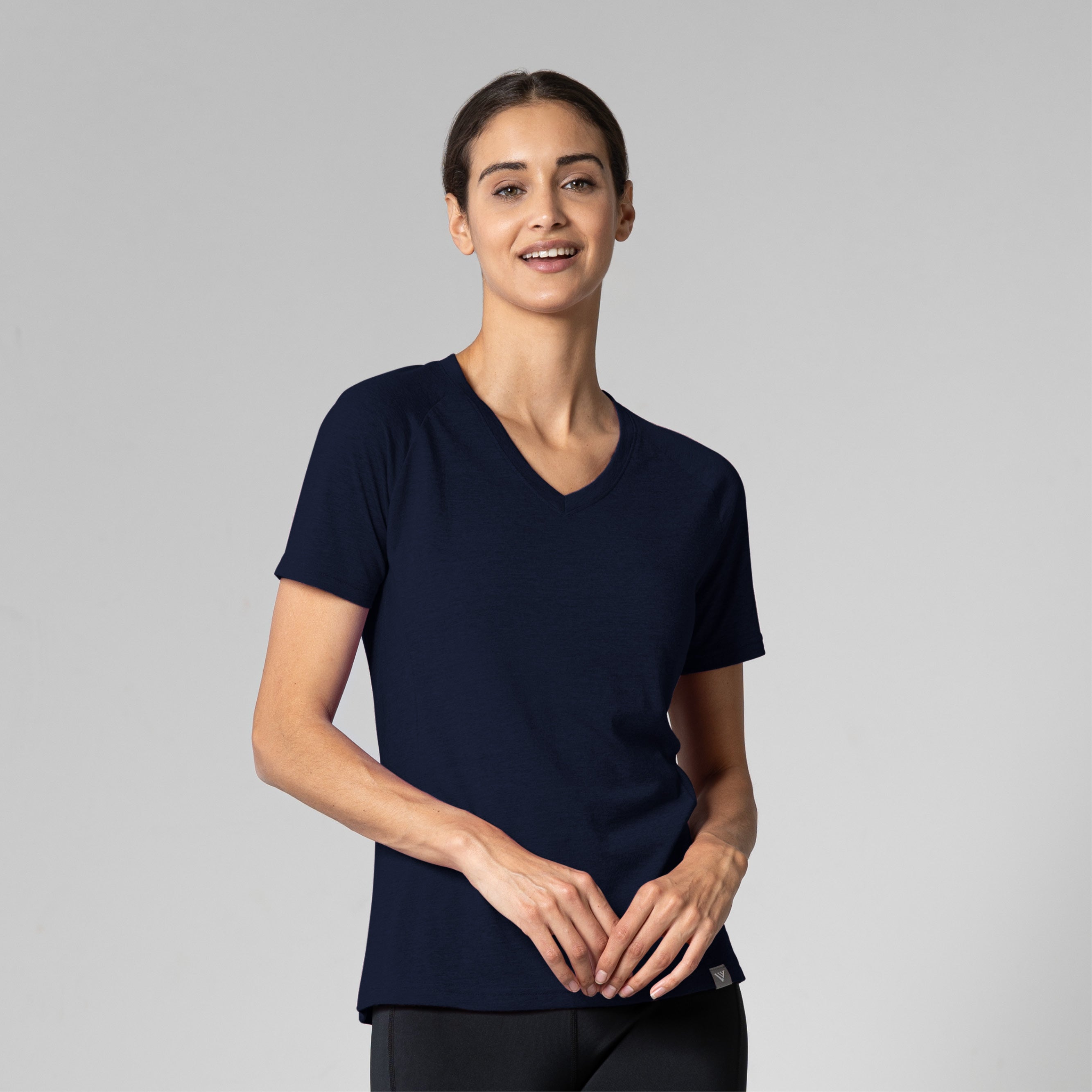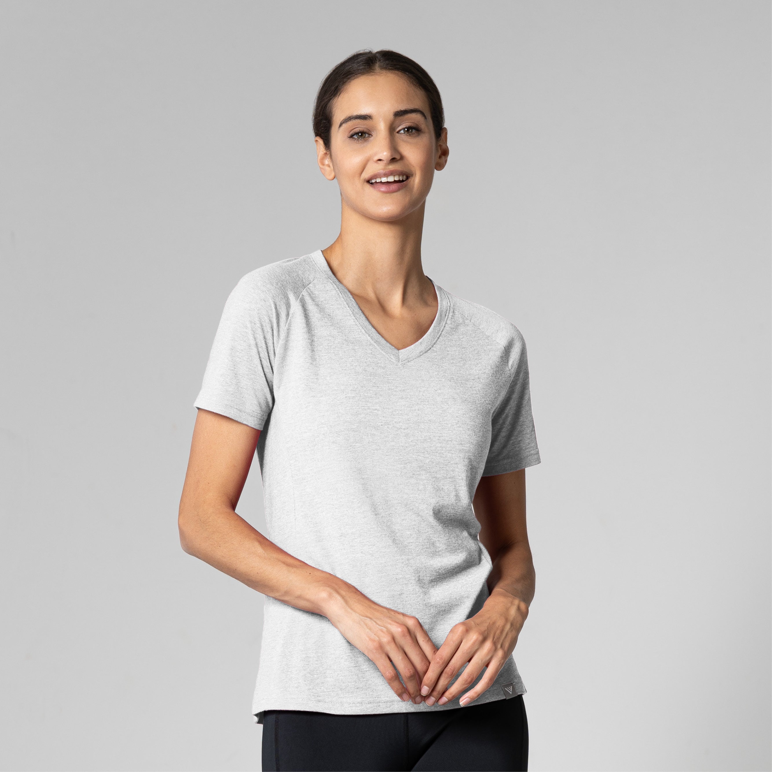 The Ariya is a sleek and sophisticated addition to any active wardrobe, blending form and function seamlessly. This top is crafted from a comfortable blend of 65% polyester and 35% cotton, offering durability and softness for any activity. It features a flattering V-neck that enhances its modern appeal, while the shaped raglan sleeves provide a tailored fit that allows for unrestricted movement. The high-low bottom hem adds a contemporary touch and additional coverage, complementing the side panels that contour gracefully to your body's shape. Whether you're heading to a workout or enjoying a casual day out, the Ariya delivers a chic look without sacrificing comfort.