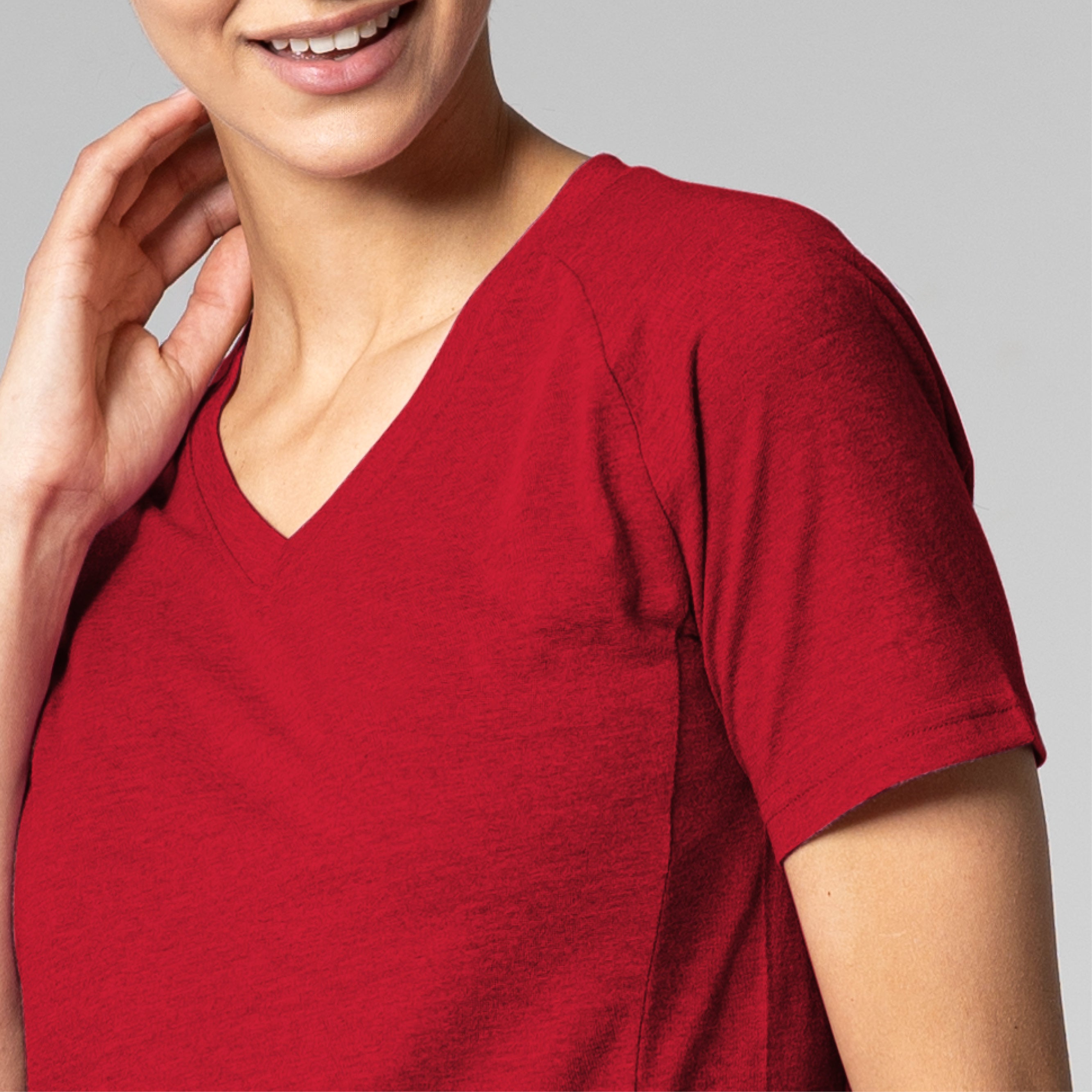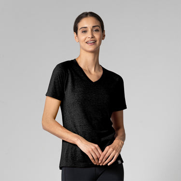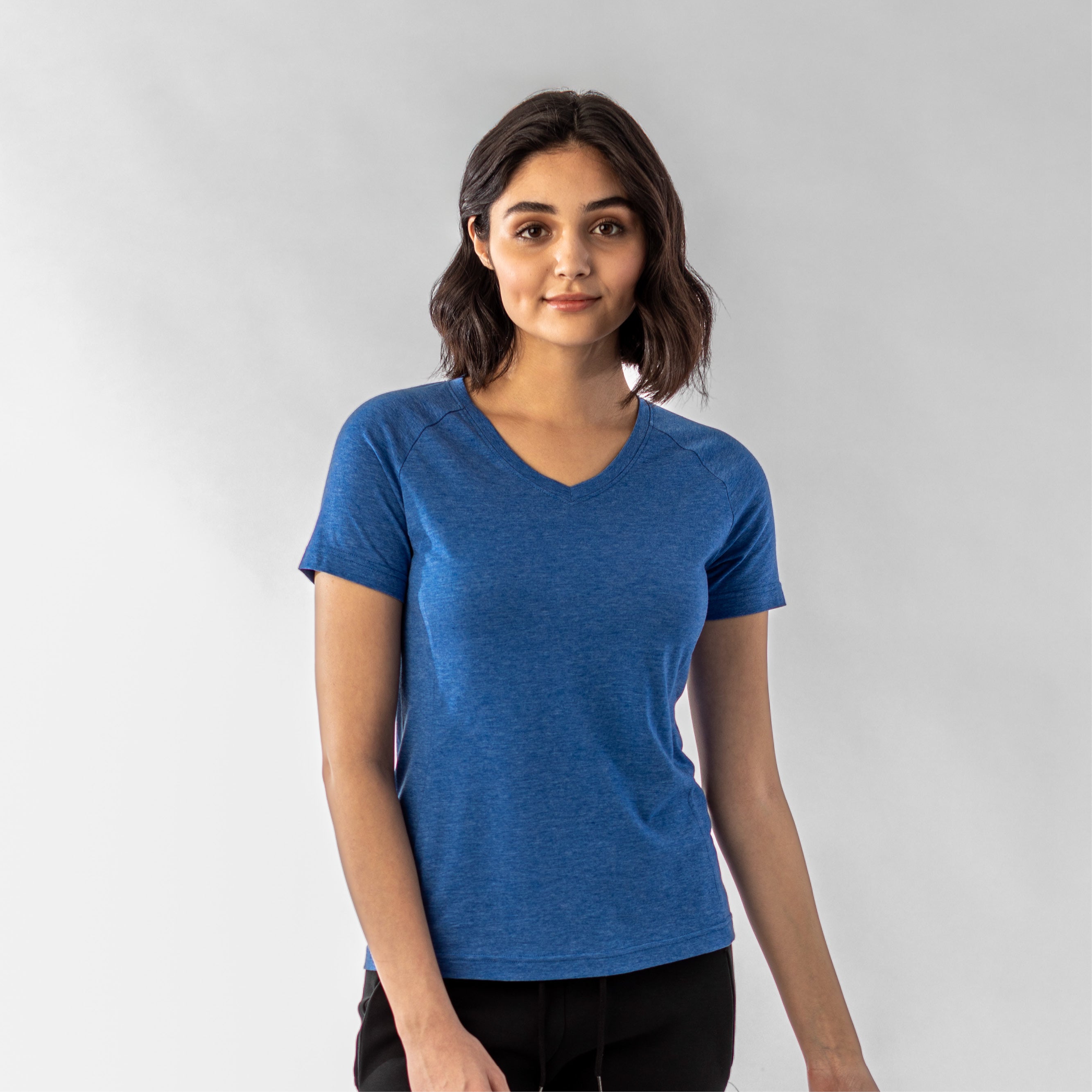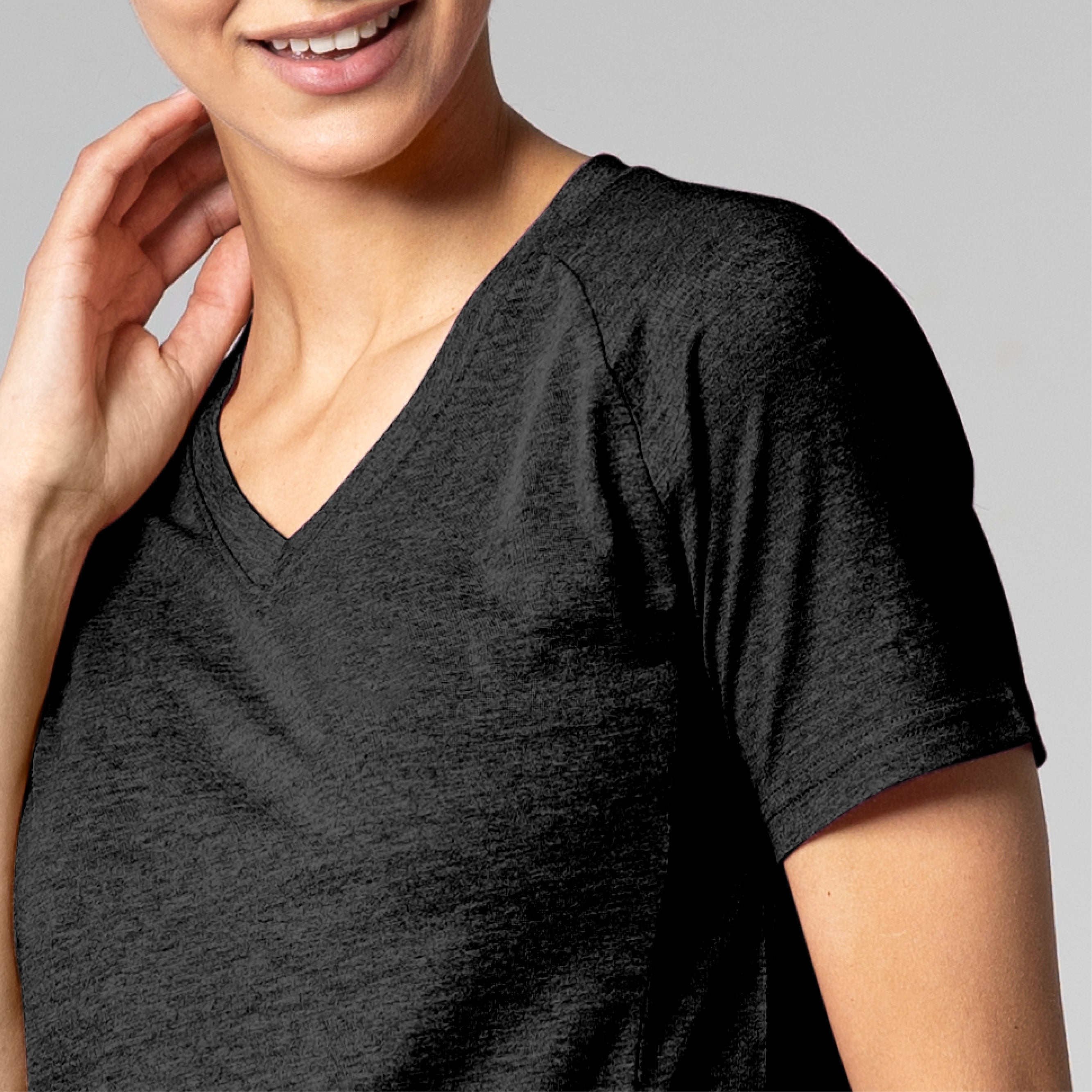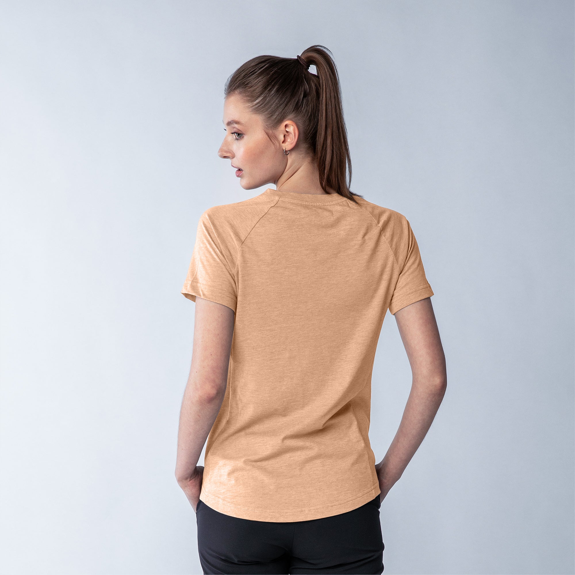 The Ariya is a sleek and sophisticated addition to any active wardrobe, blending form and function seamlessly. This top is crafted from a comfortable blend of 65% polyester and 35% cotton, offering durability and softness for any activity. It features a flattering V-neck that enhances its modern appeal, while the shaped raglan sleeves provide a tailored fit that allows for unrestricted movement. The high-low bottom hem adds a contemporary touch and additional coverage, complementing the side panels that contour gracefully to your body's shape. Whether you're heading to a workout or enjoying a casual day out, the Ariya delivers a chic look without sacrificing comfort.