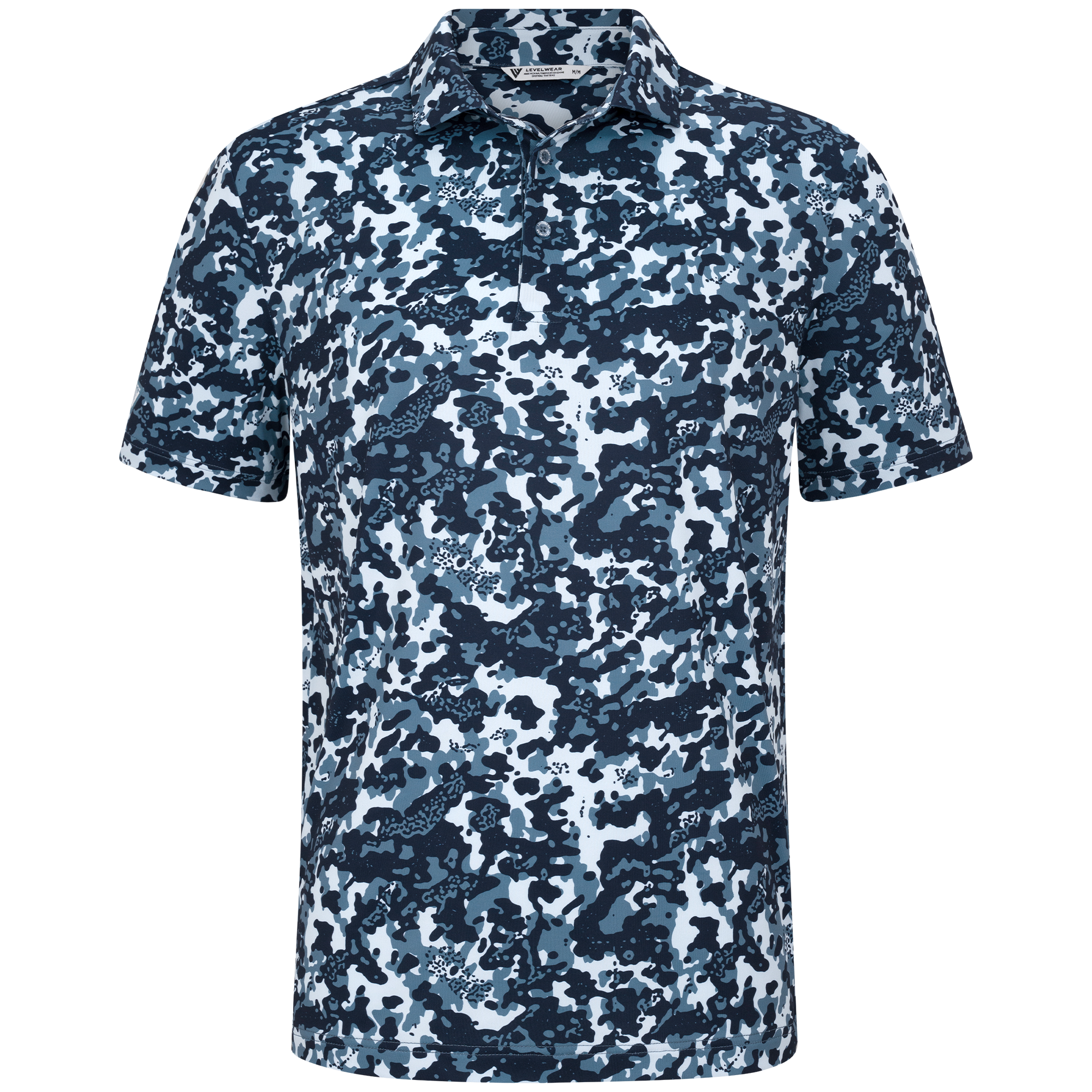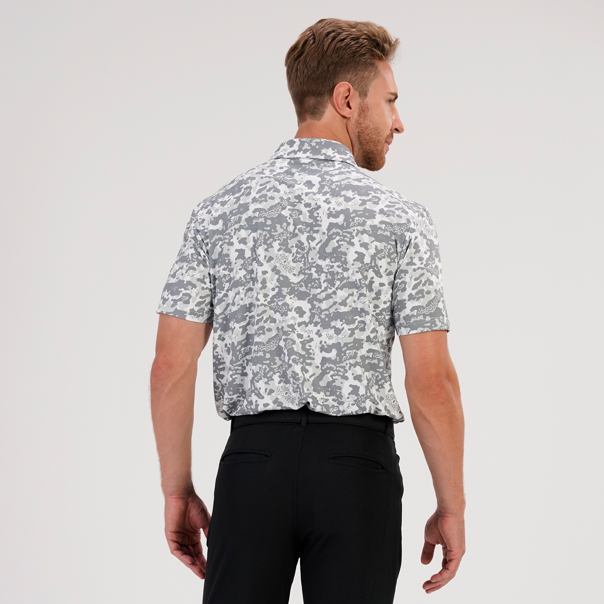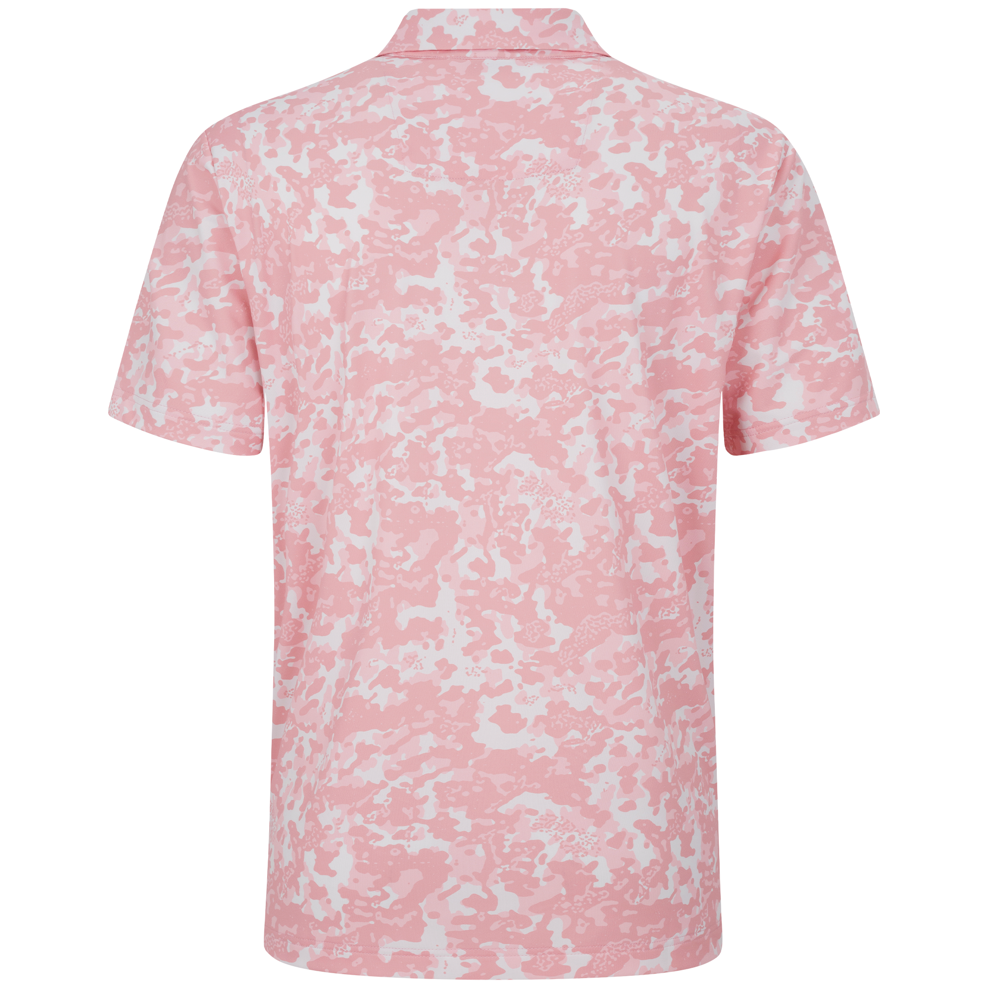 The Camo polo delivers all-day performance with moisture-wicking fabric and UPF 50+ sun protection. Designed with a contrast collar and built-in collar stay for a clean finish, plus forward shoulder seams for better mobility. The high-low hem with side slits offers added coverage and ease of movement, while the all-over camo print adds a bold, athletic edge.