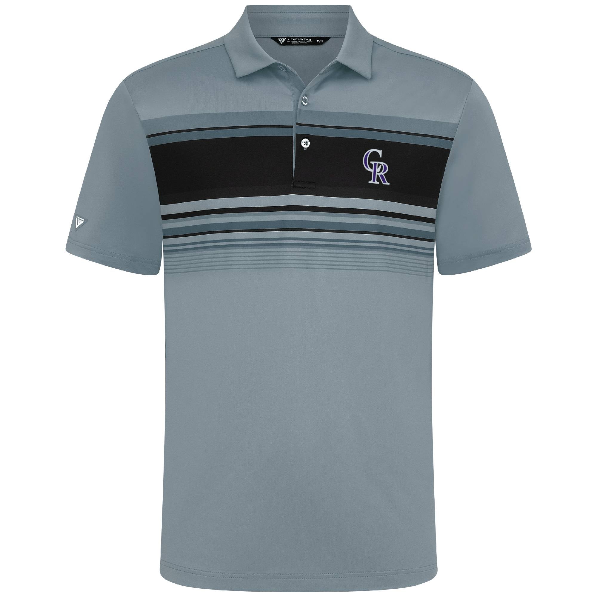 Elevate your game with the Onward men's polo, designed for avid golfers. This shirt features UPF50+ protection and moisture-wicking technology to keep you dry and shielded on sunny days. Its anti-bacterial properties ensure lasting freshness during play. The stylish stripe print across the front chest and a neat self-fabric collar with a built-in collar stay enhance its sophisticated and classic appearance. Tailored with a high-low hem and side slits for greater mobility, this polo is made from 92% recycled polyester and 8% spandex, blending eco-conscious fashion with functional design.