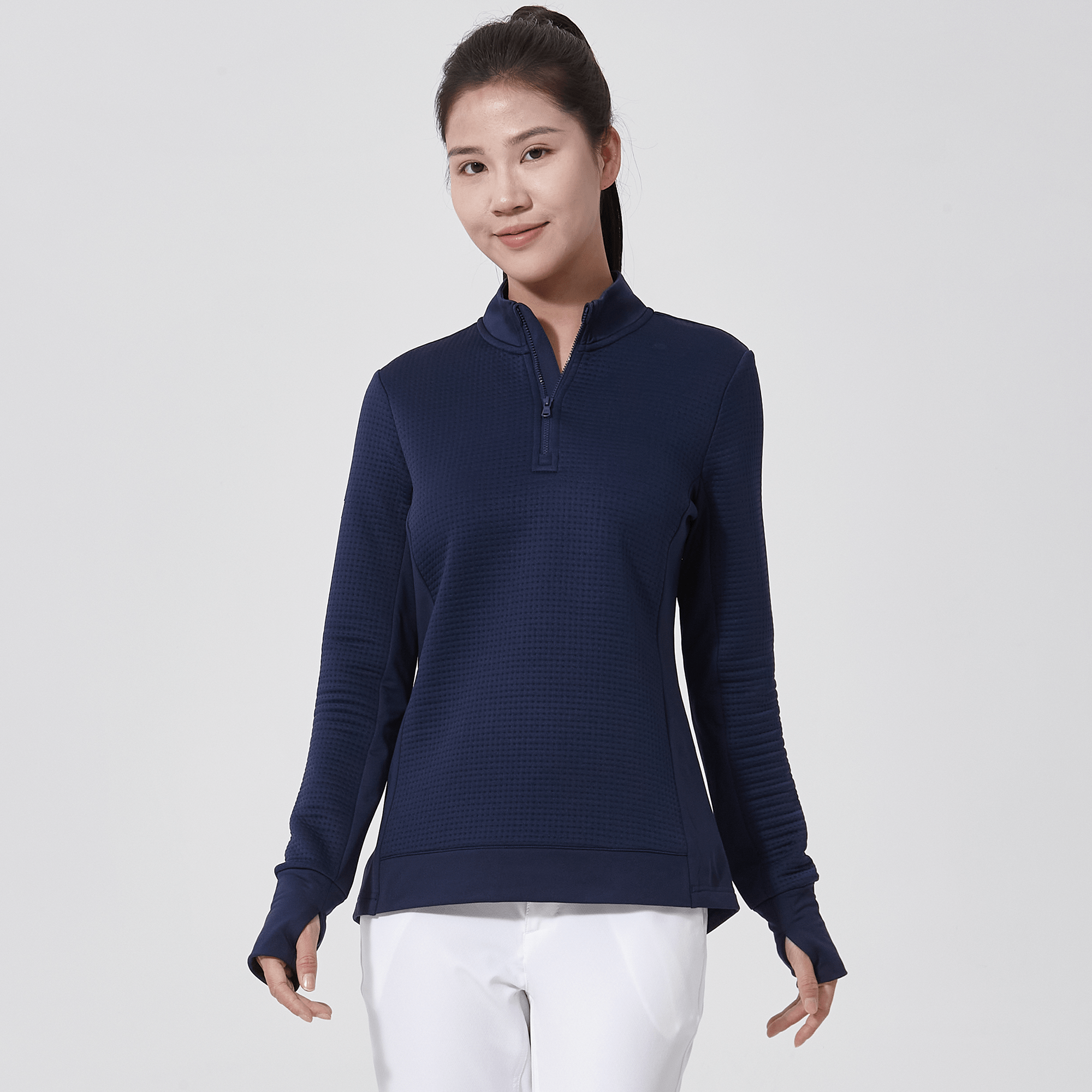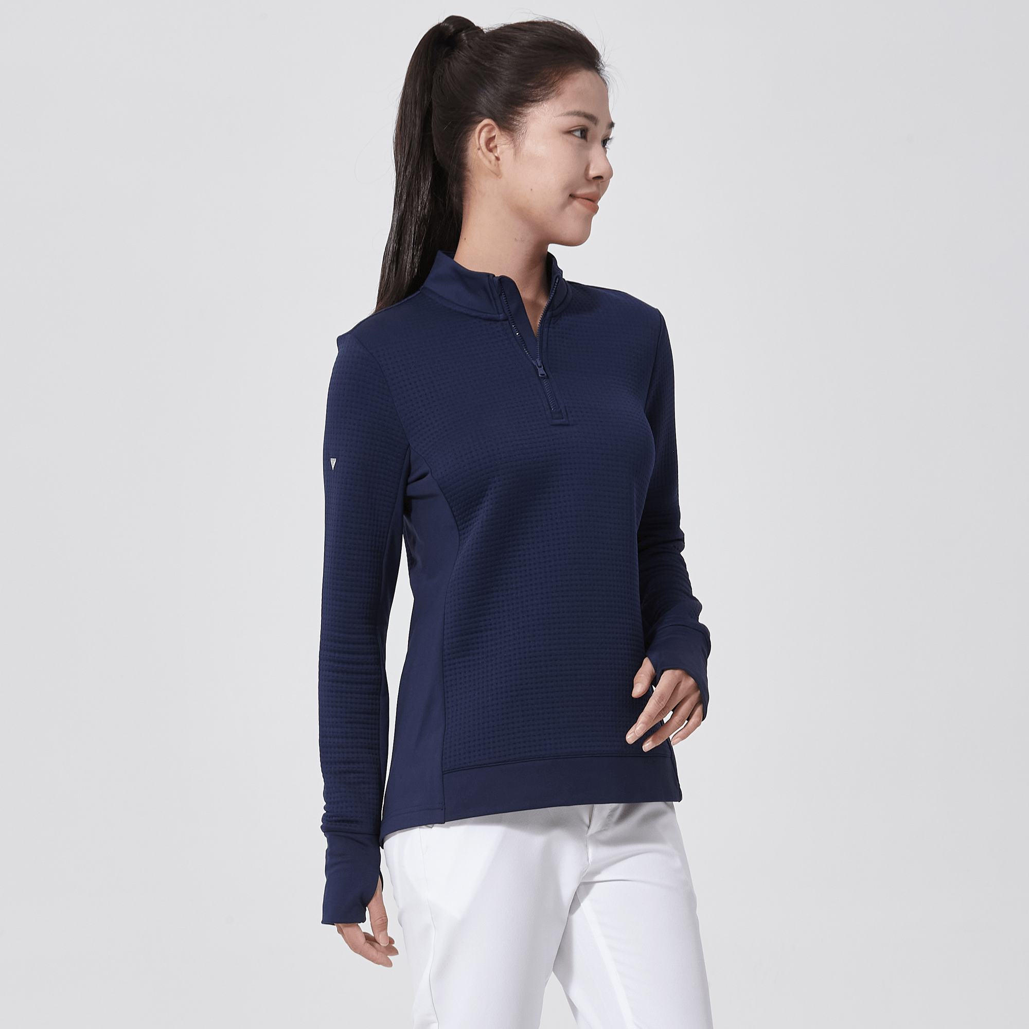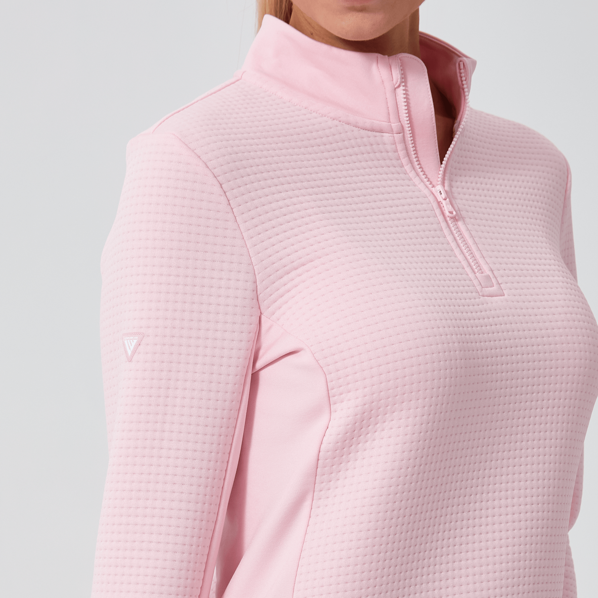 - Quarter-zip with stand-up collar