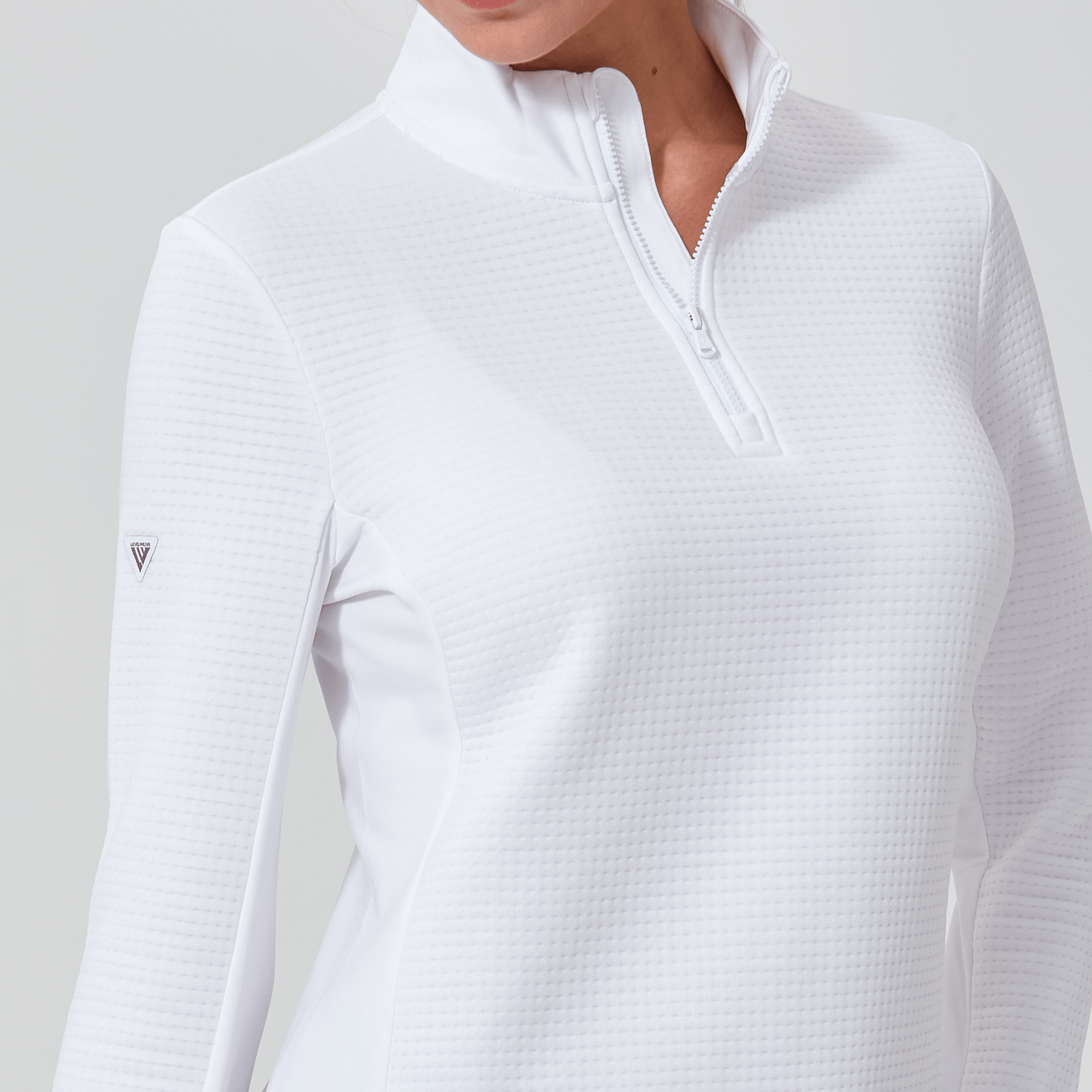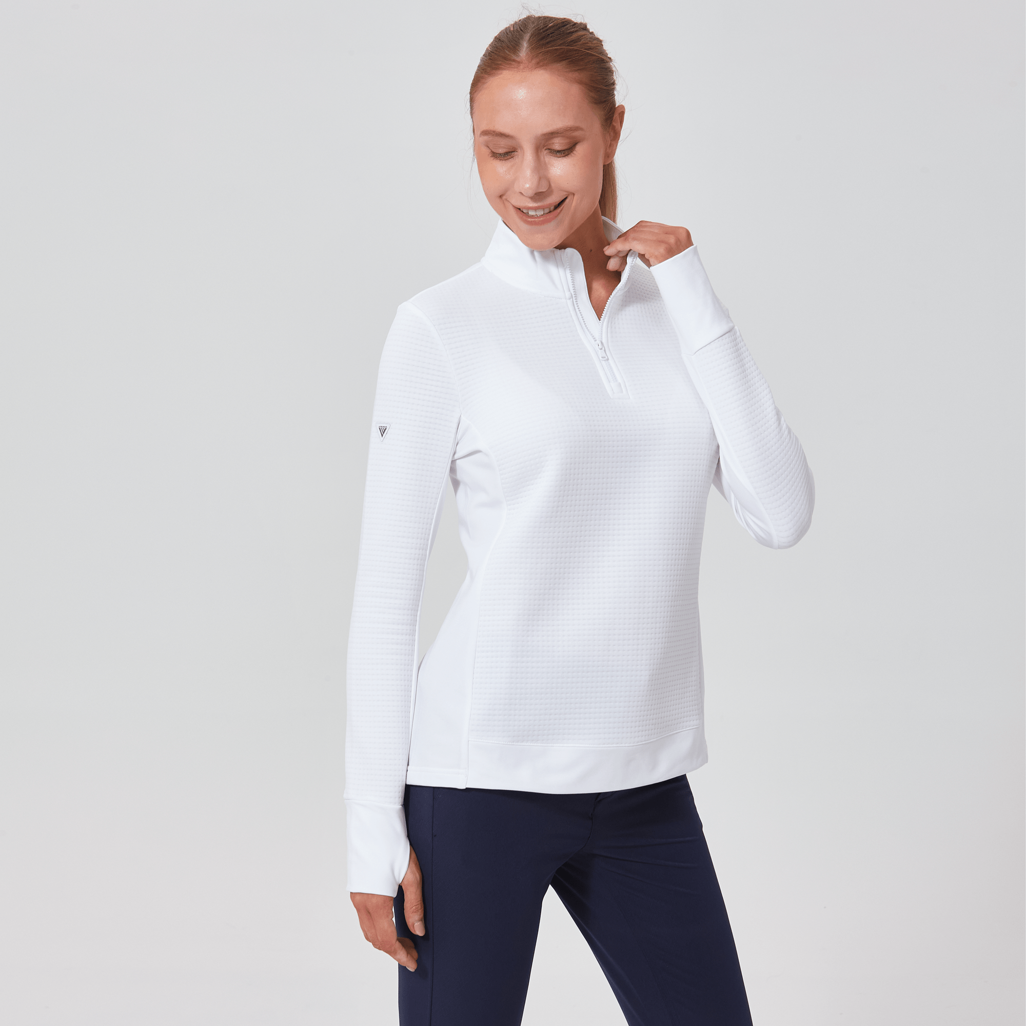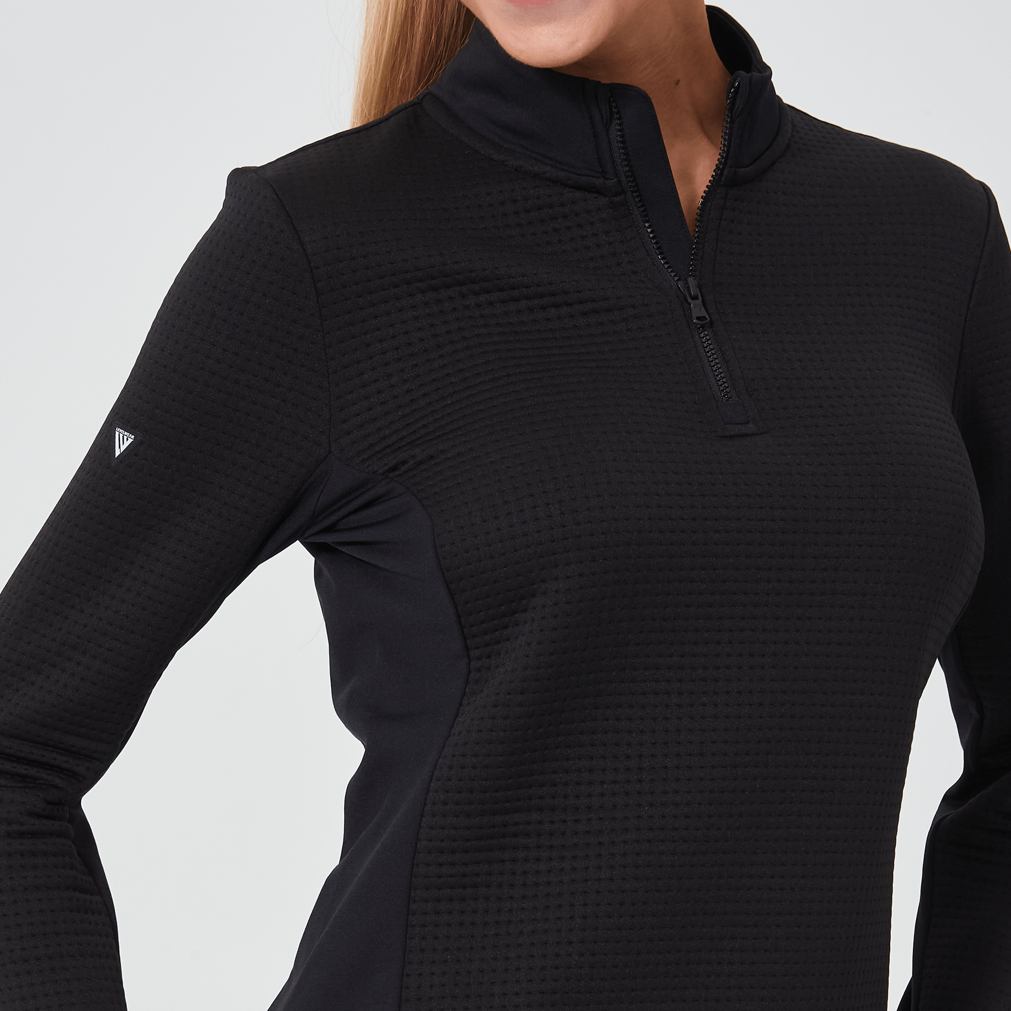 - Quarter-zip with stand-up collar