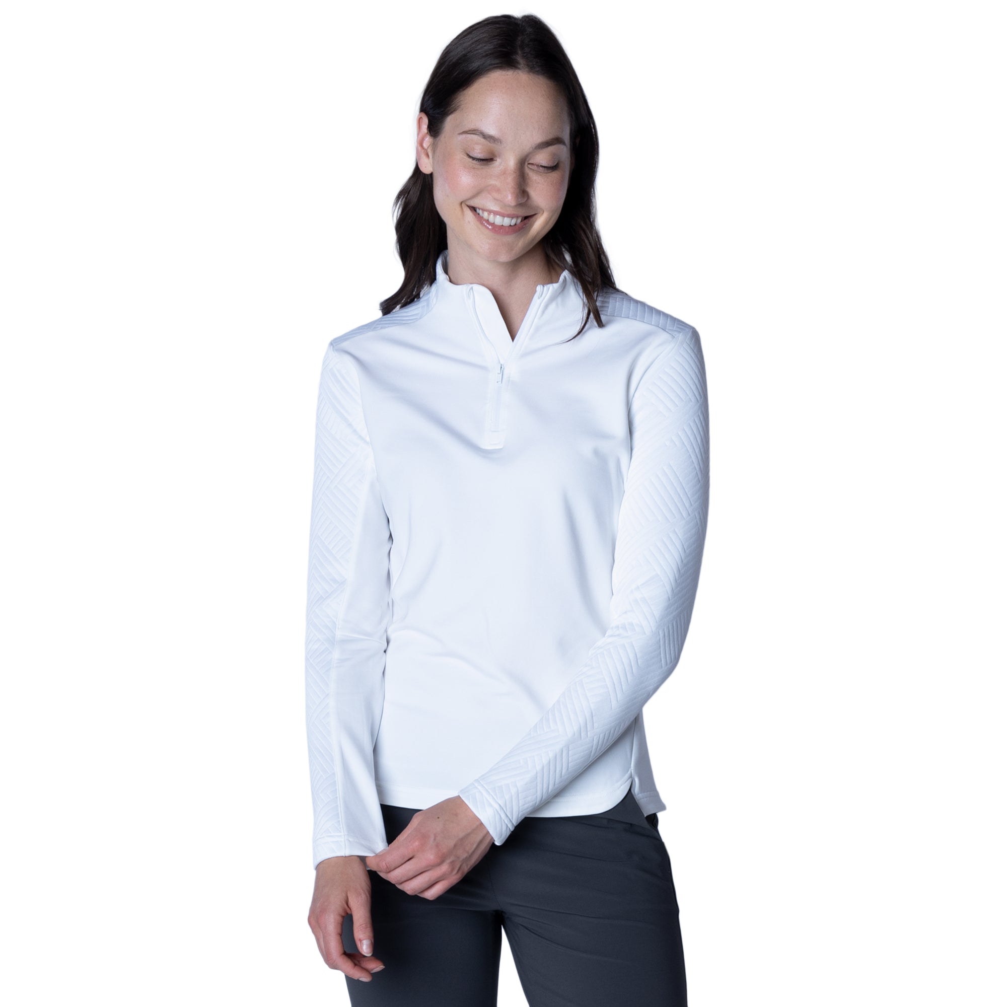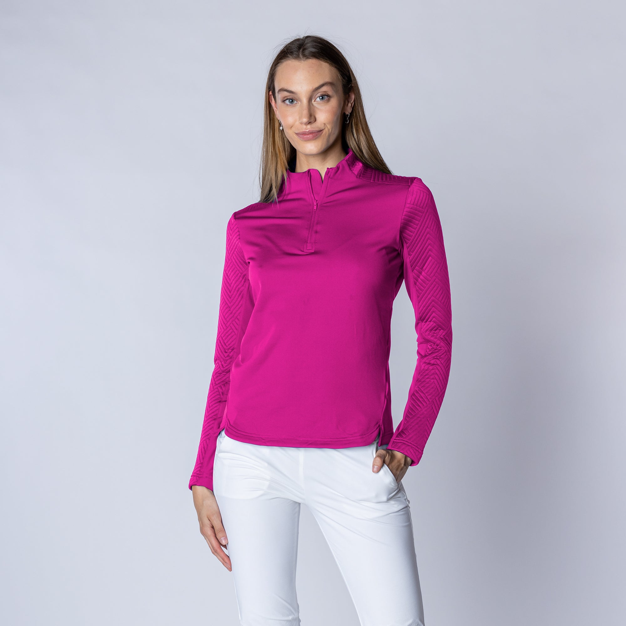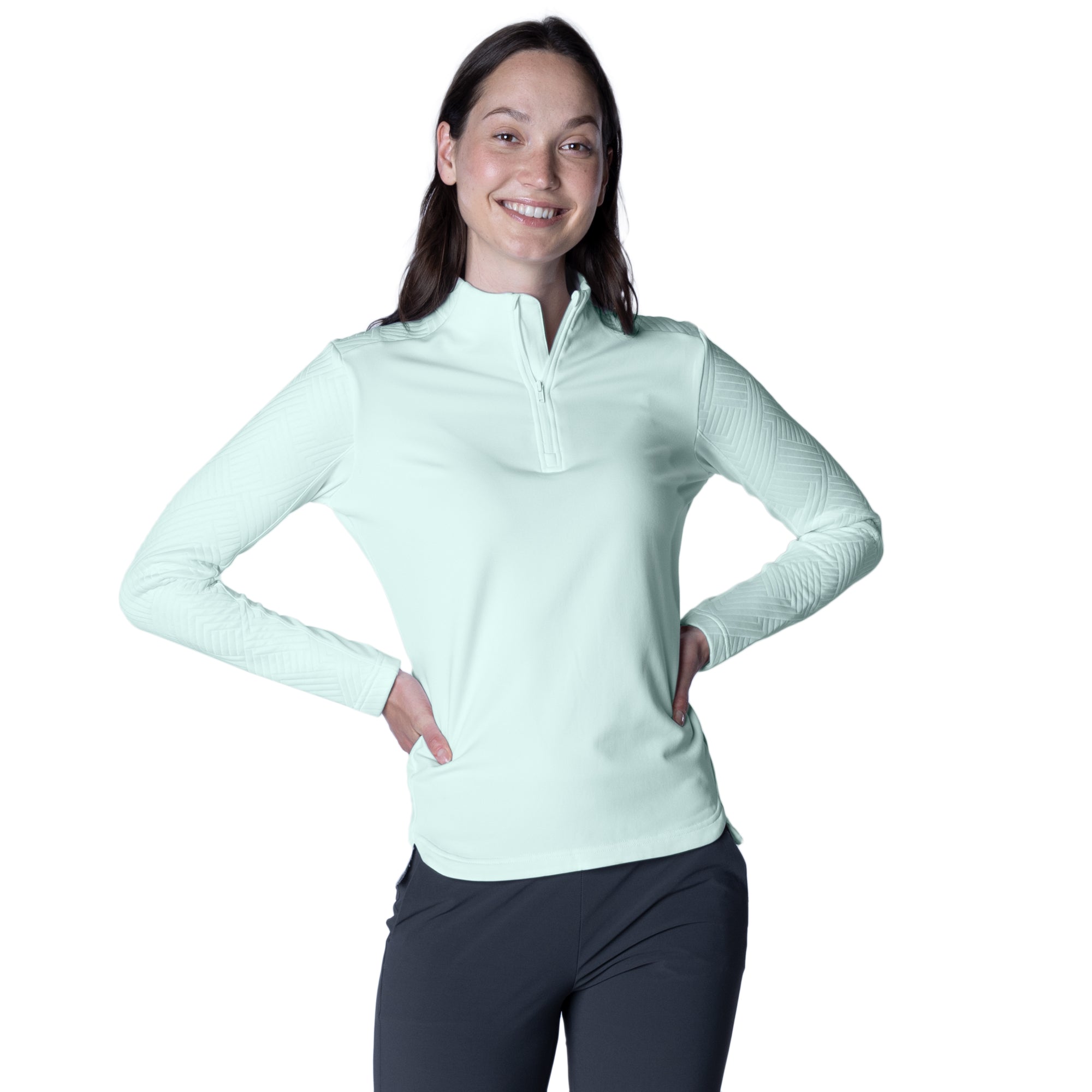 The Daybreak midlayer is crafted to support active lifestyles with its high-performance features and stylish design. Made from a blend of 91% polyester and 9% spandex, this garment offers excellent elasticity and comfort, ensuring freedom of movement through articulated sleeves and bottom slits. It features moisture-wicking technology that effectively draws sweat away from the body, keeping you dry and comfortable during intense activities. Additionally, the anti-static fabric prevents clinging, enhancing wearability throughout the day. The jacquard knit contrast fabric adds a unique texture and visual interest, making the Daybreak Midlayer not only practical for athletic pursuits but also fashionable for casual outings. Whether you're hitting the gym or enjoying a chilly morning run, this midlayer is a perfect choice for maintaining comfort while staying active.