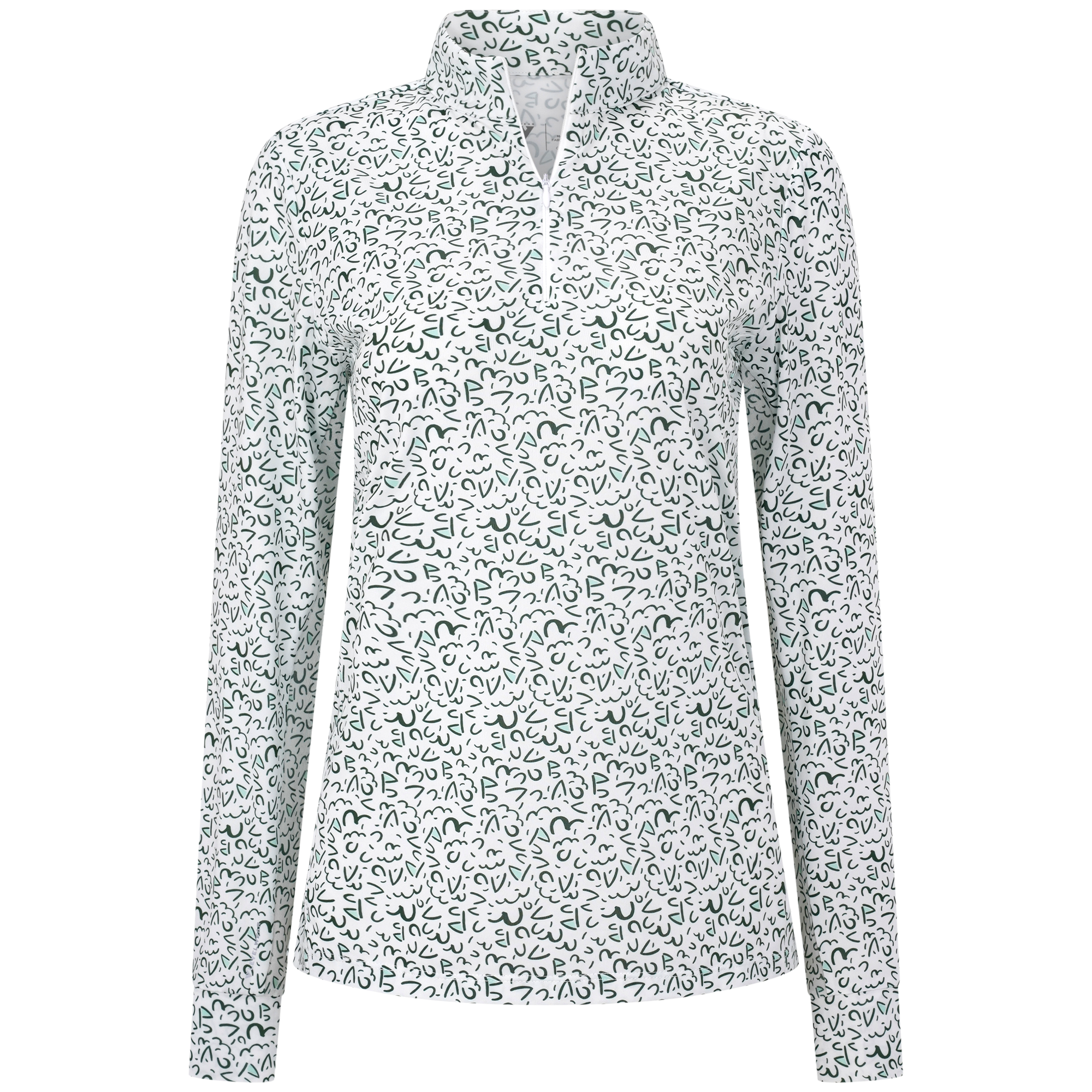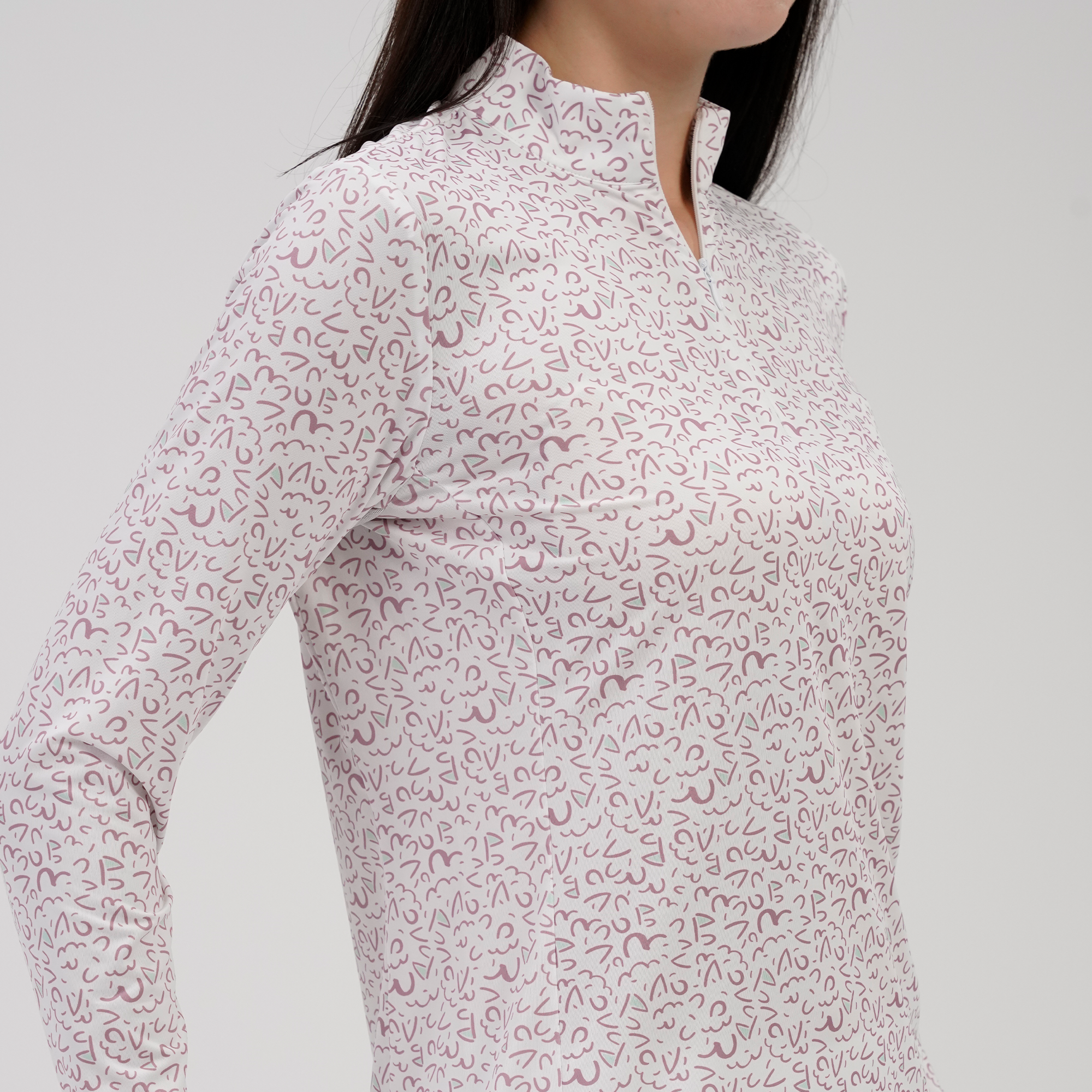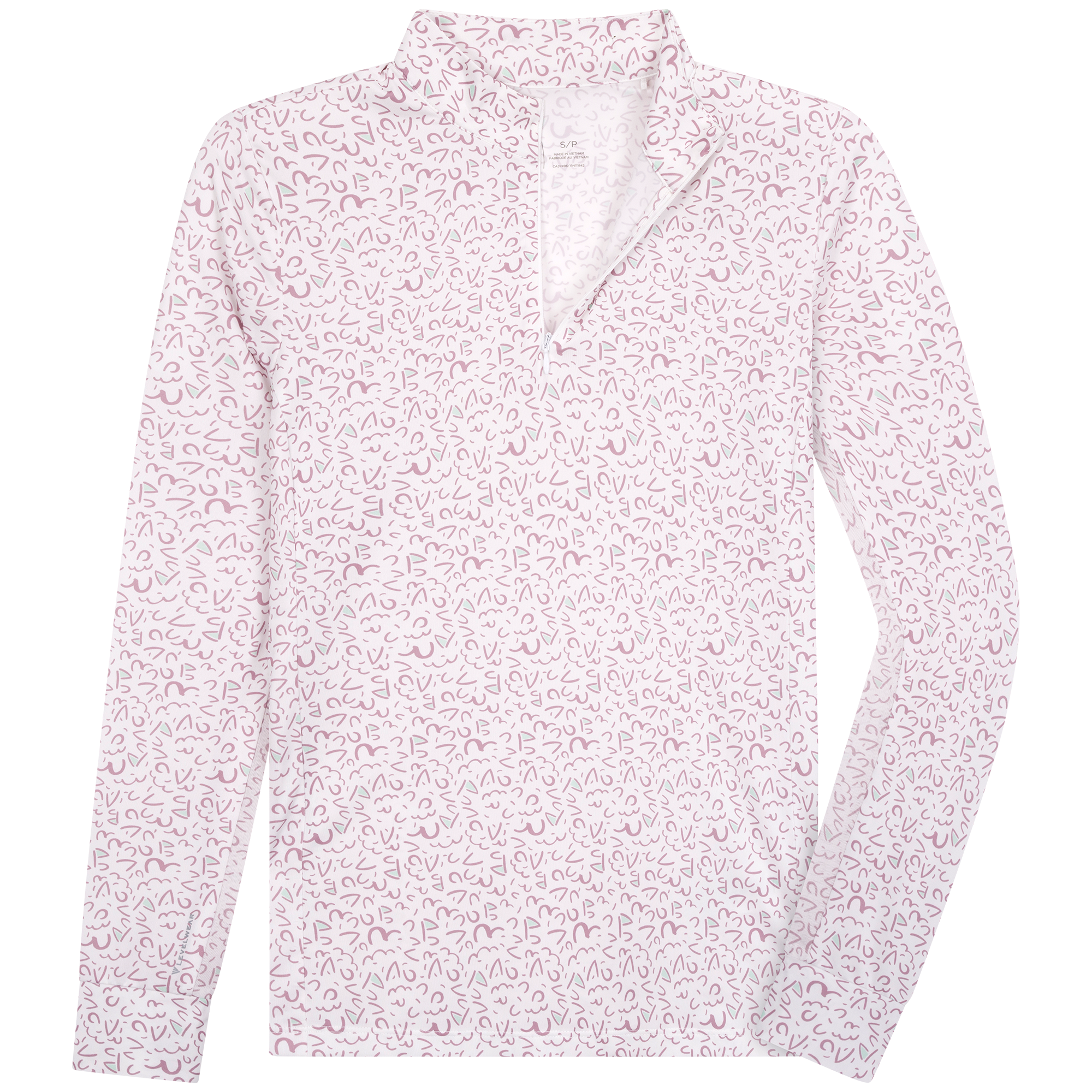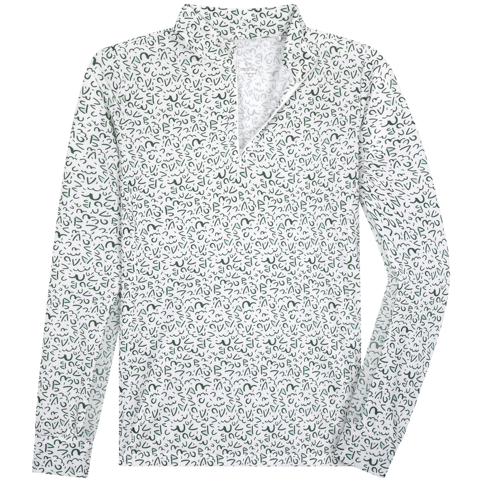 The Felix sun long sleeve offers moisture-wicking performance and UPF 50+ protection for sunny days on the course. Designed with a quarter-zip and invisible zipper, stand-up collar, mesh underarm panels for breathability, and a high-low hem for added coverage. Finished with a bold all-over print. Made from 88% polyester and 12% spandex.