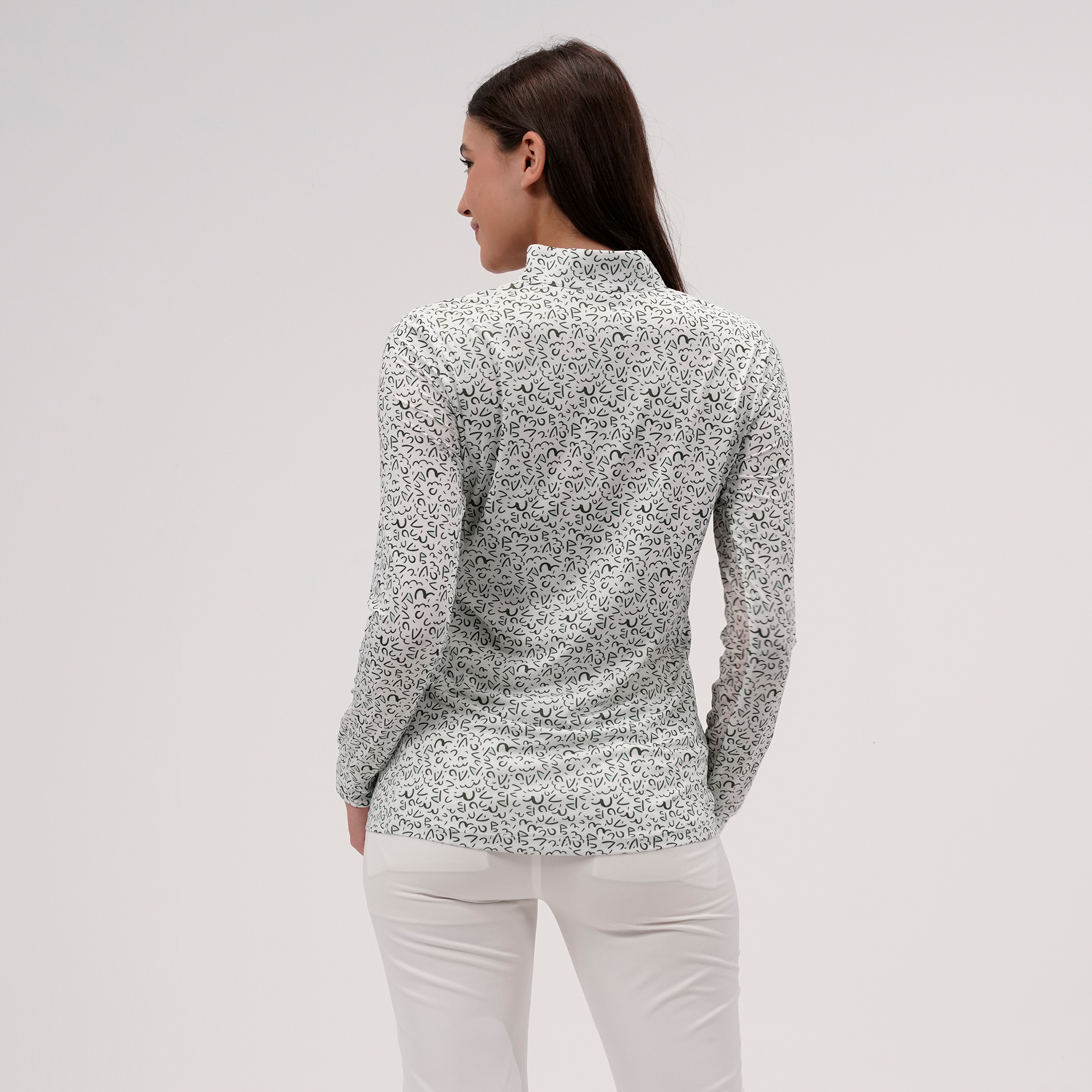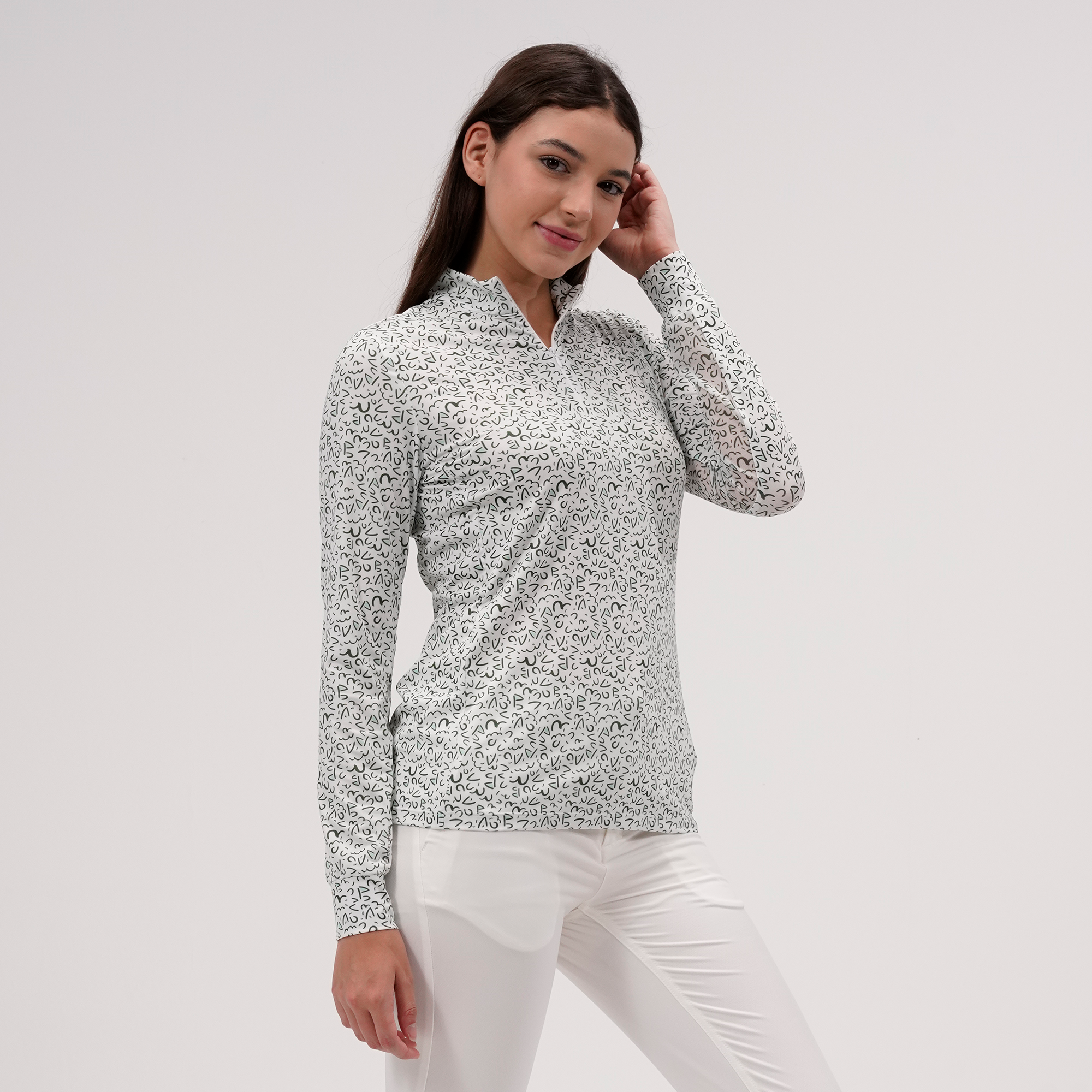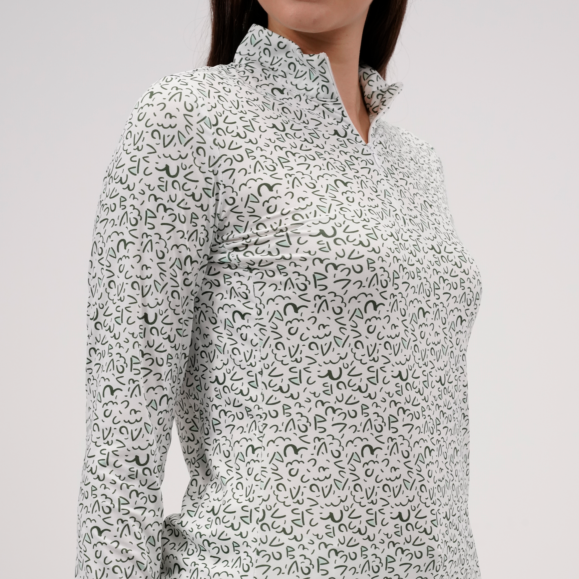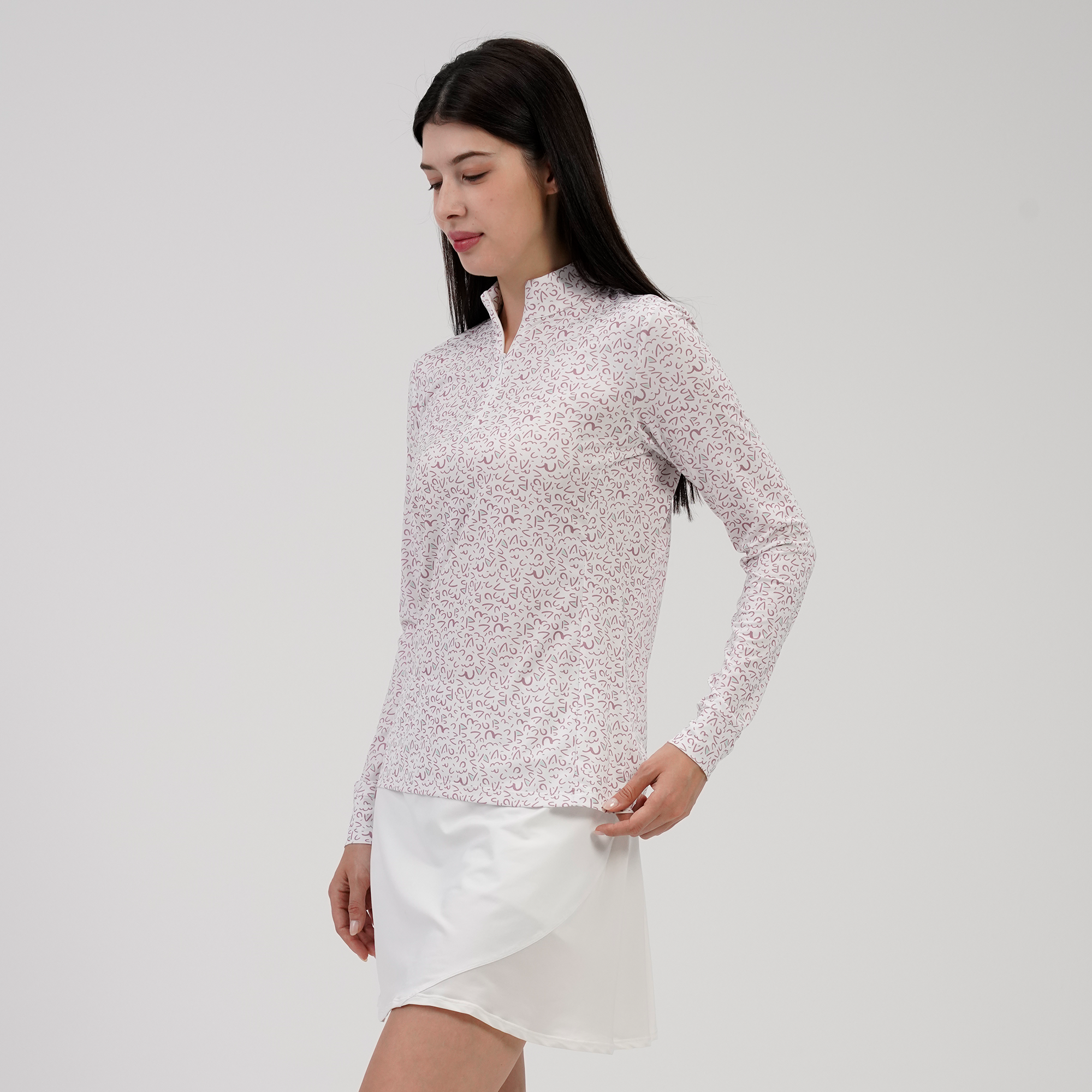 The Felix sun long sleeve offers moisture-wicking performance and UPF 50+ protection for sunny days on the course. Designed with a quarter-zip and invisible zipper, stand-up collar, mesh underarm panels for breathability, and a high-low hem for added coverage. Finished with a bold all-over print. Made from 88% polyester and 12% spandex.