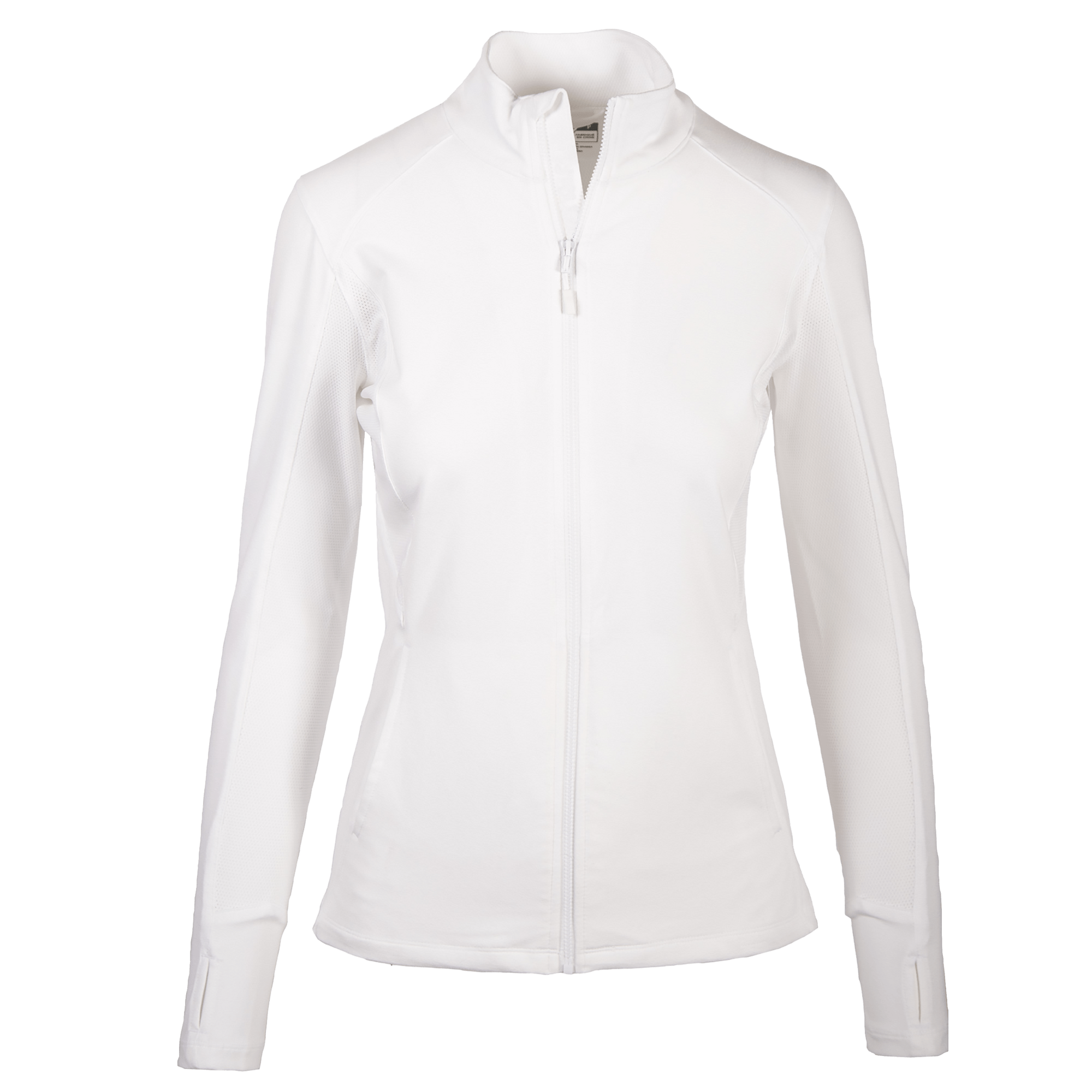 Meet the Alyssa midlayer, a versatile full-zip jacket designed for both golf enthusiasts and leisure activities. Made from a blend of 88% polyester and 12% spandex, this knit fabric jacket ensures wearability and flexibility. Key features include inner arm ventilation to keep you cool, front pockets for convenience, and a mock neck for added warmth. The raglan sleeves facilitate a better range of motion, ideal for perfecting your golf swing or enjoying a day out. Additionally, thumb holes keep the sleeves in place and hands warm, while the drop tail provides extra coverage. Whether you're hitting the links or taking it easy, the Alyssa midlayer will be your new go-to.