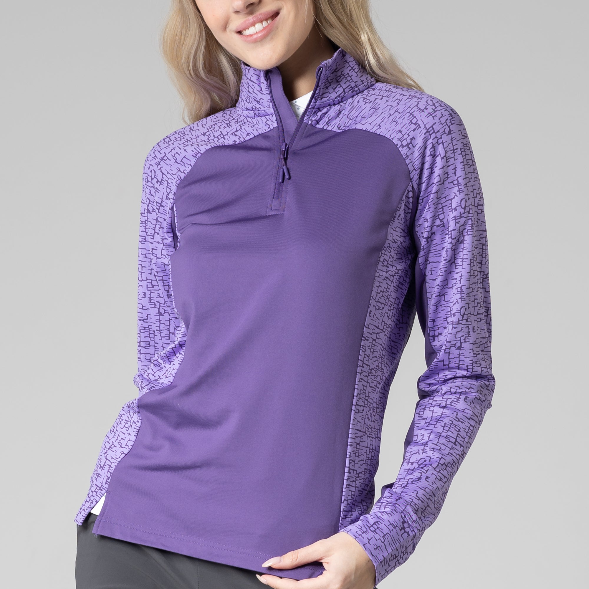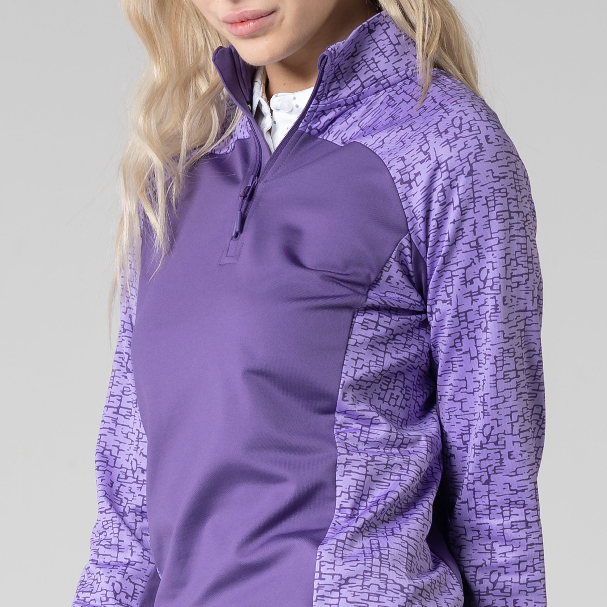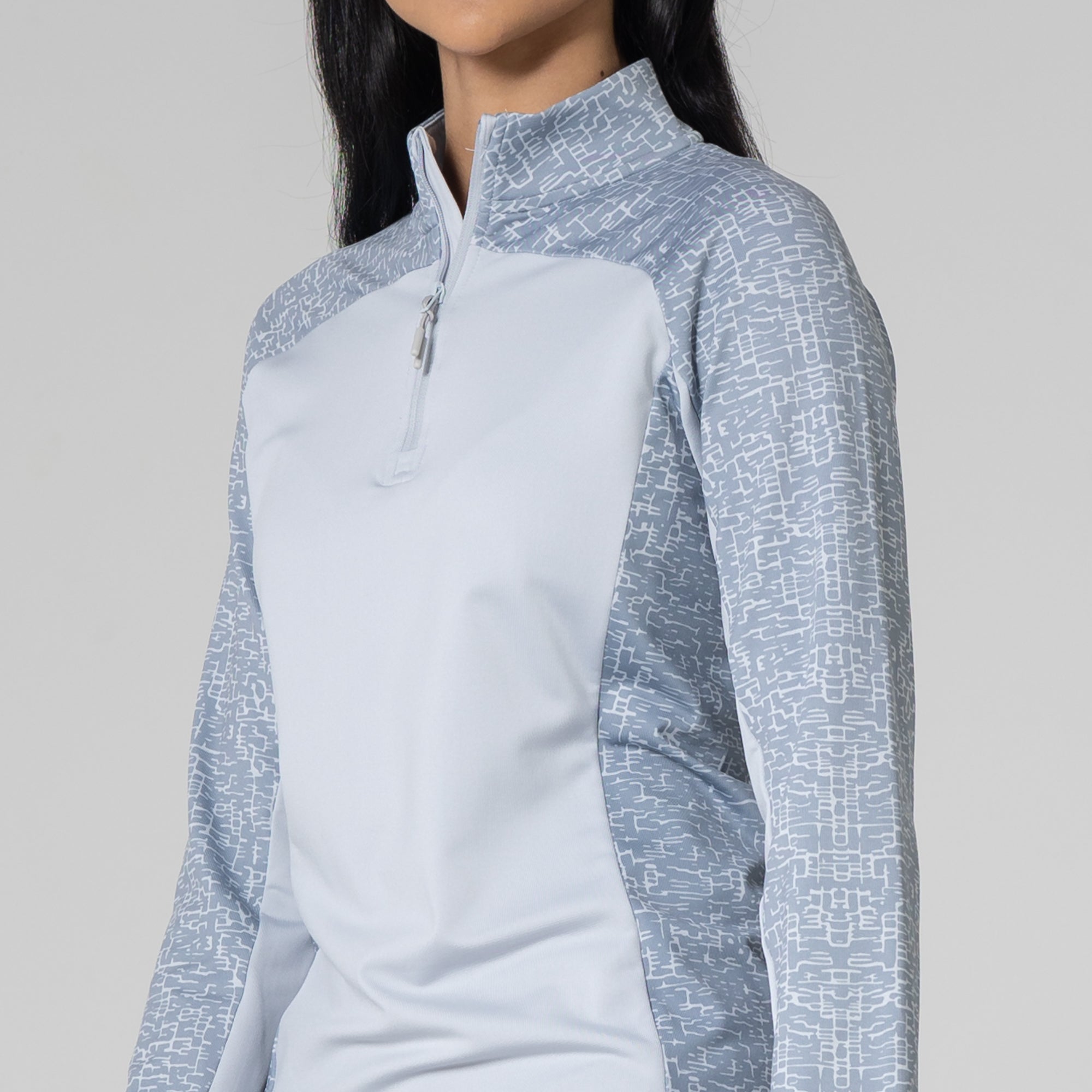 Layer up in the Siren midlayer and play on in cooler temperatures. This midlayer features a unique embossed print on the upper chest and arms, a zip-up mockneck, and a lightweight fabric blend that lends day-round stretch.