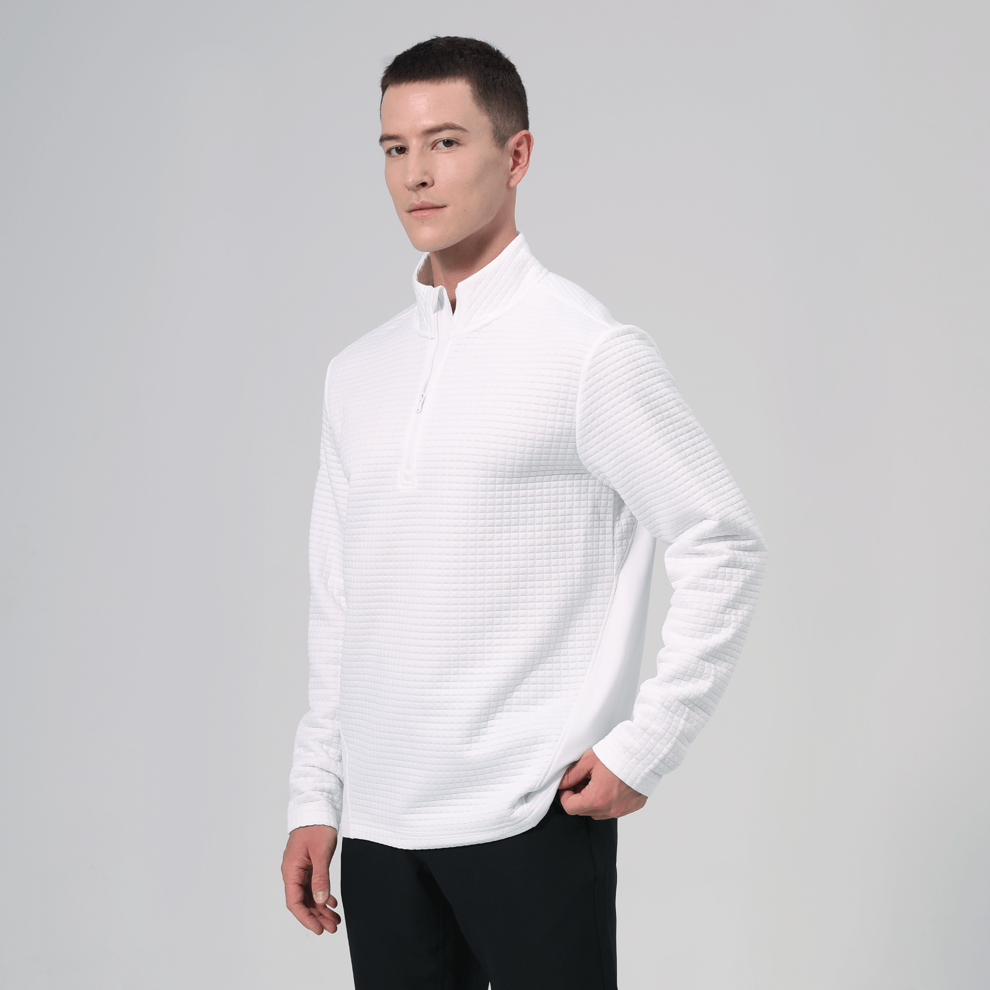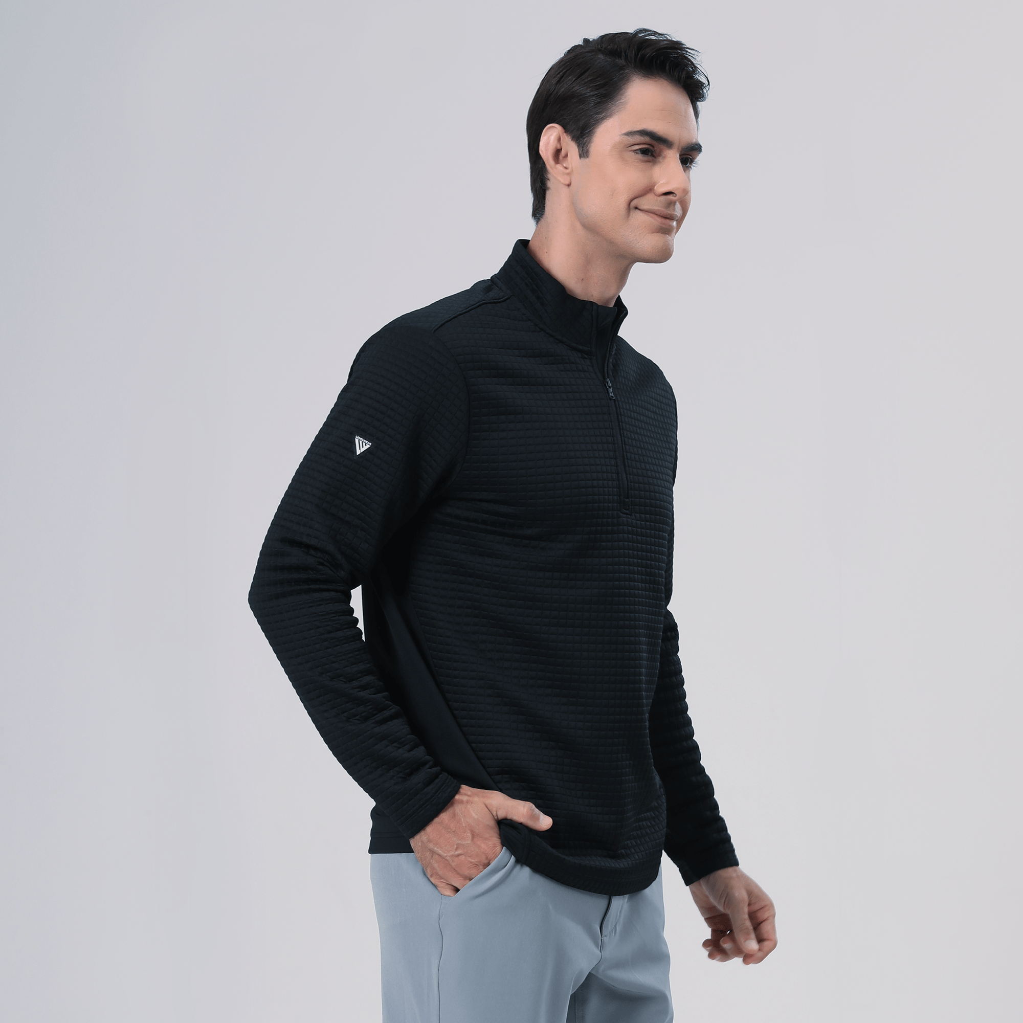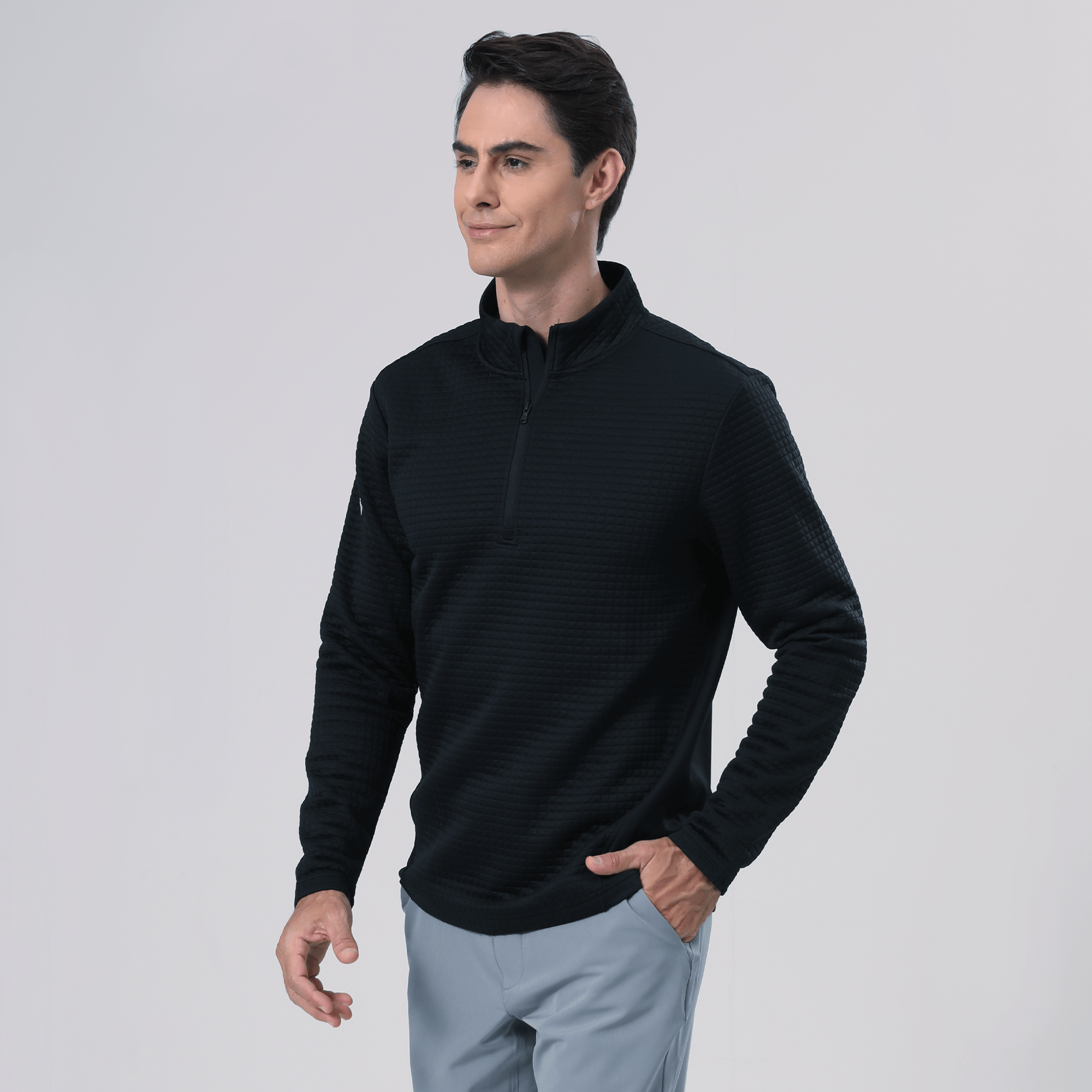 - QUARTER-ZIP WITH STAND-UP COLLAR