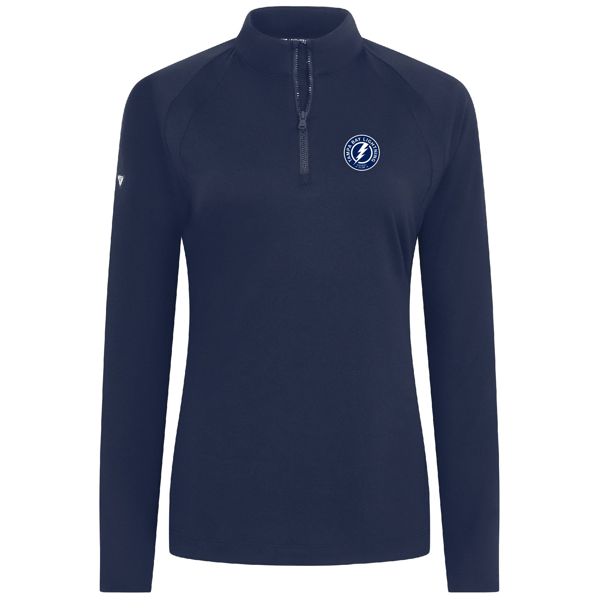 - Quarter-zip with contrast stand-up collar