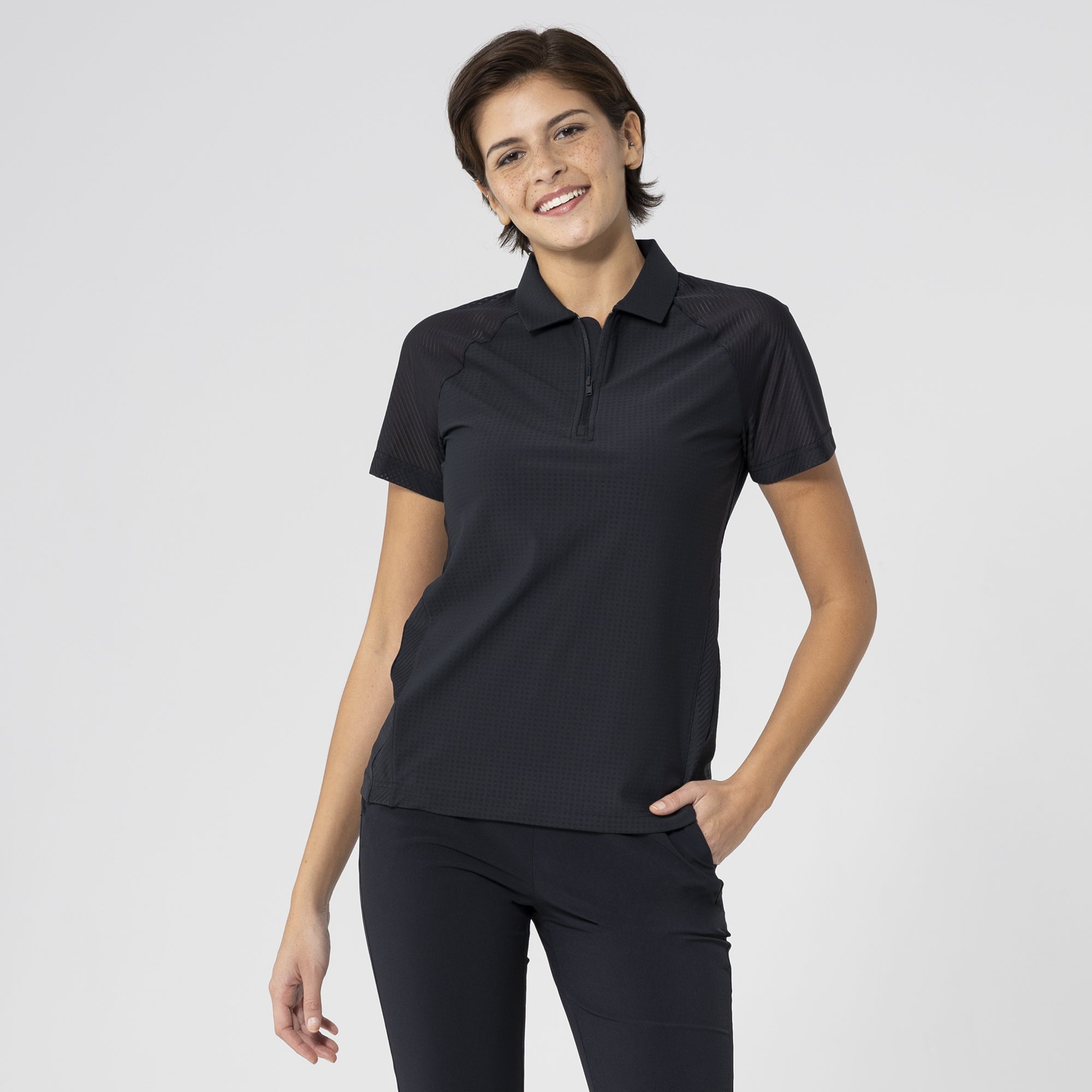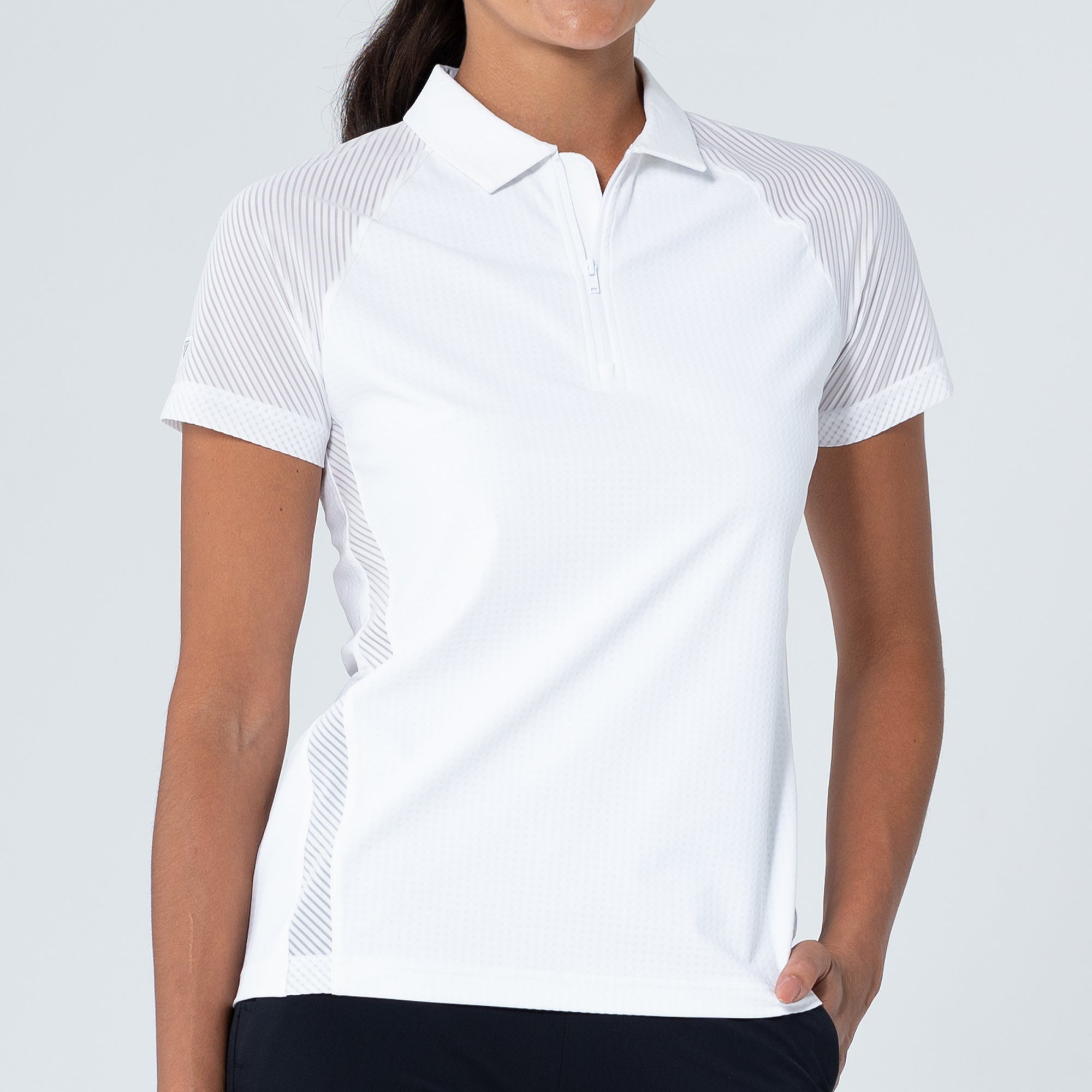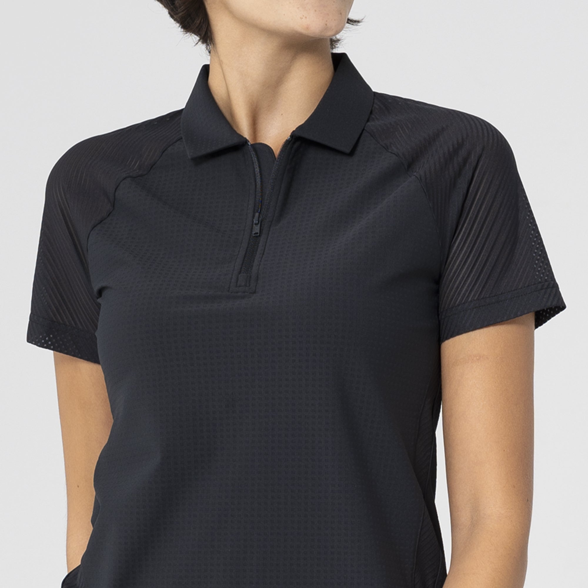 The Tandem Polo is a dynamic addition to any active wardrobe, engineered to deliver performance and a sleek look. This polo is crafted from a body fabric of 63% polyester and 37% elastane, providing an excellent stretch for unrestricted movement, while the contrast details are made from 87% polyester and 13% spandex, enhancing the design with subtle textural differences. The contrast mesh sleeves and trim details not only add a modern aesthetic but also improve breathability, keeping you cool under pressure. A forwarded side seam and raglan shoulder panel offer a contemporary fit and enhanced range of motion, making this polo perfect for golf or any sporting activity. Whether you're competing on the course or practicing at the range, the Tandem Polo is built to keep up with your active lifestyle.