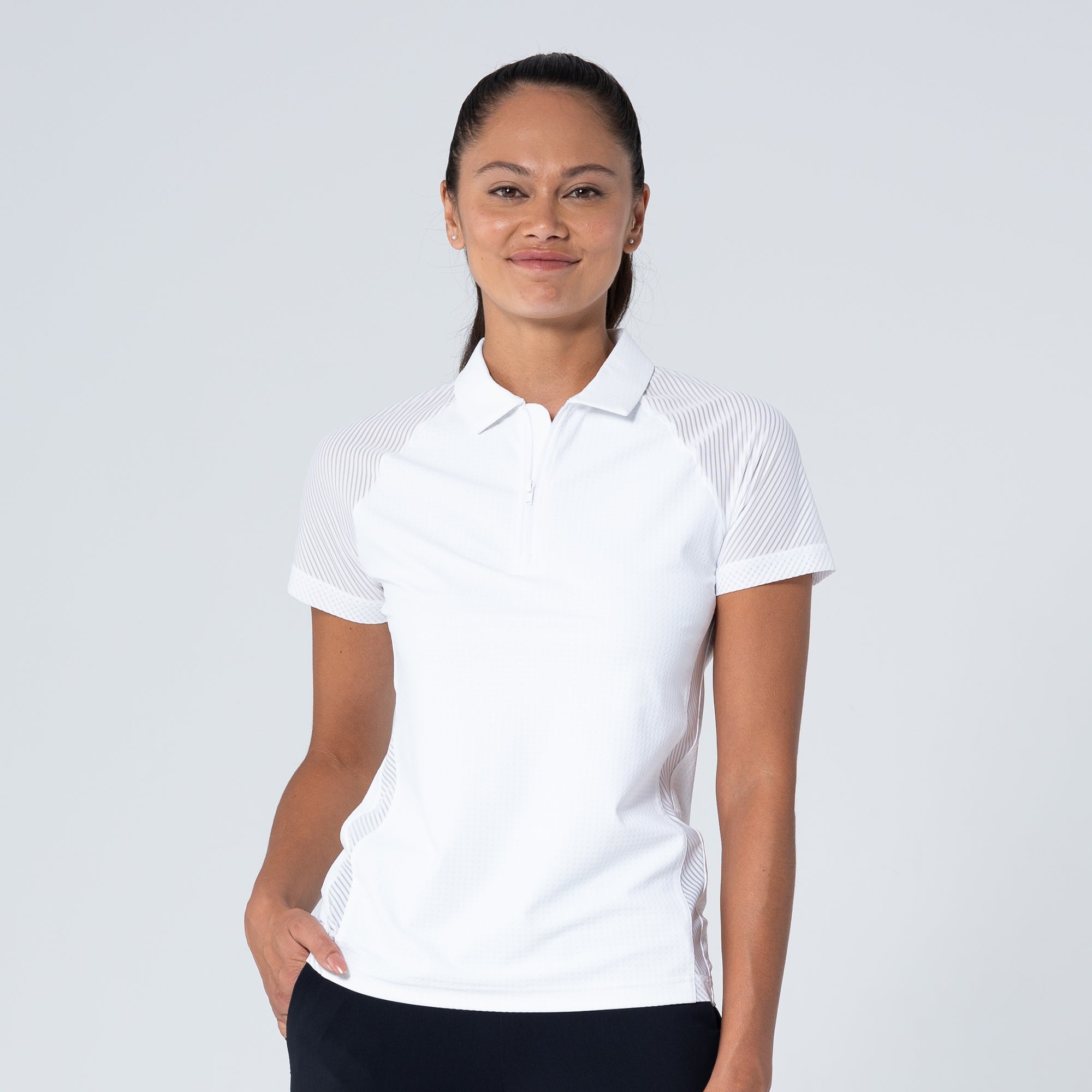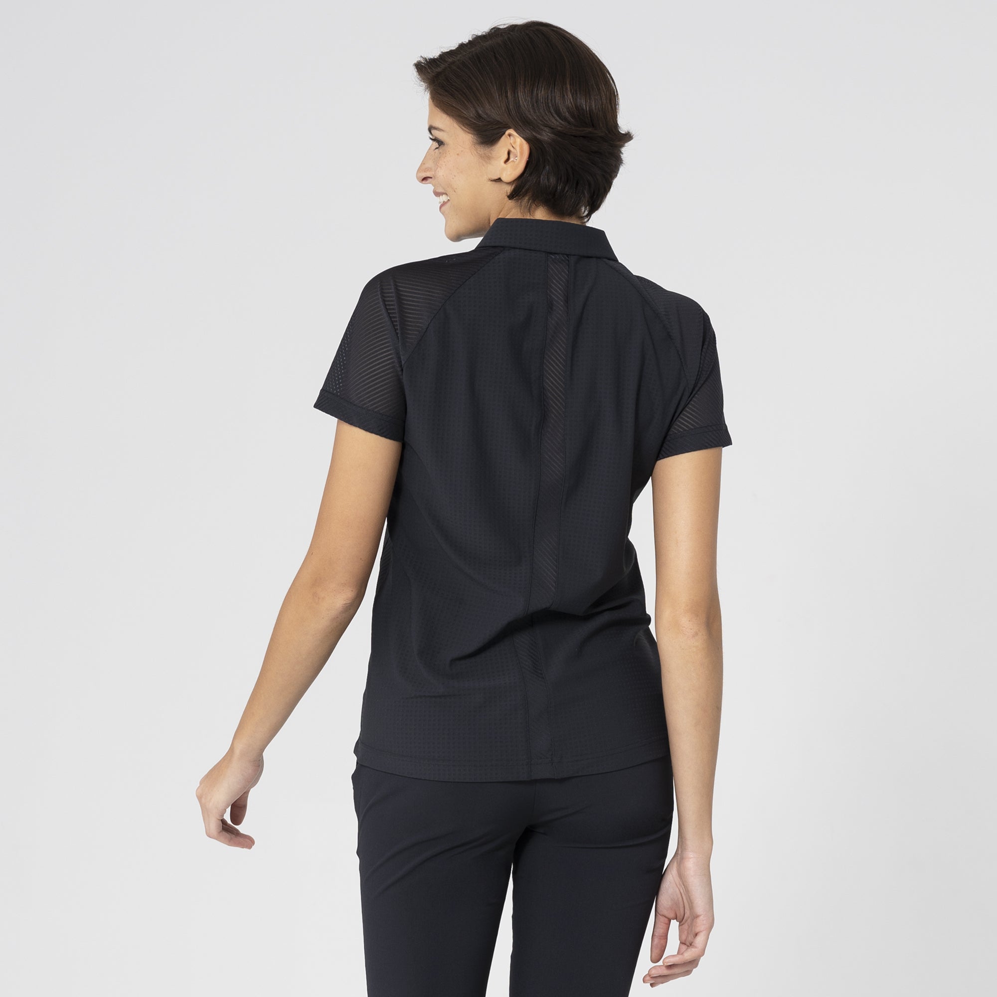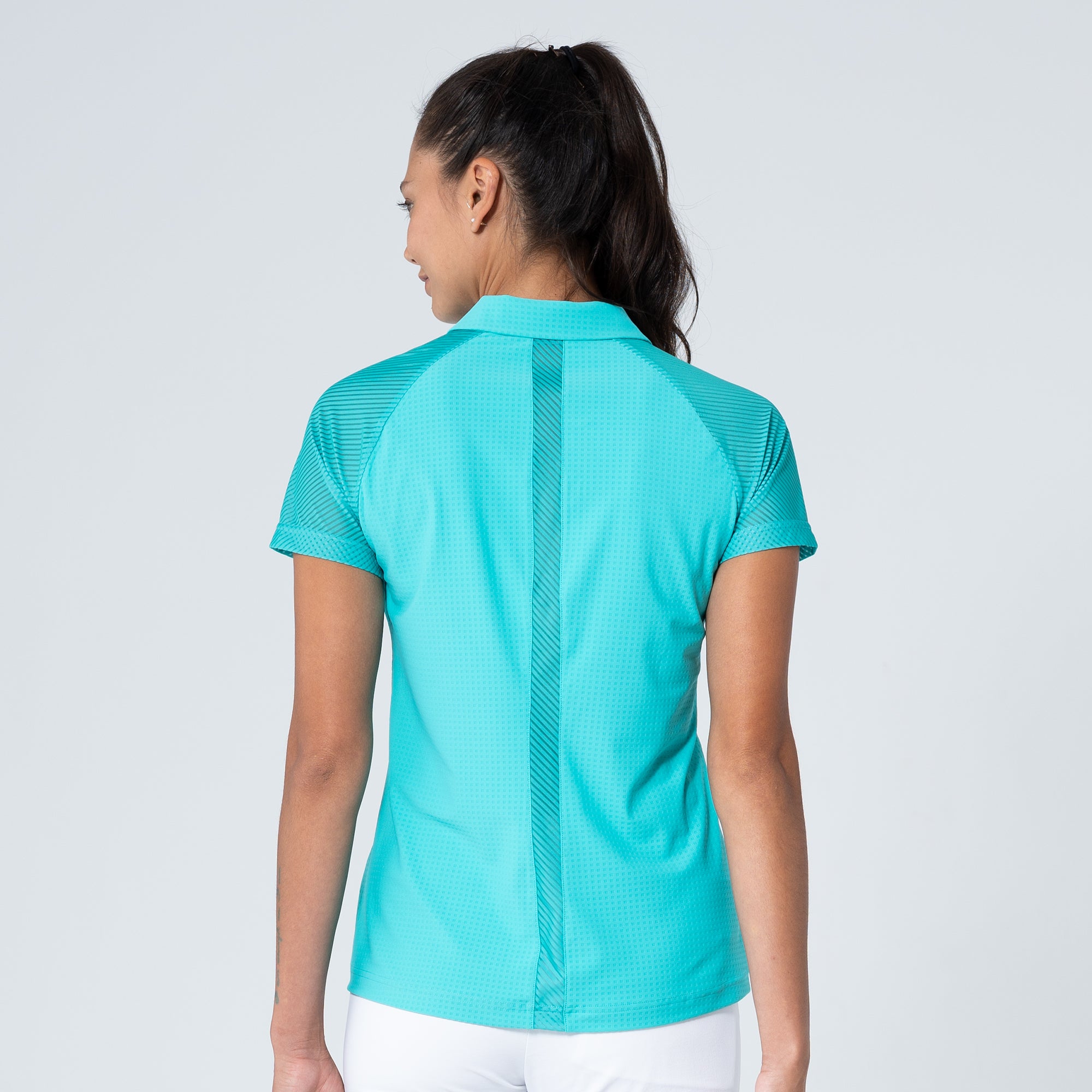 The Tandem Polo is a dynamic addition to any active wardrobe, engineered to deliver performance and a sleek look. This polo is crafted from a body fabric of 63% polyester and 37% elastane, providing an excellent stretch for unrestricted movement, while the contrast details are made from 87% polyester and 13% spandex, enhancing the design with subtle textural differences. The contrast mesh sleeves and trim details not only add a modern aesthetic but also improve breathability, keeping you cool under pressure. A forwarded side seam and raglan shoulder panel offer a contemporary fit and enhanced range of motion, making this polo perfect for golf or any sporting activity. Whether you're competing on the course or practicing at the range, the Tandem Polo is built to keep up with your active lifestyle.