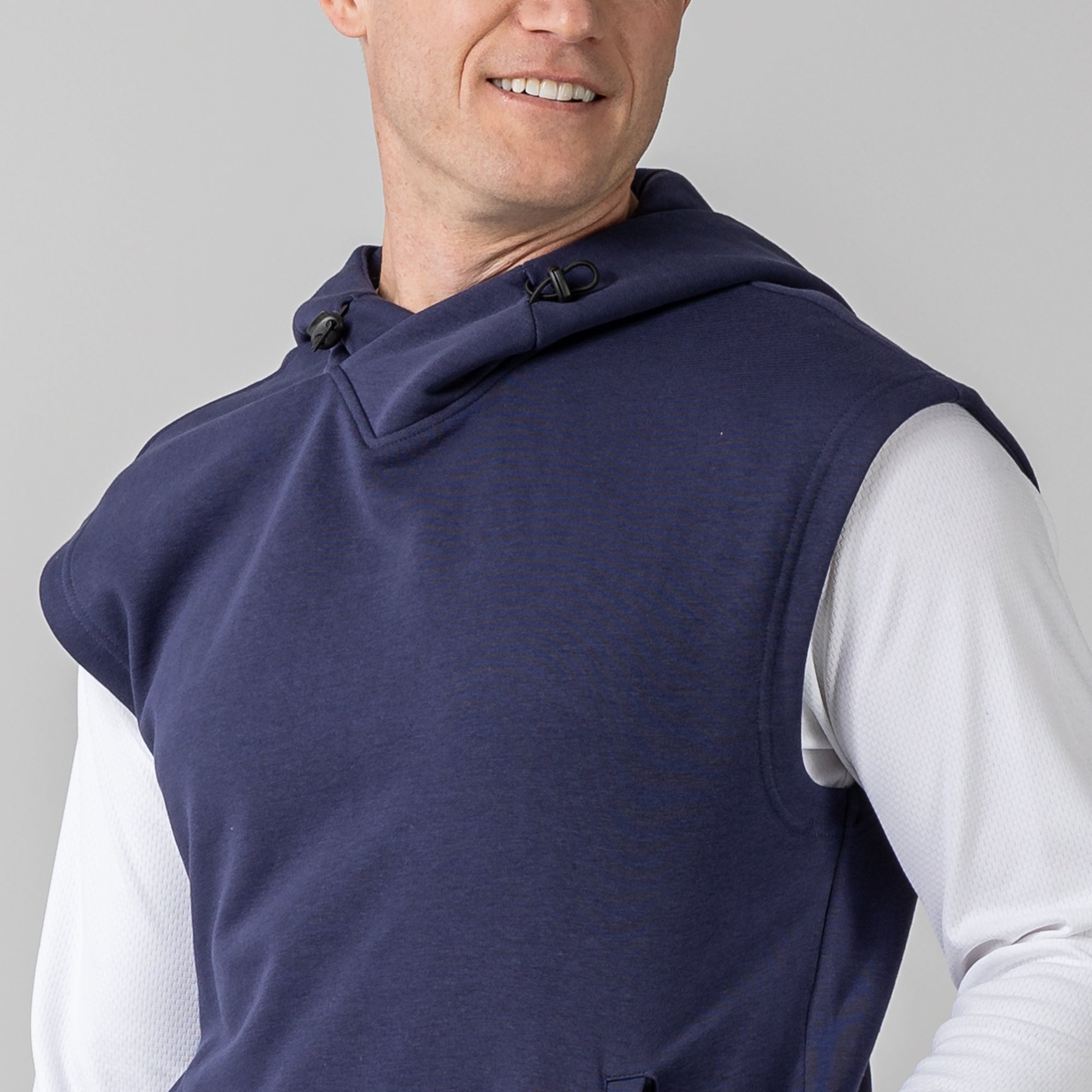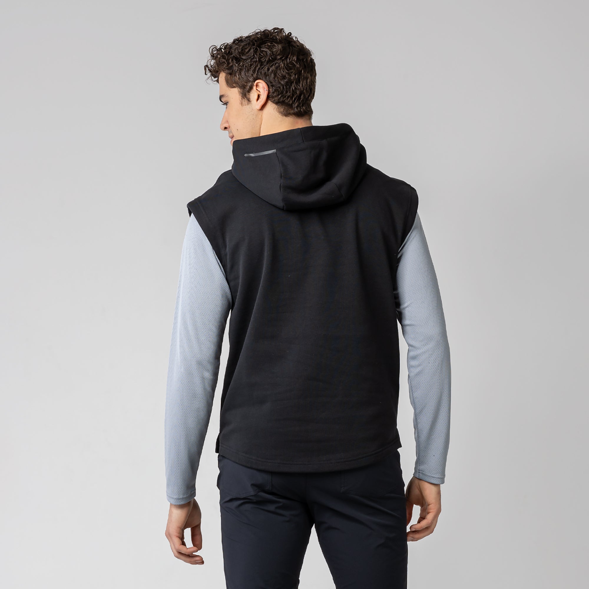 - Adjustable hood with V-shape neckline