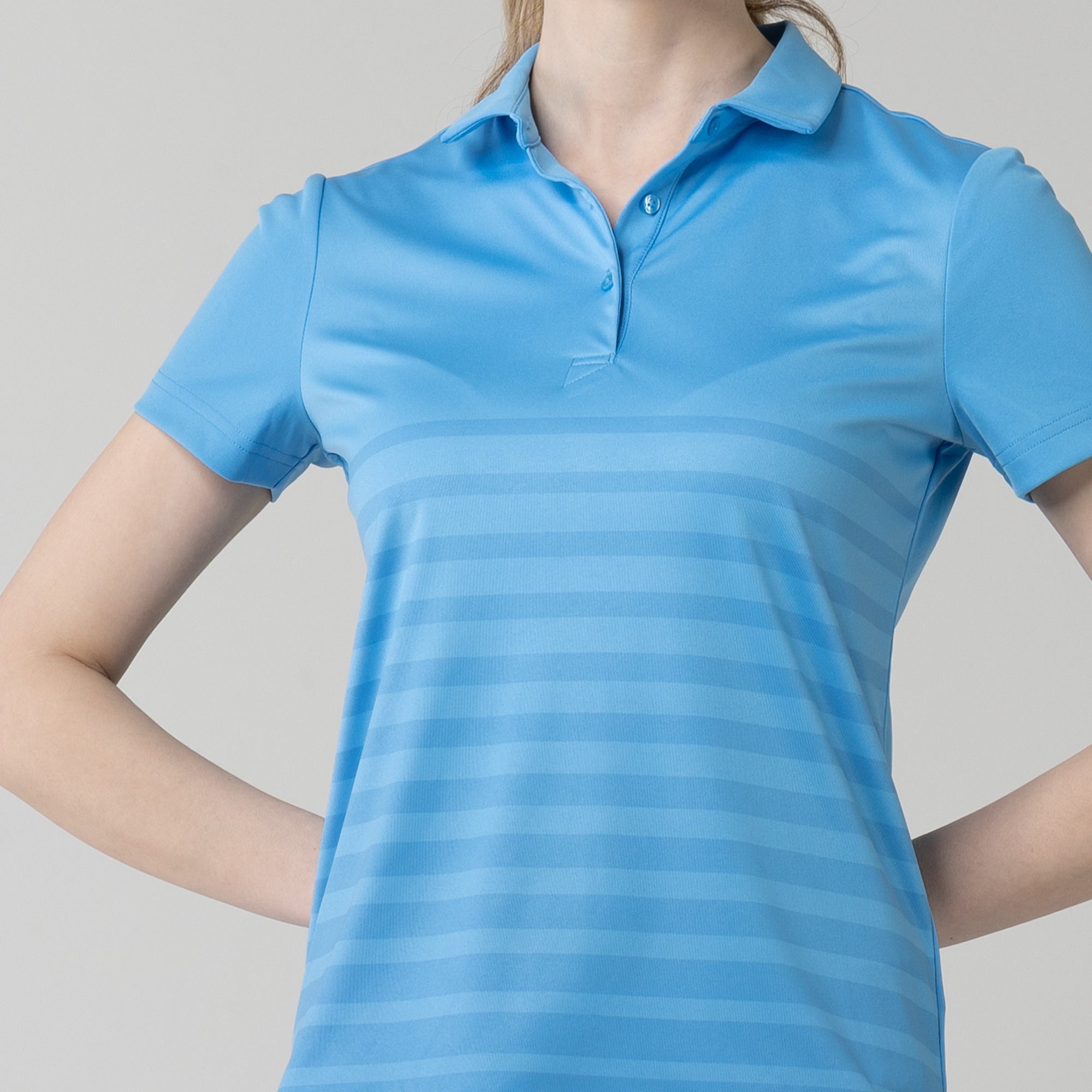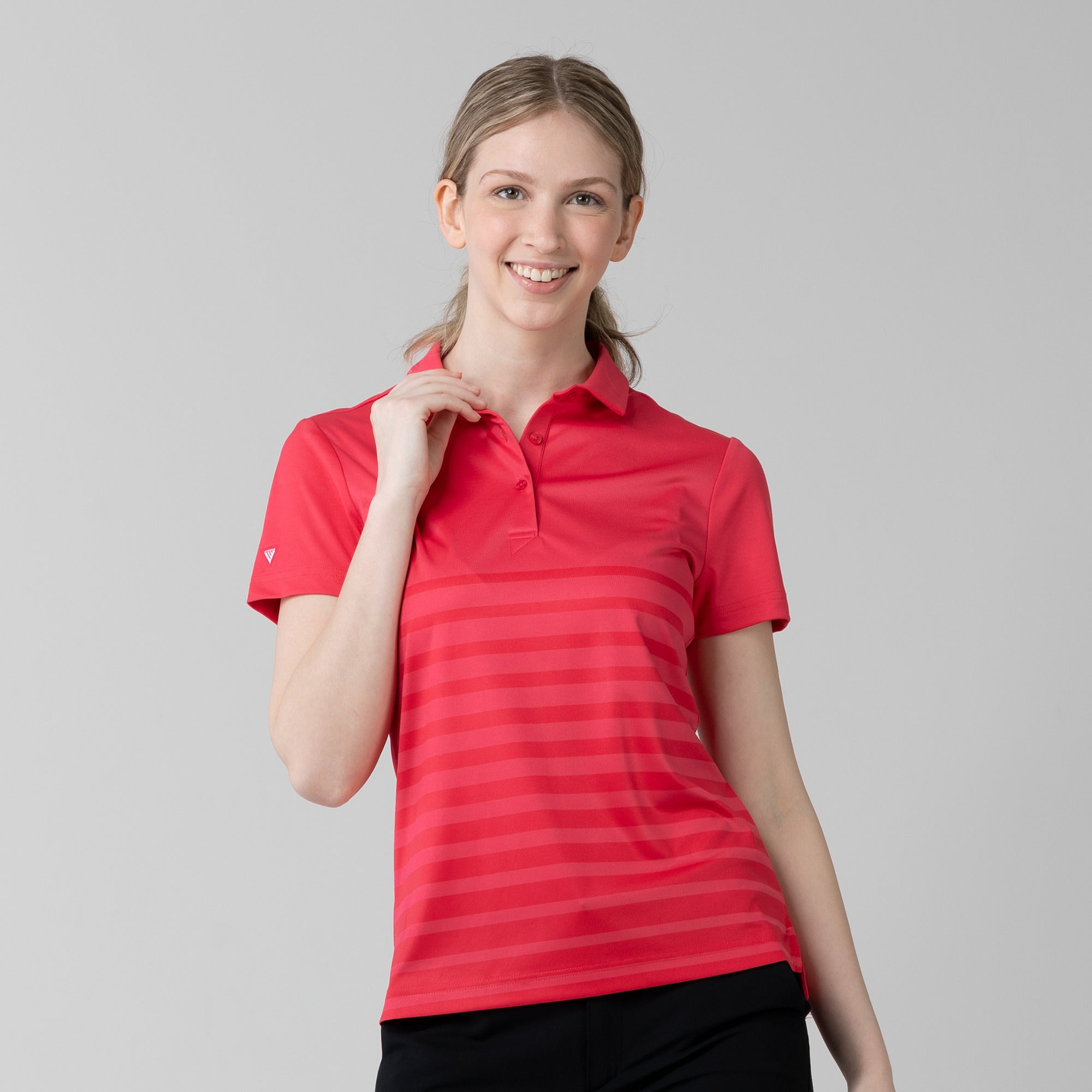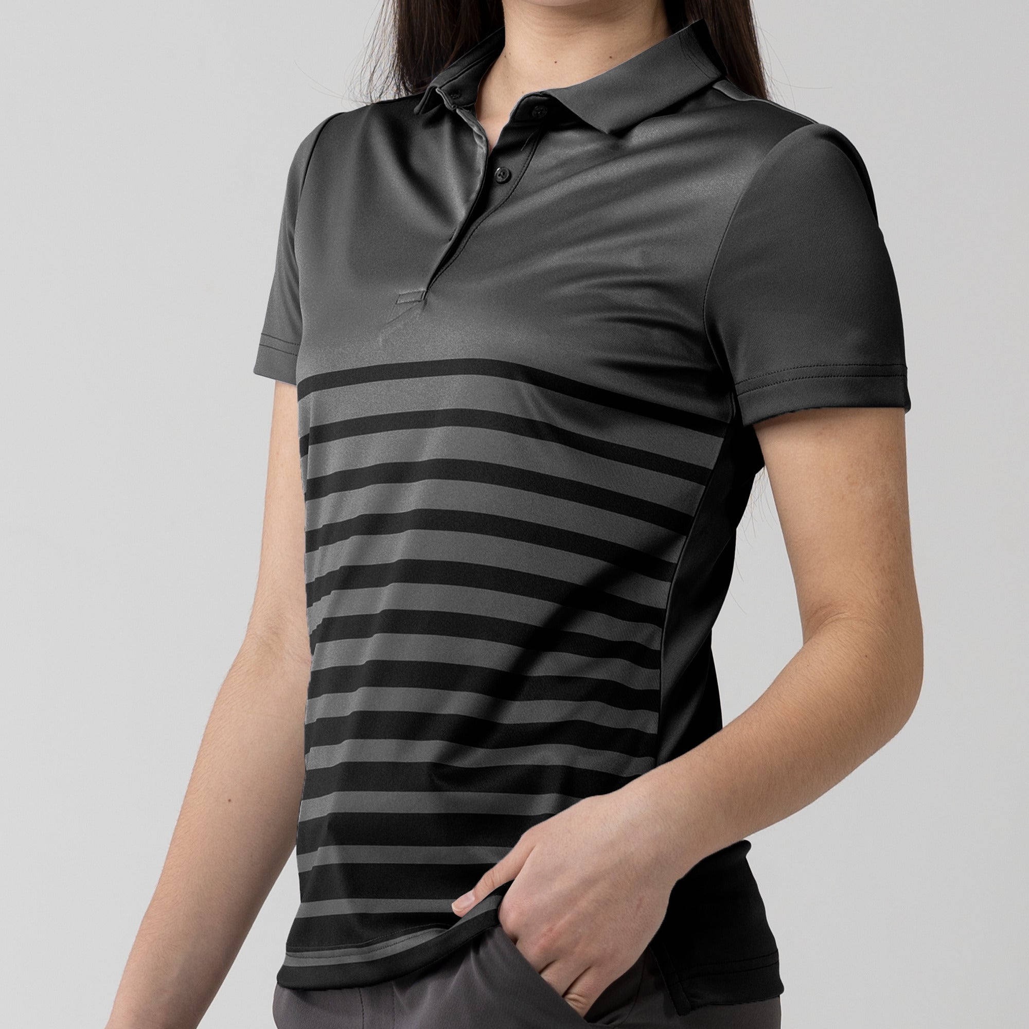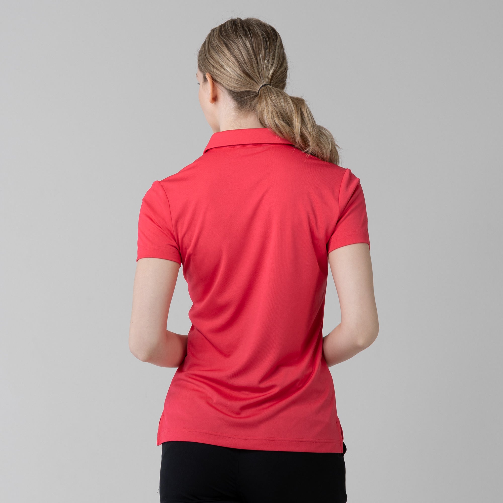 The women's Tone polo is expertly crafted for golf enthusiasts who value both function and style on the course. Made entirely from 100% polyester, this polo is equipped with moisture-wicking properties to keep you comfortably dry, anti-static technology to eliminate cling, and mechanical stretch fabric that moves with you as you swing. It features a smart self-fabric collar for a refined look, and the high-low hem with side slits offers enhanced mobility and a flattering silhouette, ideal for dynamic movement during play. Perfect for a day on the greens or a casual clubhouse gathering, the Tone polo combines performance-driven features with sleek design to ensure you're always at the top of your game.