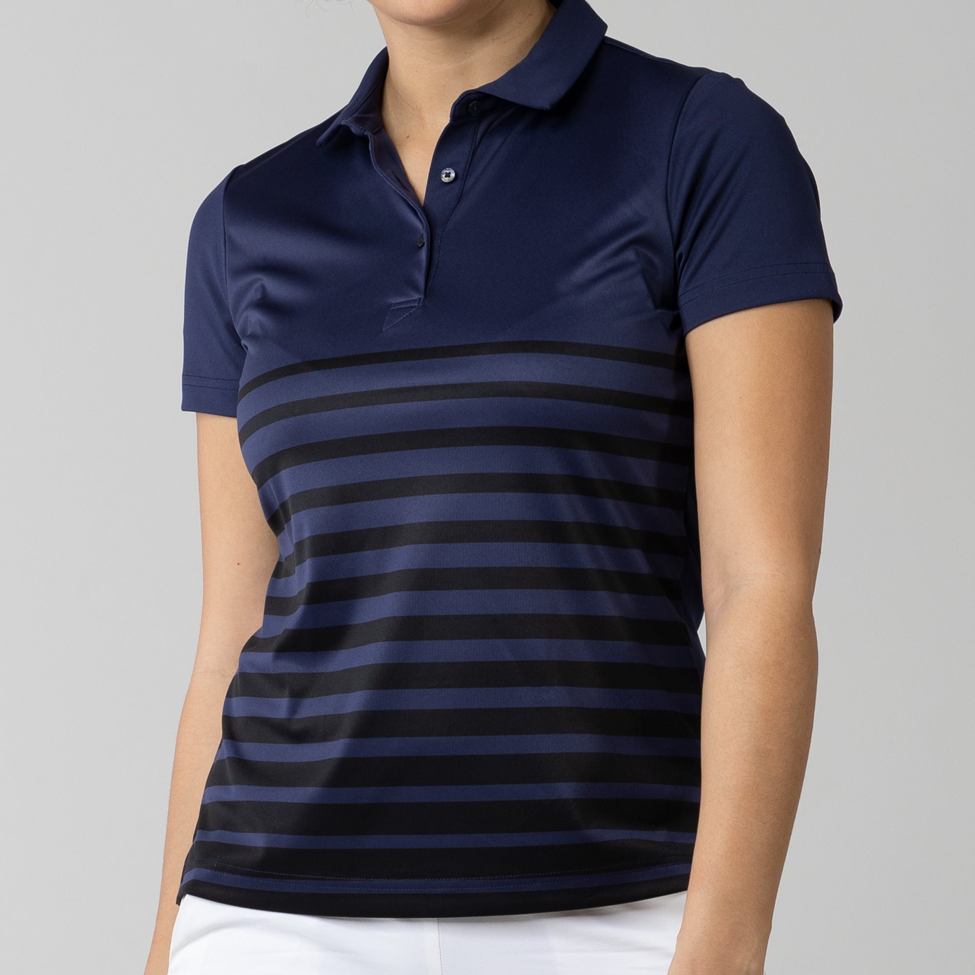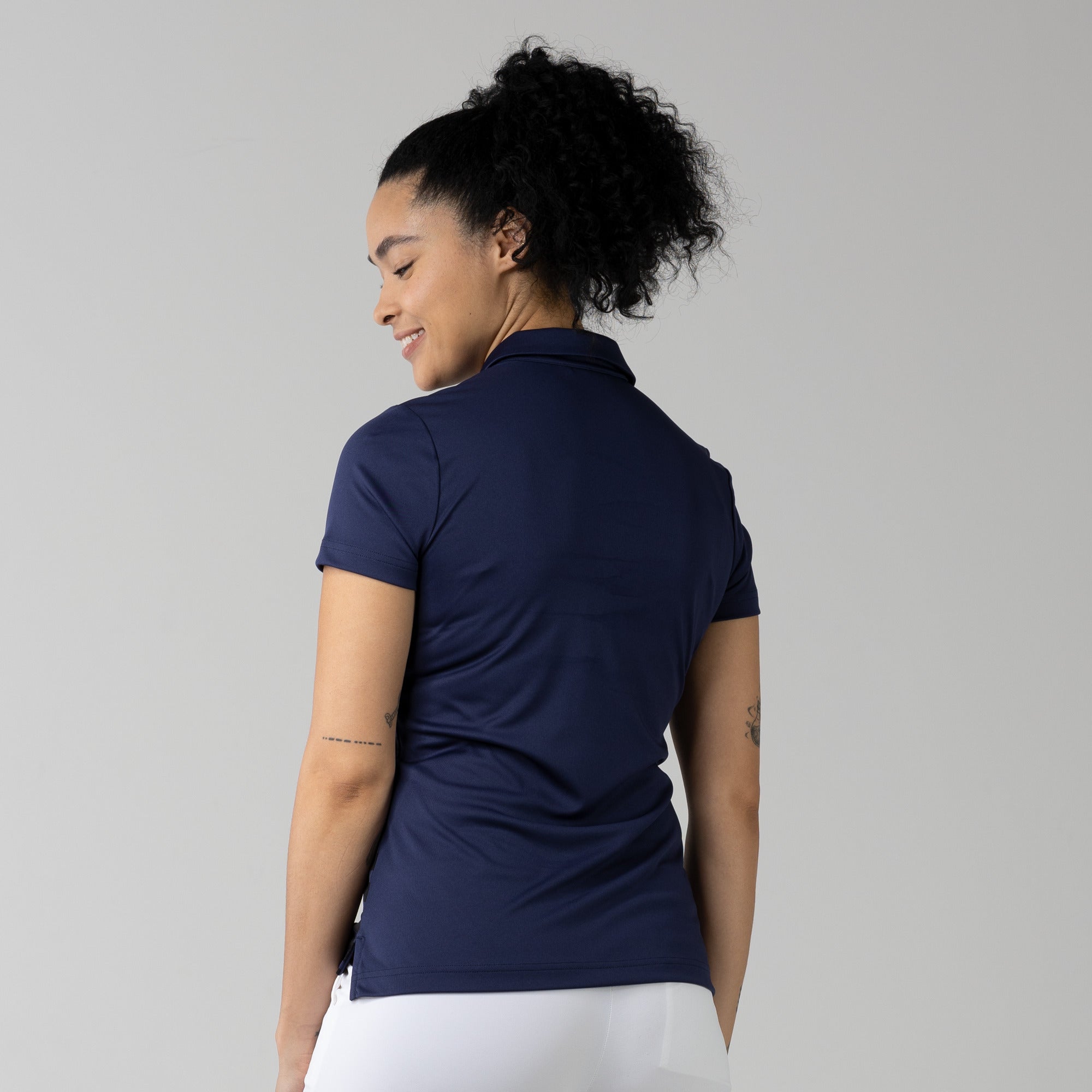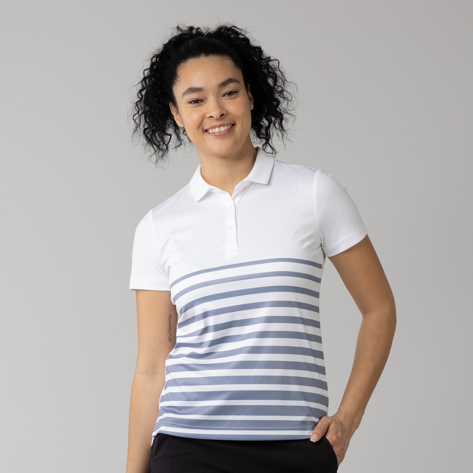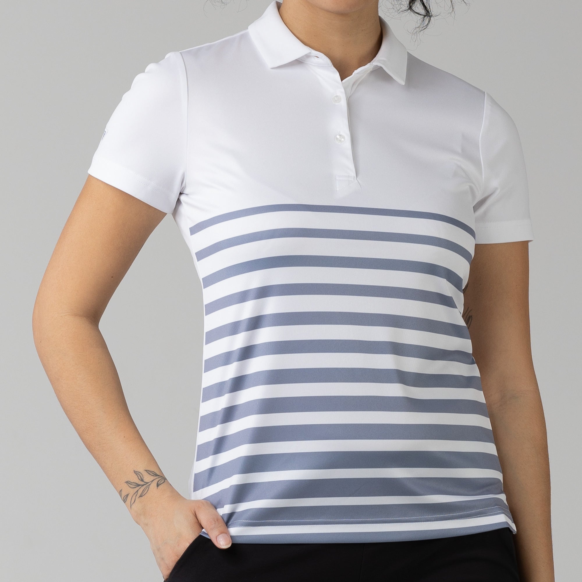 The women's Tone polo is expertly crafted for golf enthusiasts who value both function and style on the course. Made entirely from 100% polyester, this polo is equipped with moisture-wicking properties to keep you comfortably dry, anti-static technology to eliminate cling, and mechanical stretch fabric that moves with you as you swing. It features a smart self-fabric collar for a refined look, and the high-low hem with side slits offers enhanced mobility and a flattering silhouette, ideal for dynamic movement during play. Perfect for a day on the greens or a casual clubhouse gathering, the Tone polo combines performance-driven features with sleek design to ensure you're always at the top of your game.