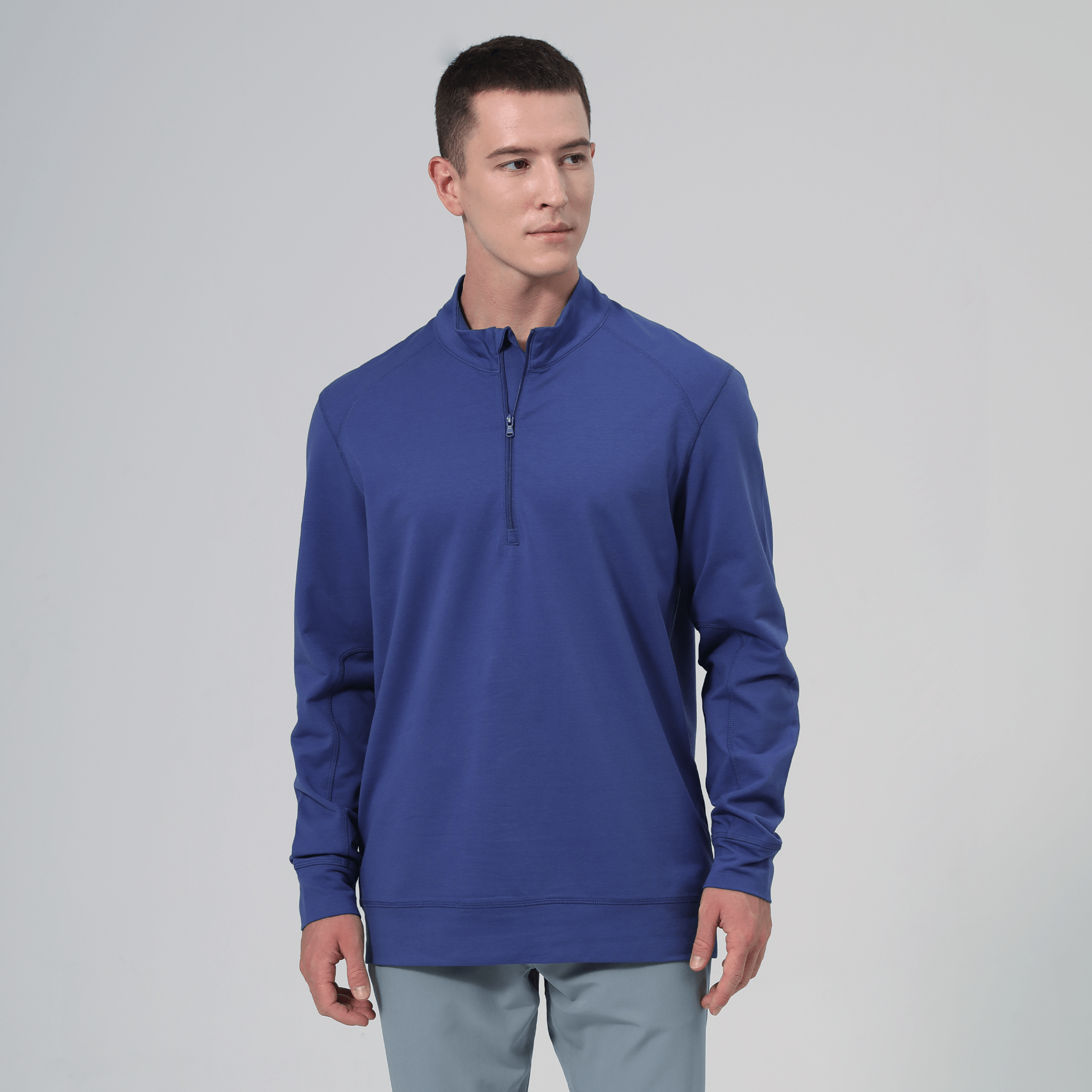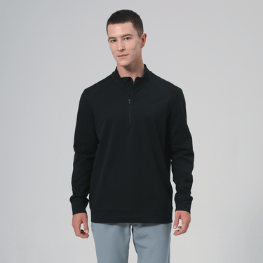 The Upright midlayer is a versatile and comfortable option for layering, designed with performance and style in mind. Featuring a quarter-zip with a stand-up collar, it offers easy adjustability for temperature control, while the flatlock stitching throughout enhances durability and creates a sleek, clean finish. Raglan sleeves provide a full range of motion, making it perfect for active wear, and the ribbed cuffs ensure a snug and comfortable fit. Made from a blend of 70% cotton, 25% polyester, and 5% elastane, this midlayer combines softness, flexibility, and breathability for any occasion, whether you're headed to the golf course or just on the move.