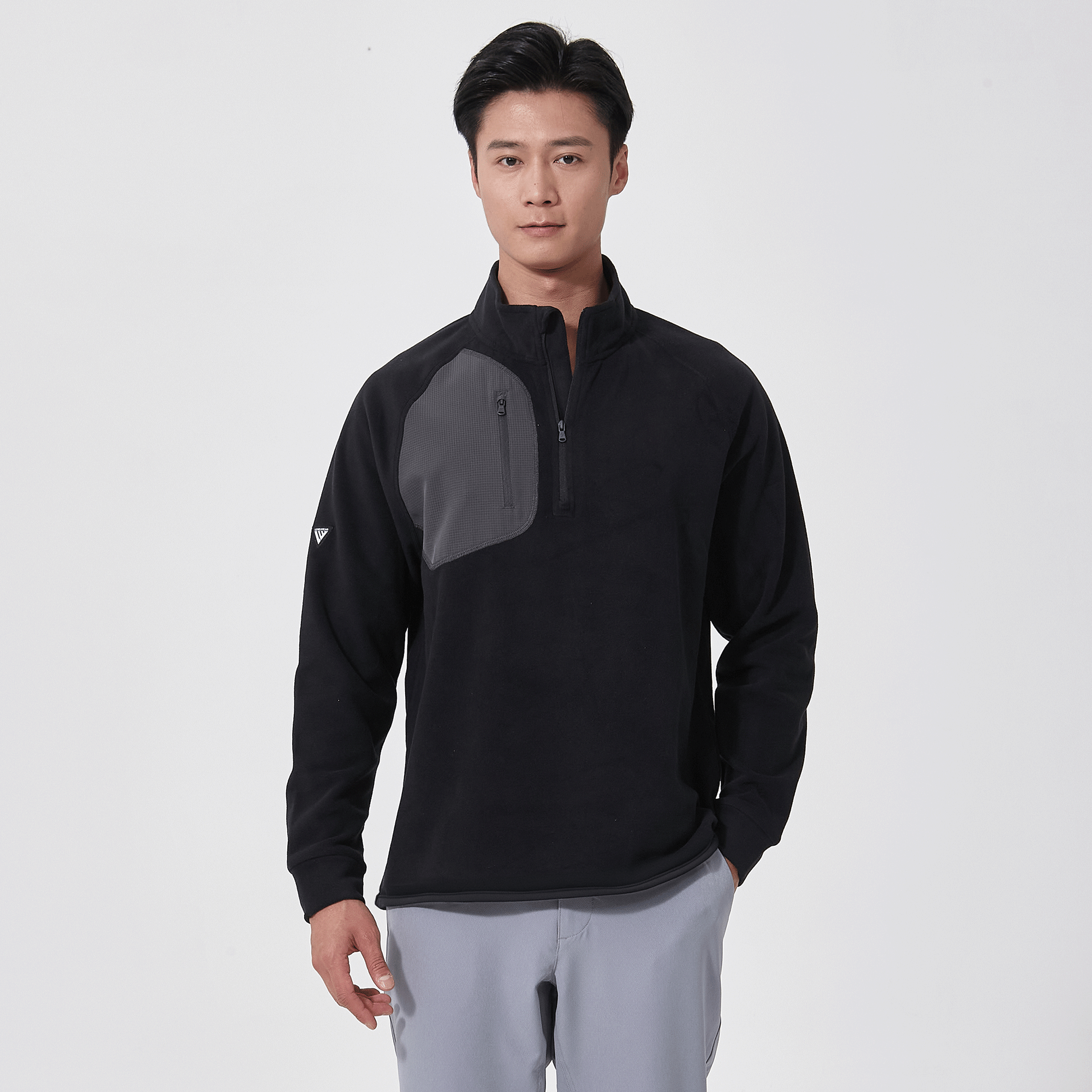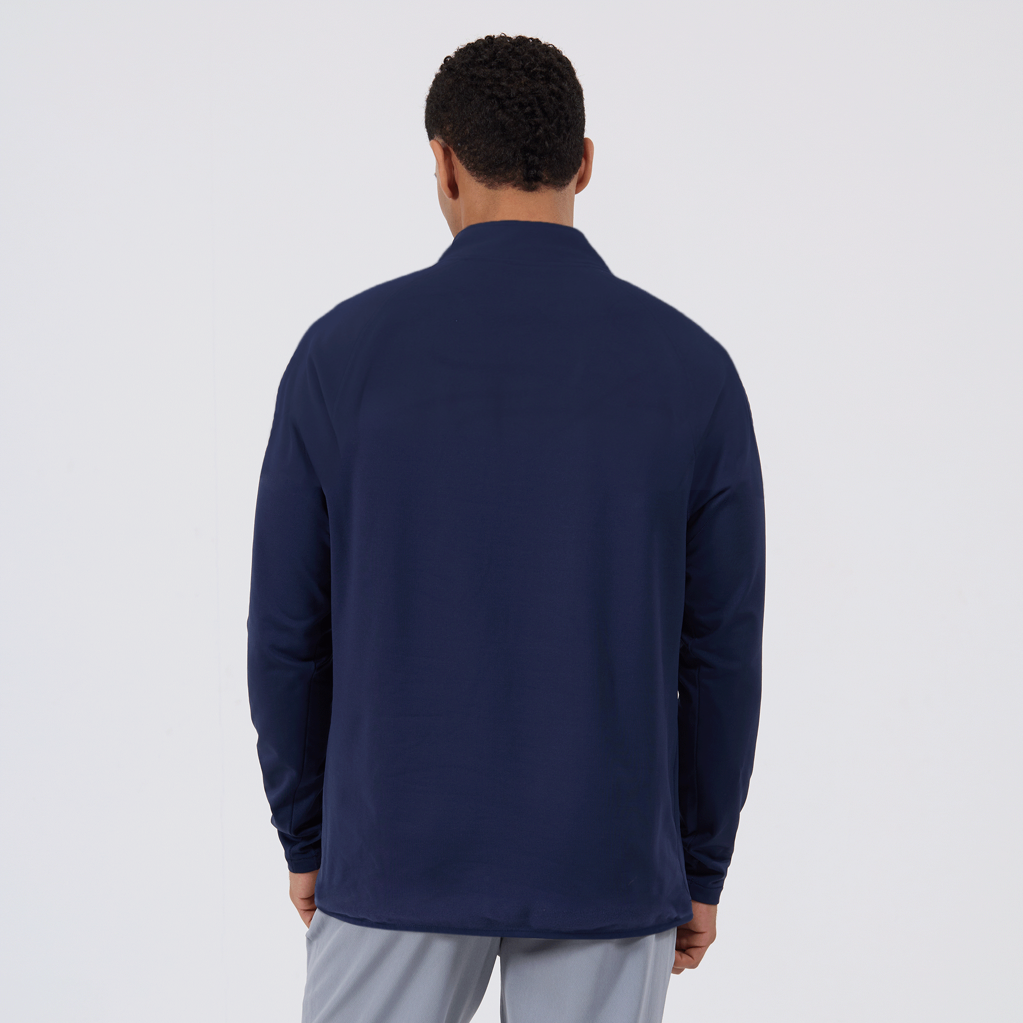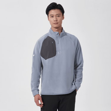 - Quarter-zip with stand-up collar