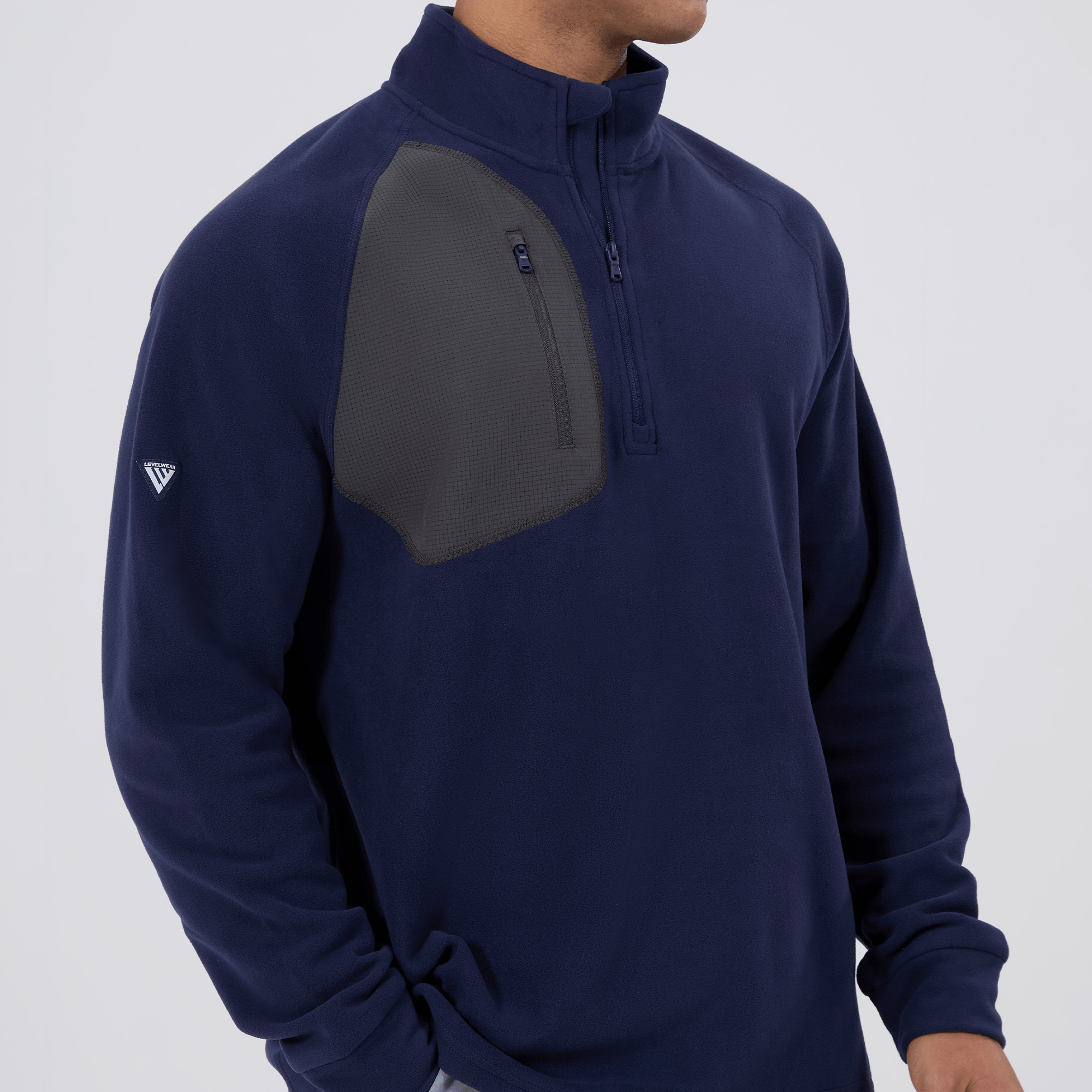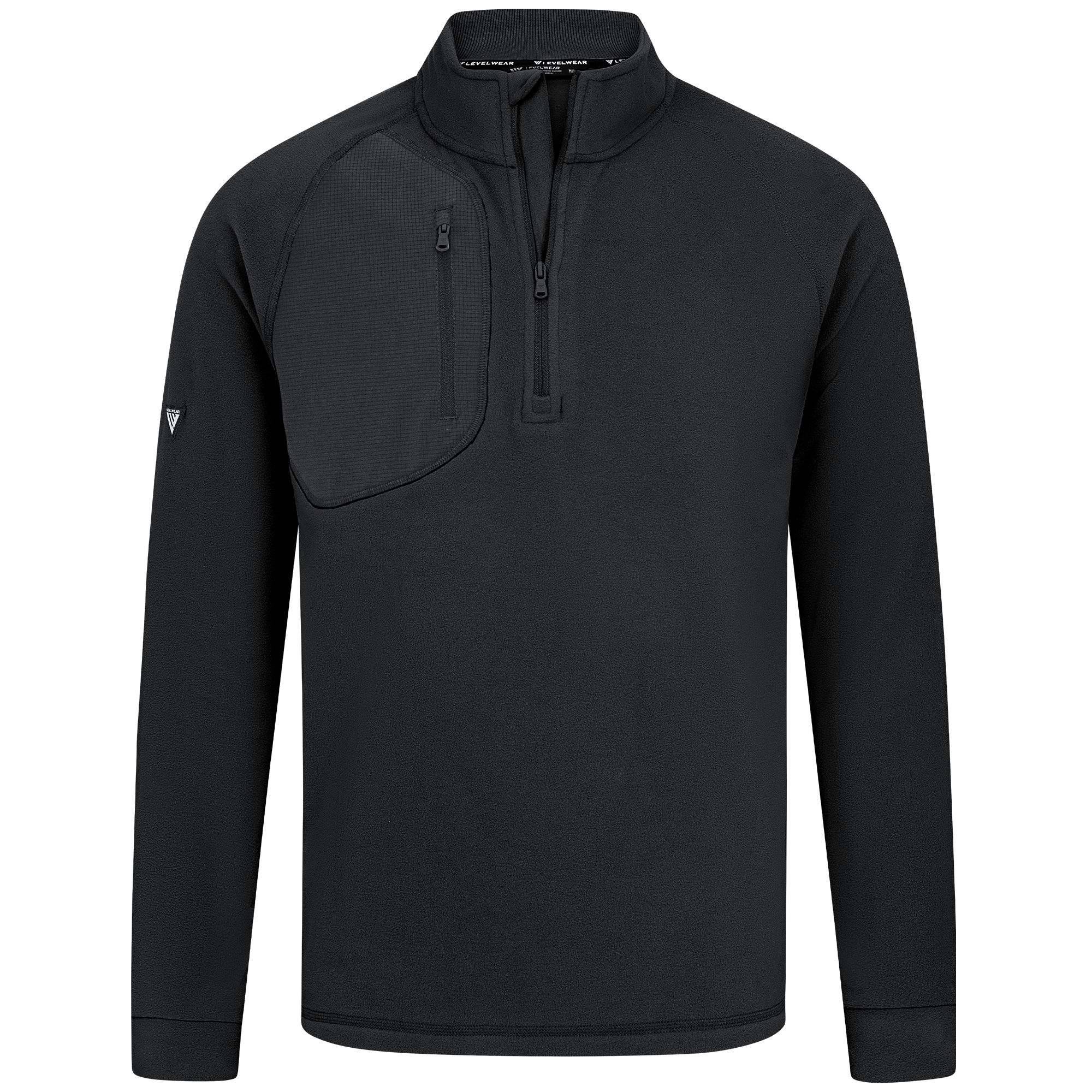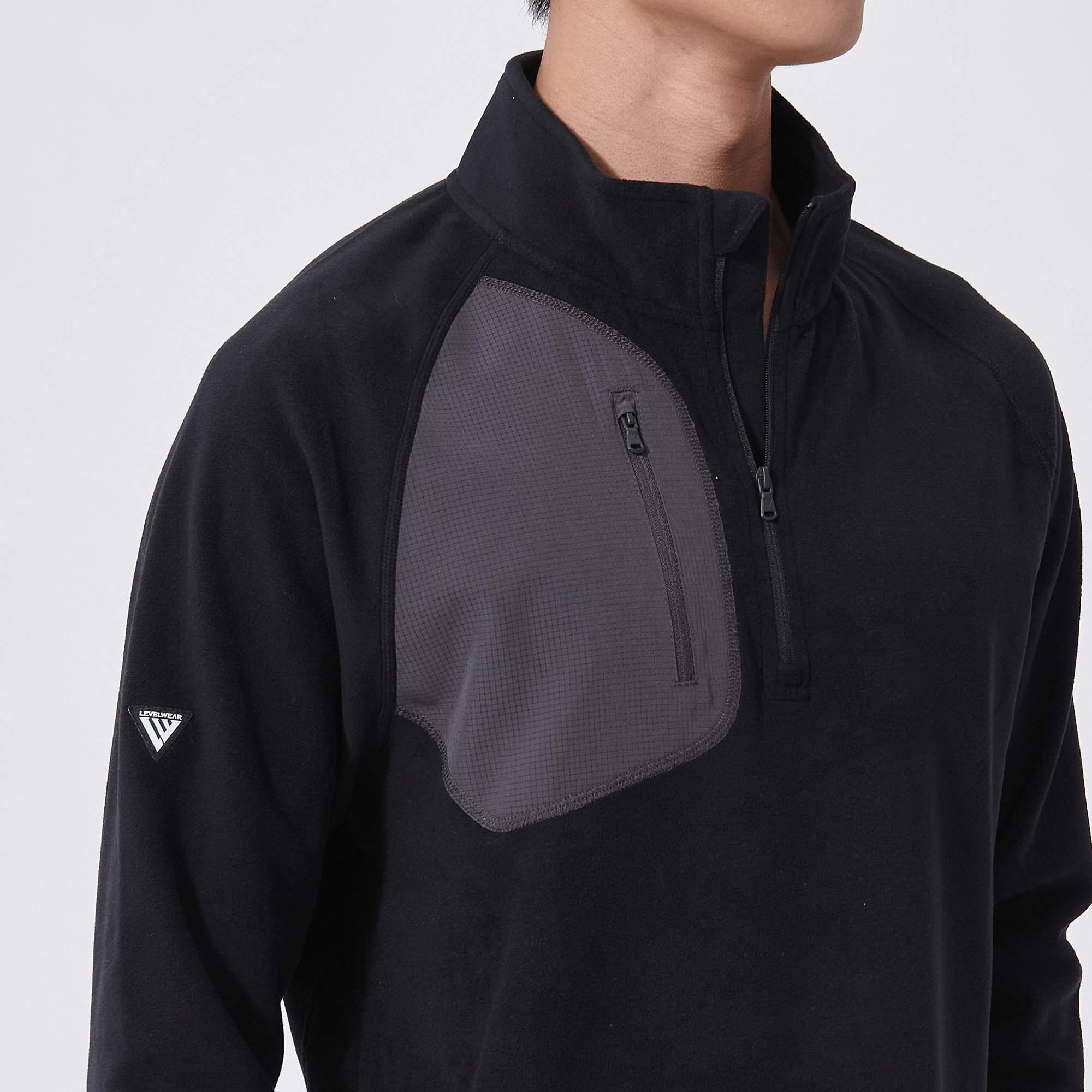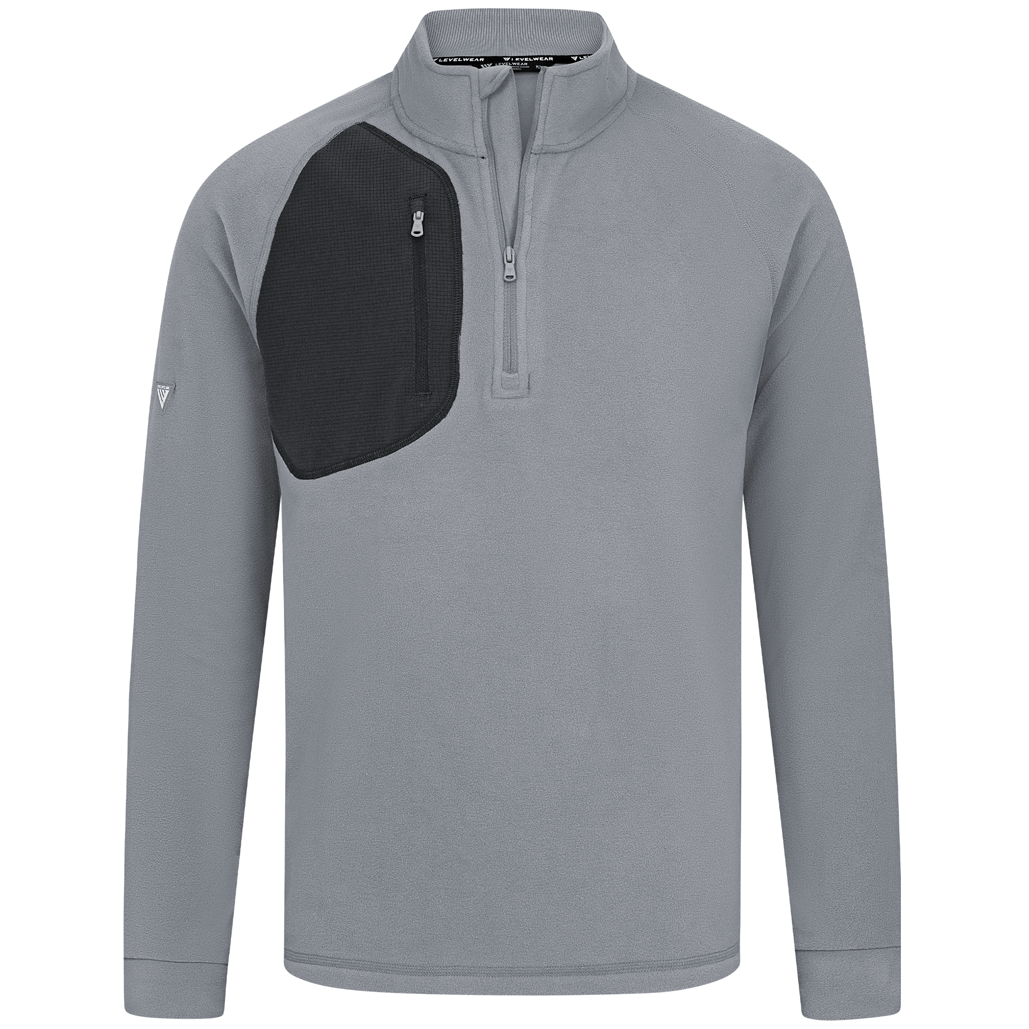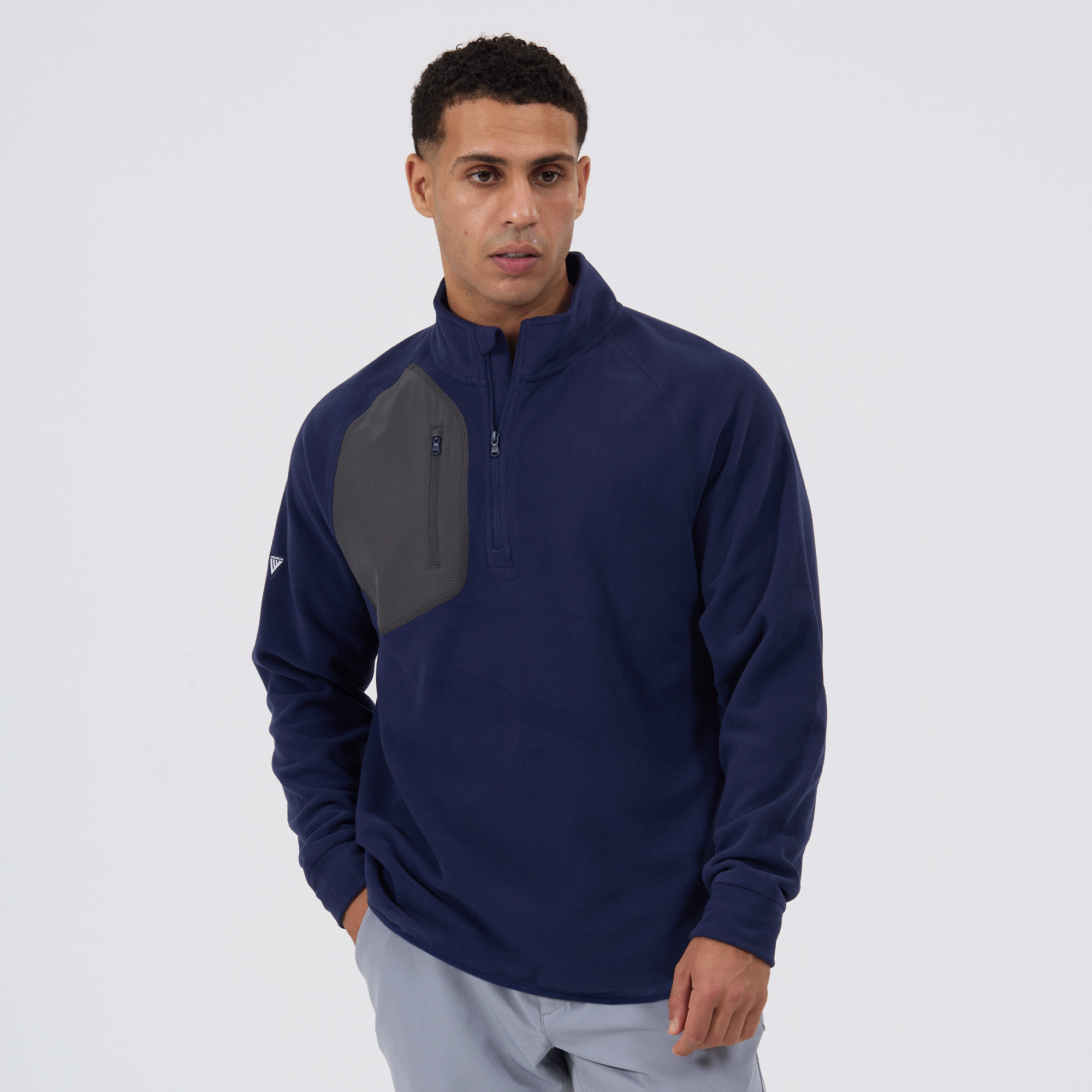 The Utility midlayer is tailored for both active and casual wear, featuring 100% recycled polyester with contrasting panels of 90% polyester and 10% spandex. The anti-static micro fleece fabric provides warmth ideal for layering in cooler conditions without adding bulk. This midlayer includes a quarter-zip with a stand-up collar for adjustable warmth, and a zippered patch pocket on the right chest for secure storage of essentials. Raglan sleeves and self-fabric cuffs enhance freedom of movement, while its sleek silhouette ensures it fits seamlessly into any wardrobe, perfect for various activities and everyday wear.