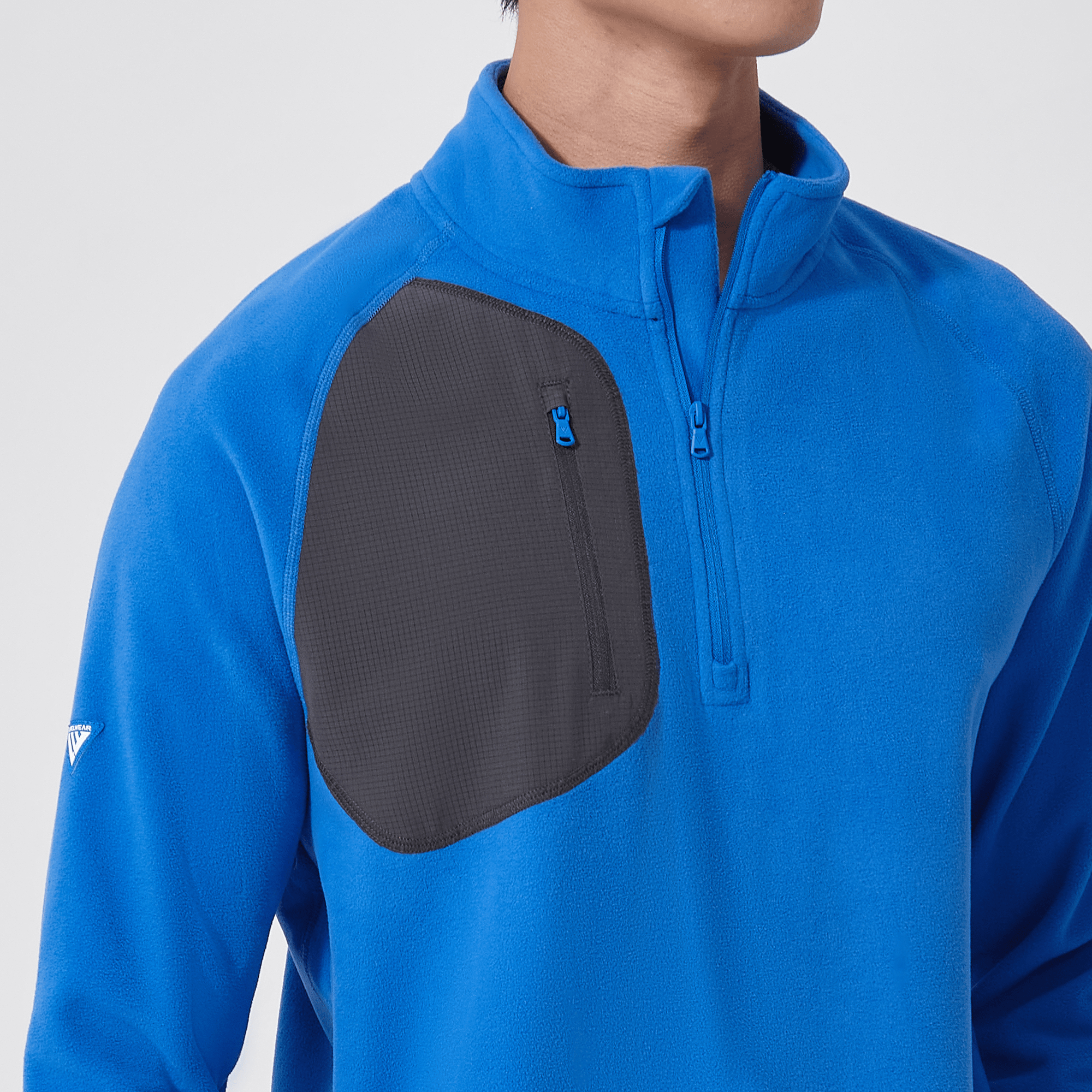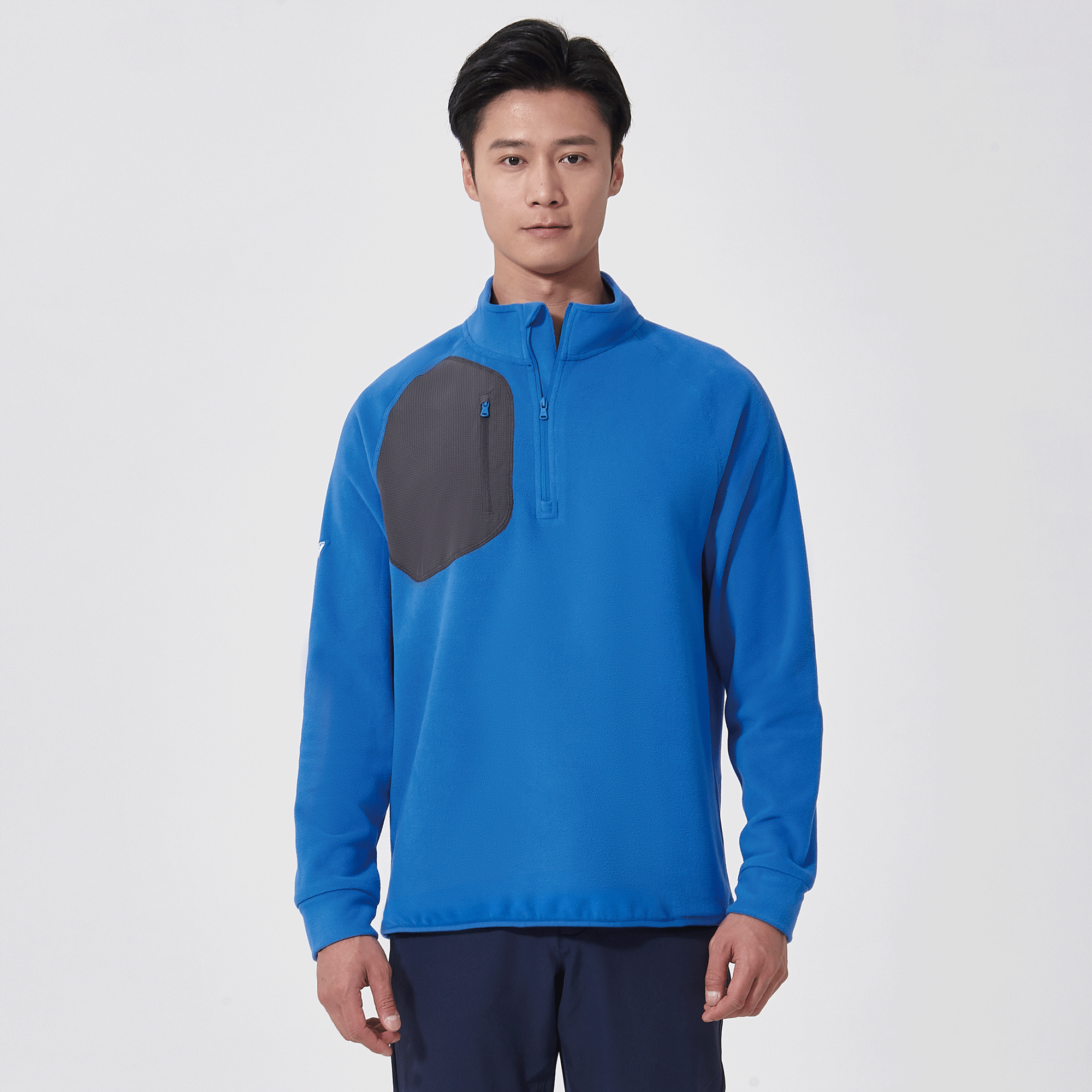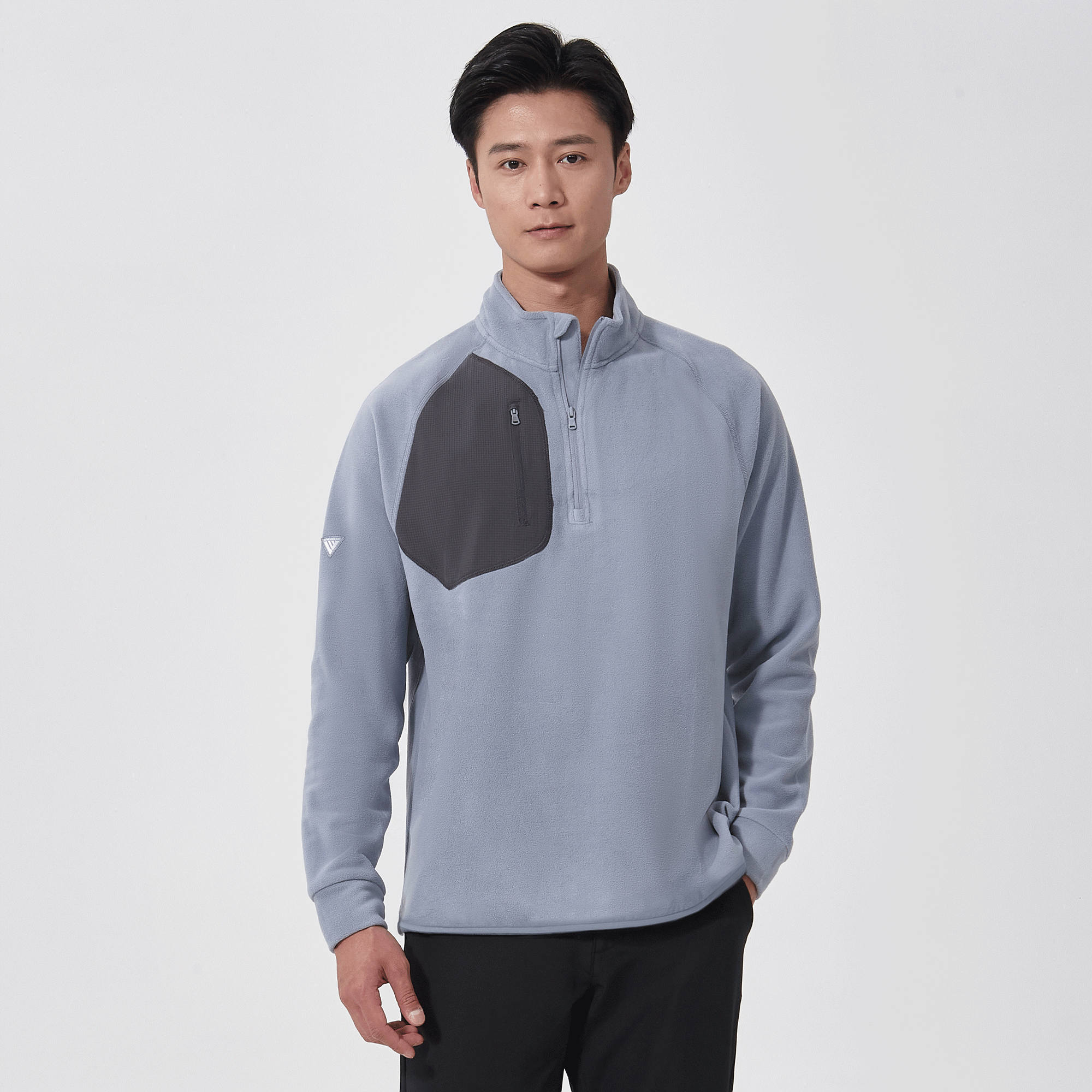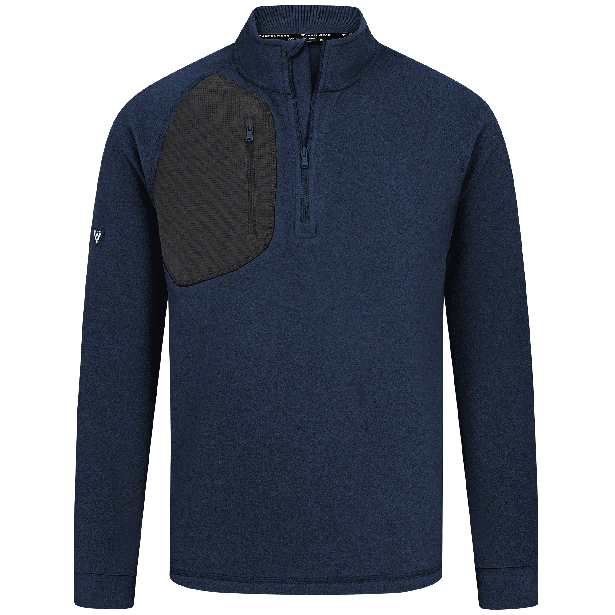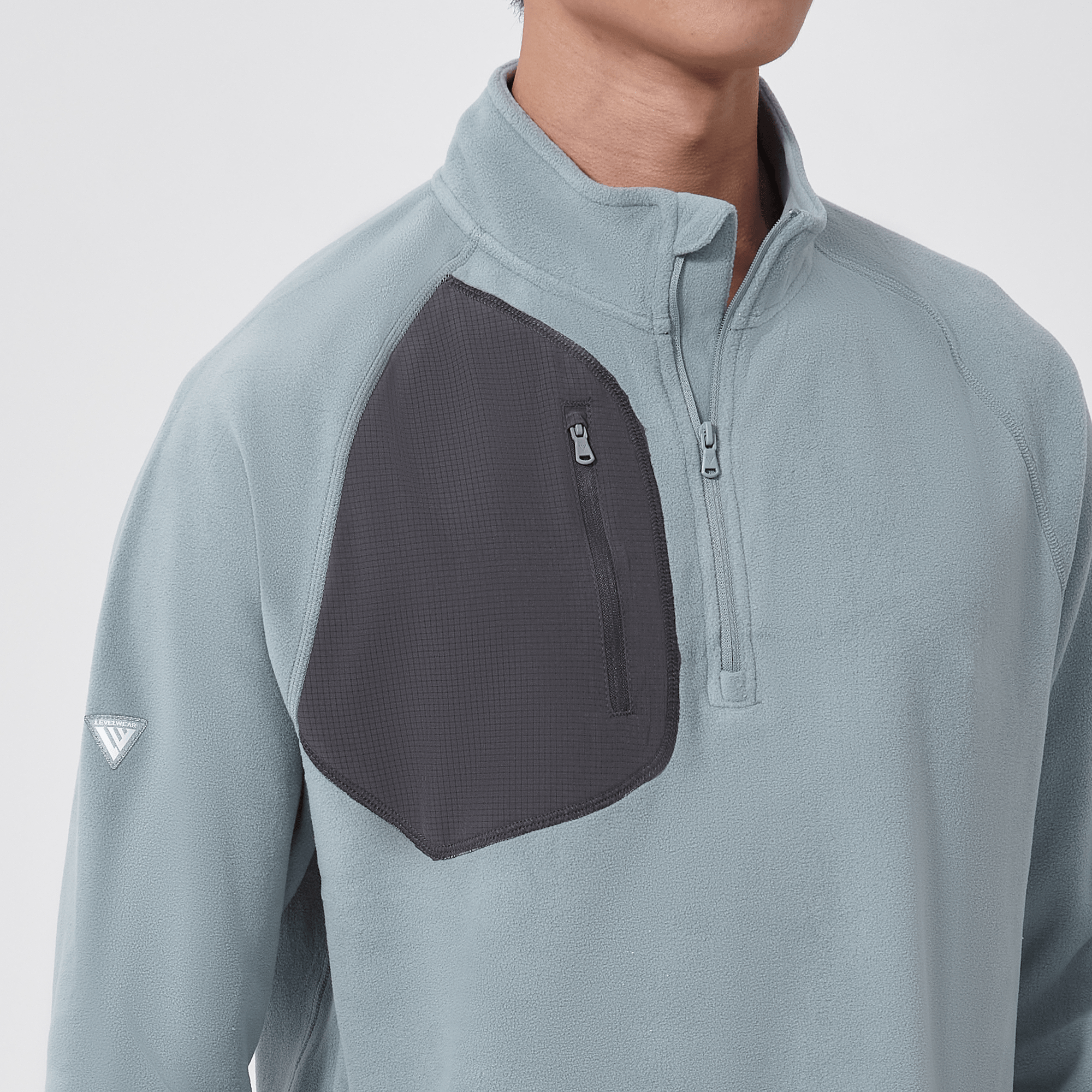 The Utility midlayer is tailored for both active and casual wear, featuring 100% recycled polyester with contrasting panels of 90% polyester and 10% spandex. The anti-static micro fleece fabric provides warmth ideal for layering in cooler conditions without adding bulk. This midlayer includes a quarter-zip with a stand-up collar for adjustable warmth, and a zippered patch pocket on the right chest for secure storage of essentials. Raglan sleeves and self-fabric cuffs enhance freedom of movement, while its sleek silhouette ensures it fits seamlessly into any wardrobe, perfect for various activities and everyday wear.
