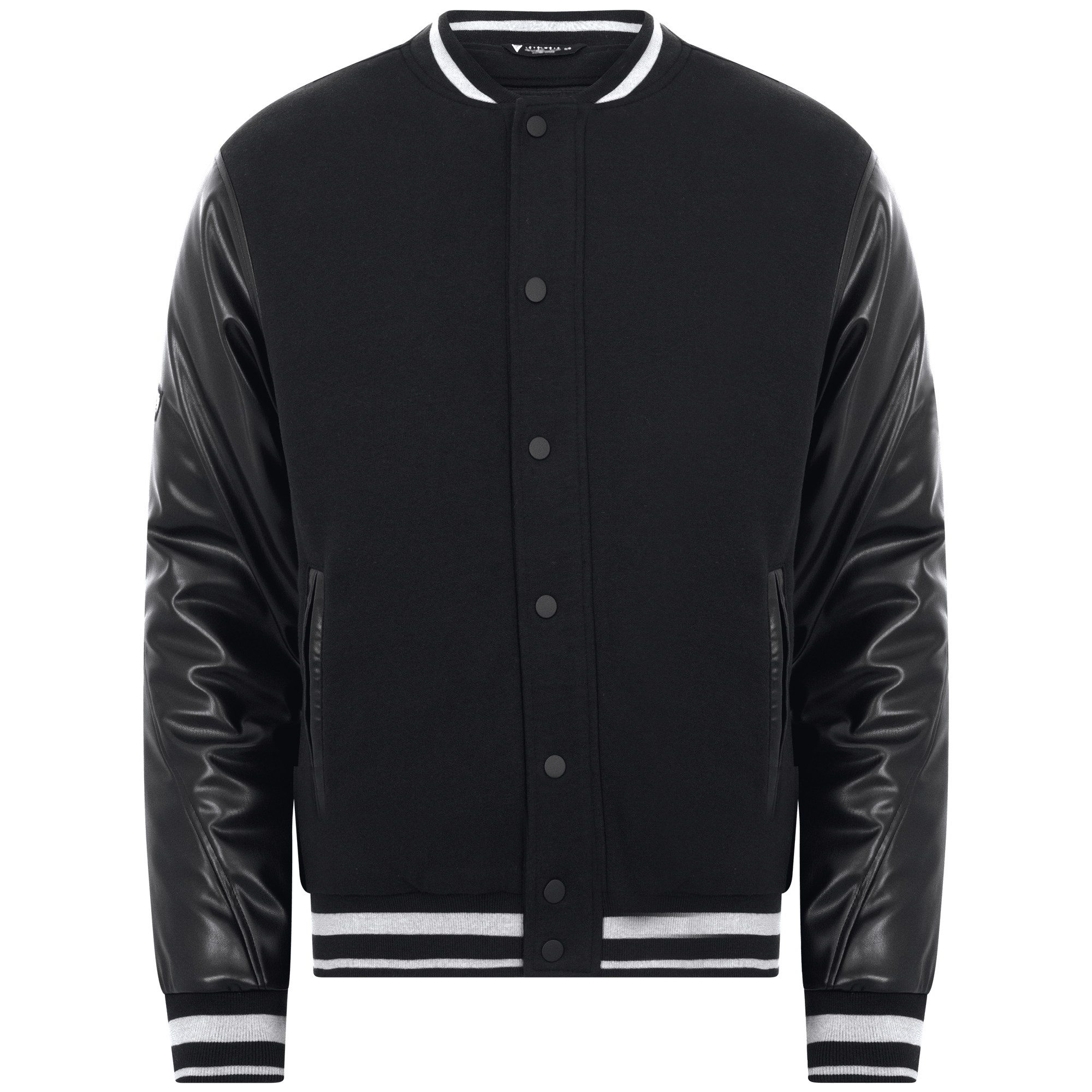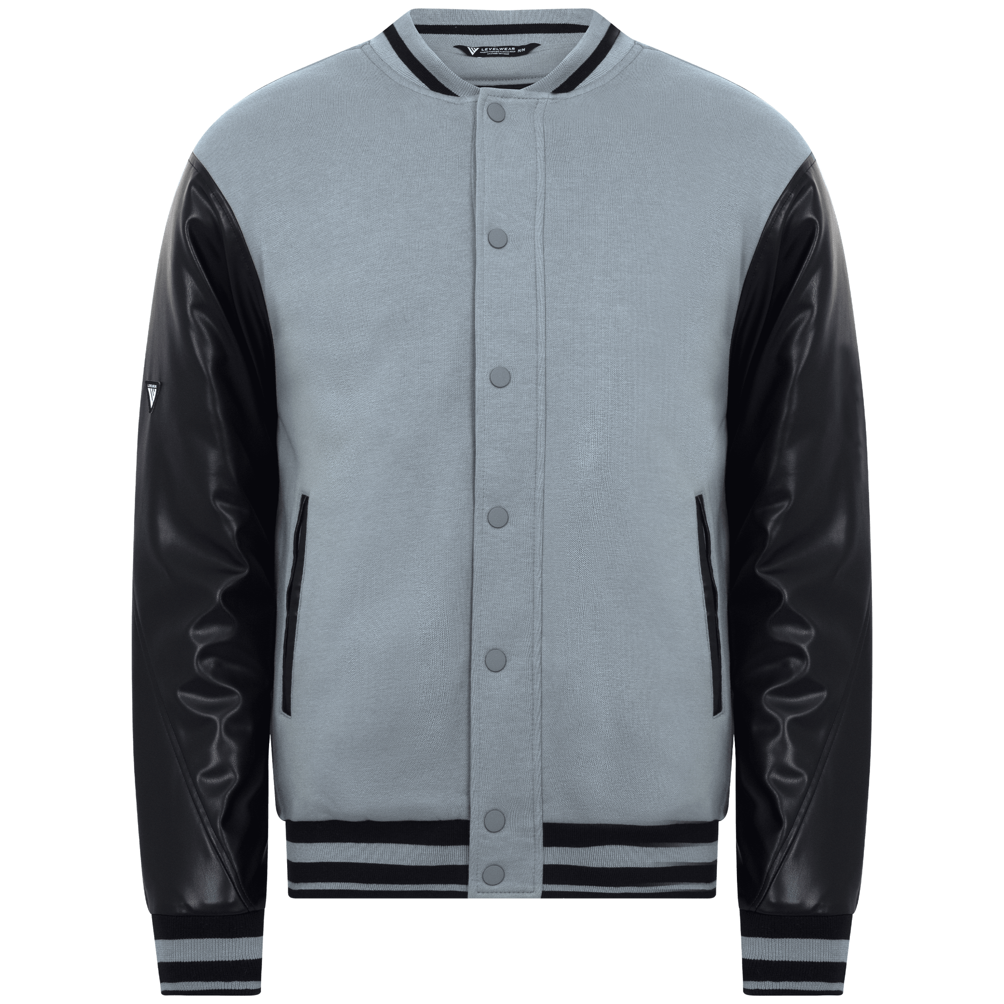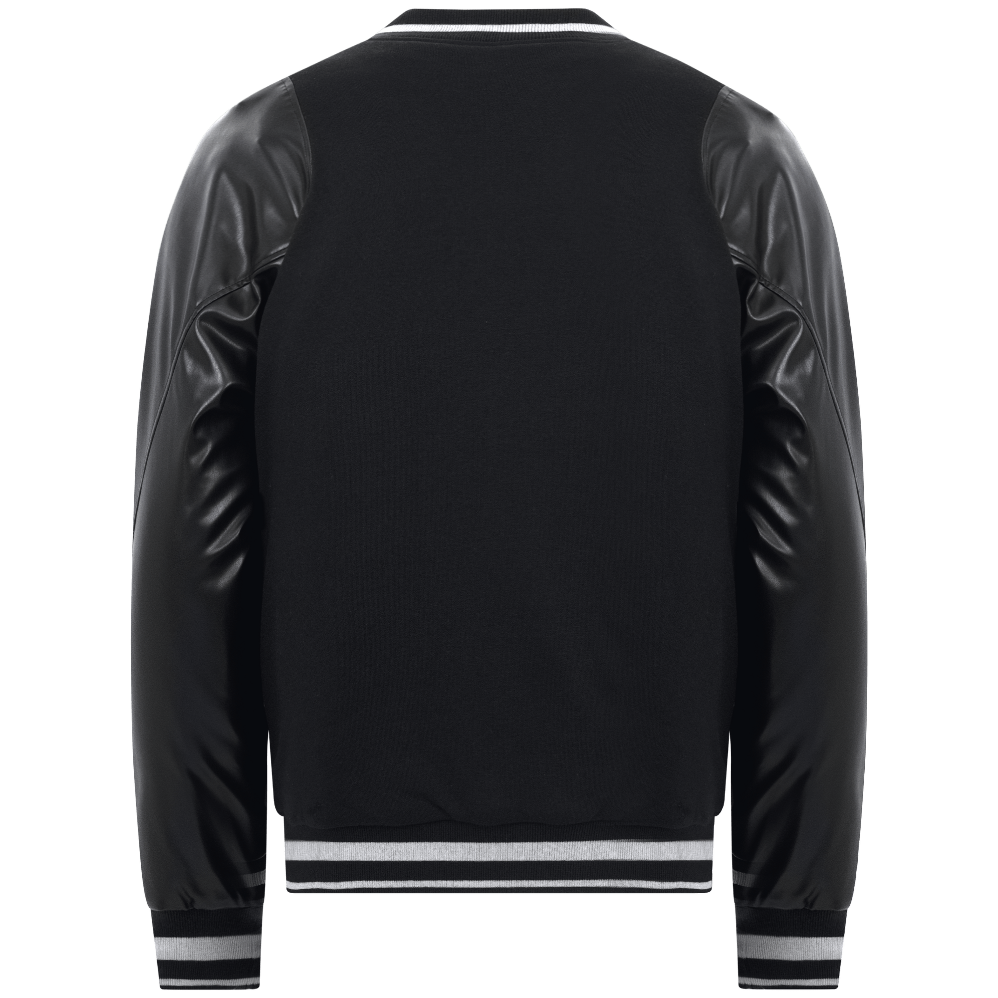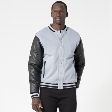 The men's Varsity combines the comfort of 80% cotton and 20% polyester with the sleek edge of contrast PU leather sleeves. It features double-lip welt pockets that not only enhance the aesthetic but also provide practical storage for essentials. The varsity stripes ribbing detail on the cuffs and hem adds an authentic, sporty touch, while the snap button closure at the center front ensures easy wearability. The stylized back sleeve seams offer a unique design element that sets this piece apart from traditional varsity jackets. Whether you're headed to a game or just looking to add some retro flair to your wardrobe, the men's Varsity delivers it all.