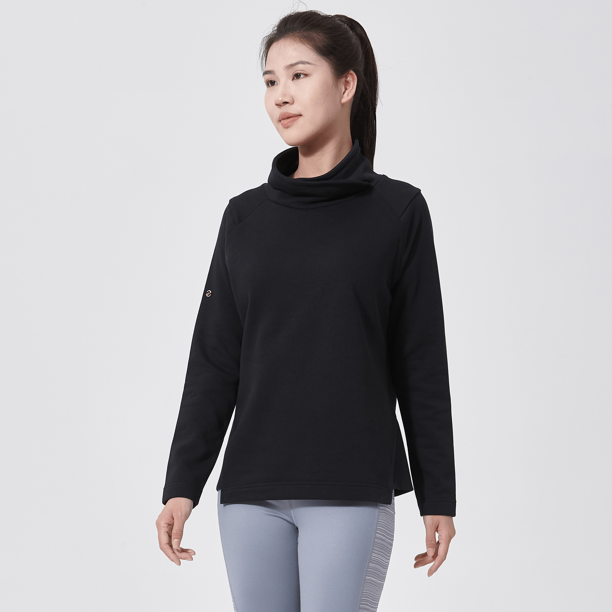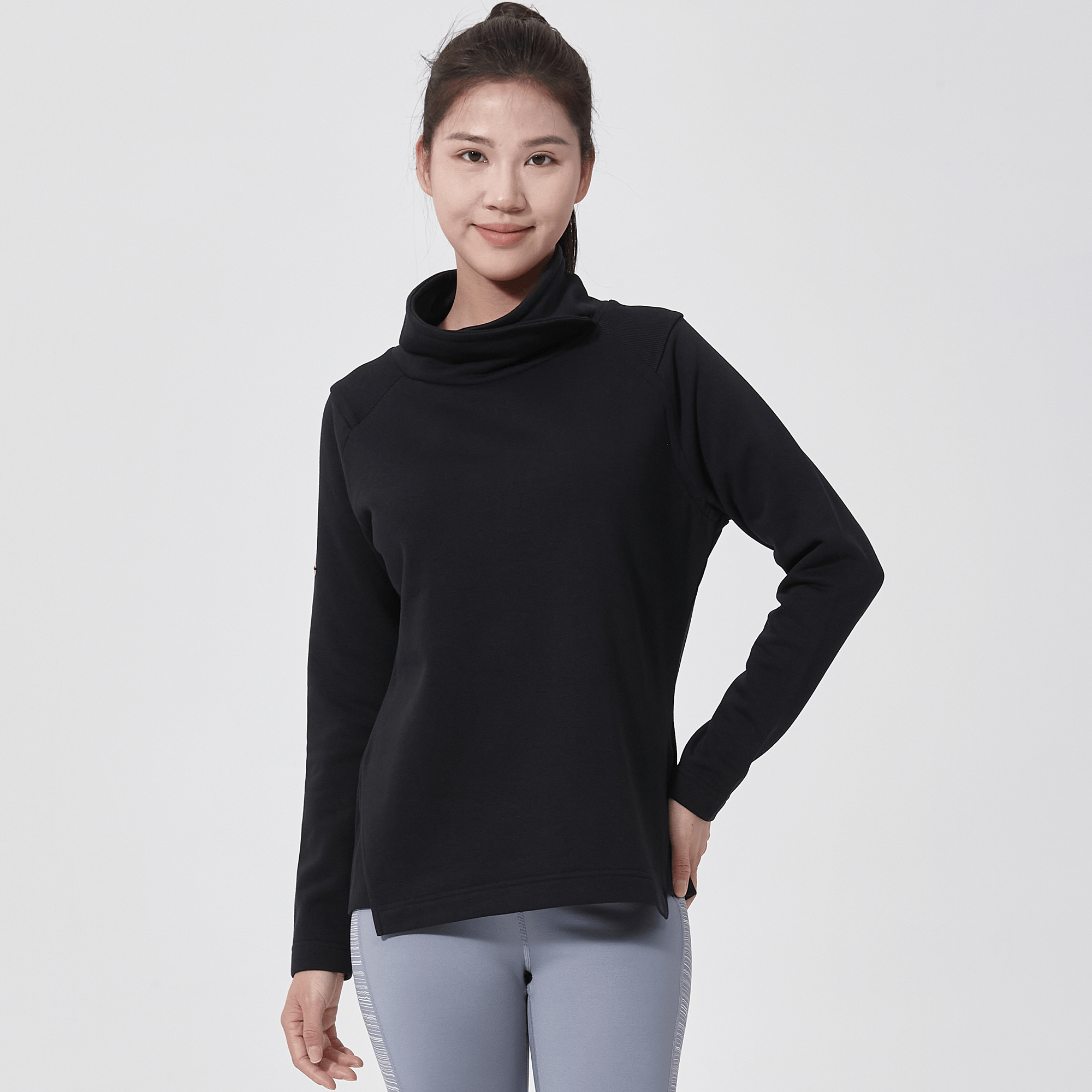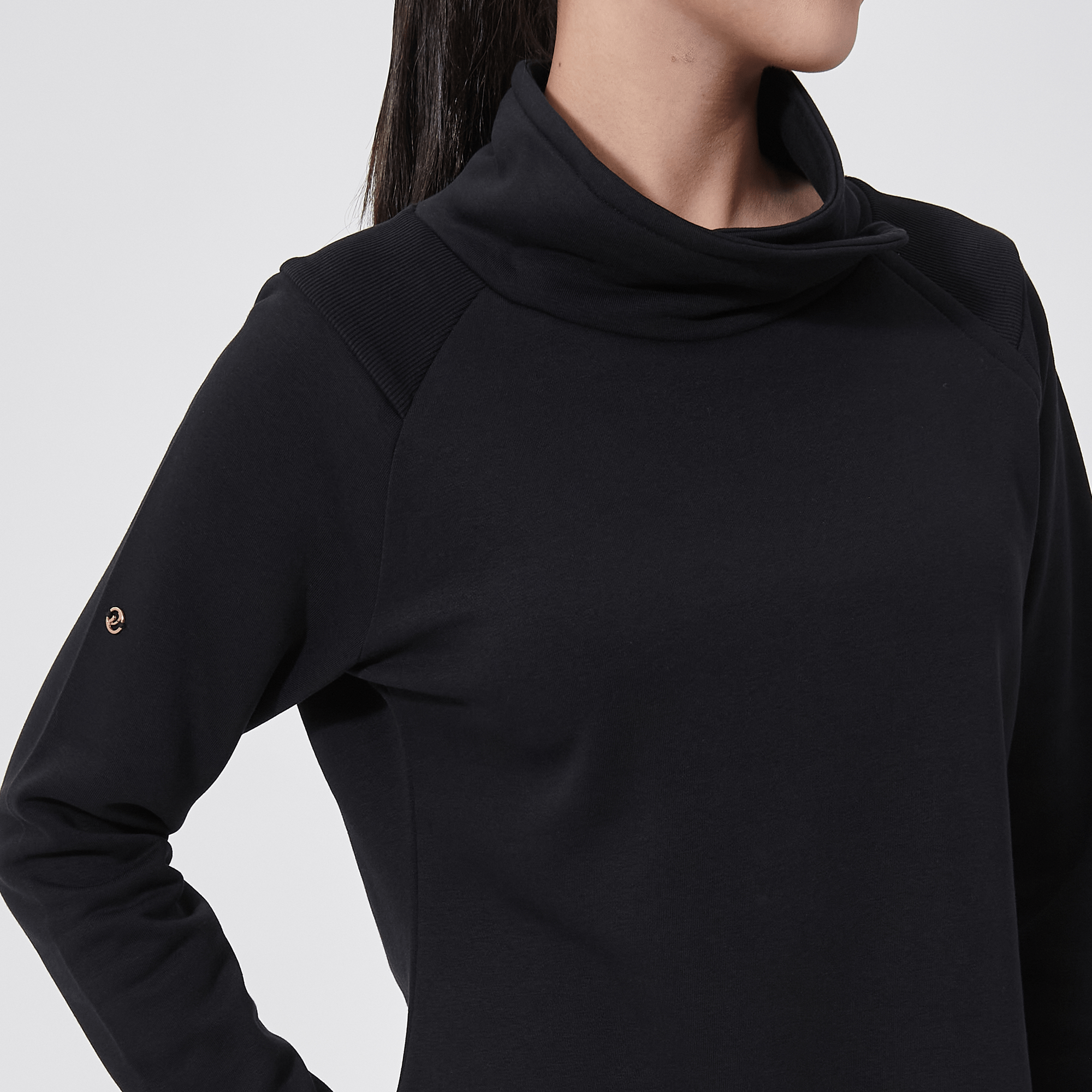 - Ribbed shoulder panels and side hem panels
