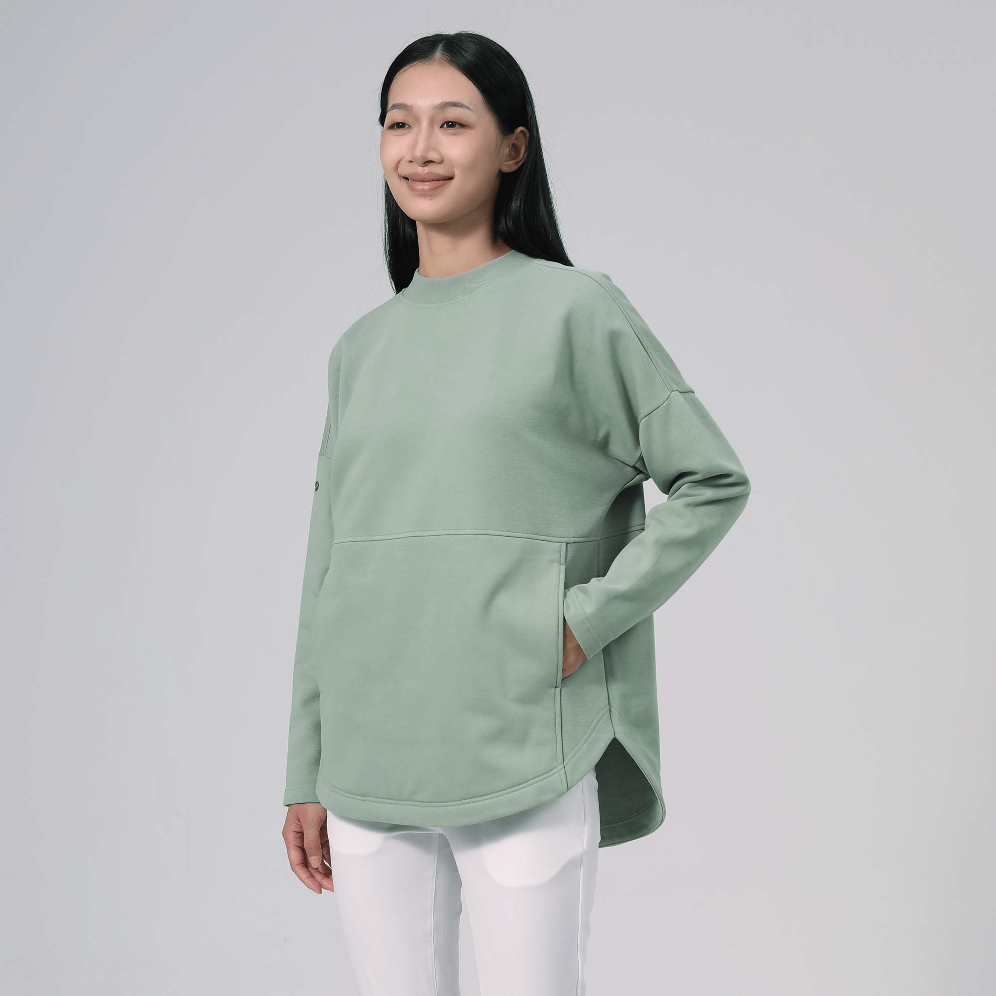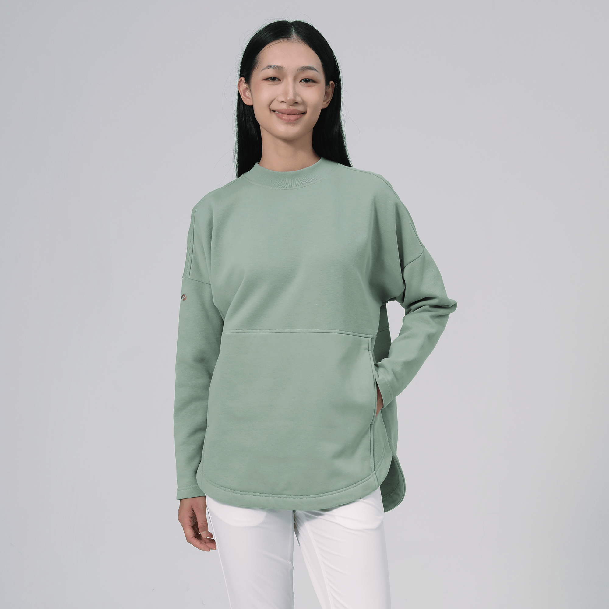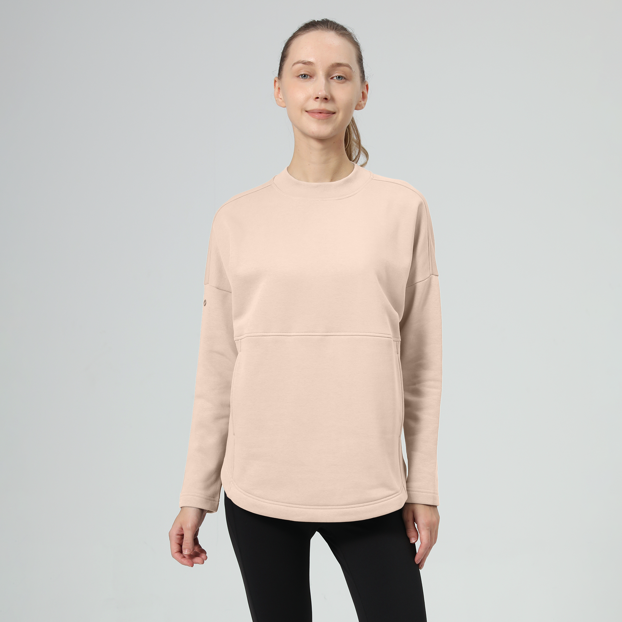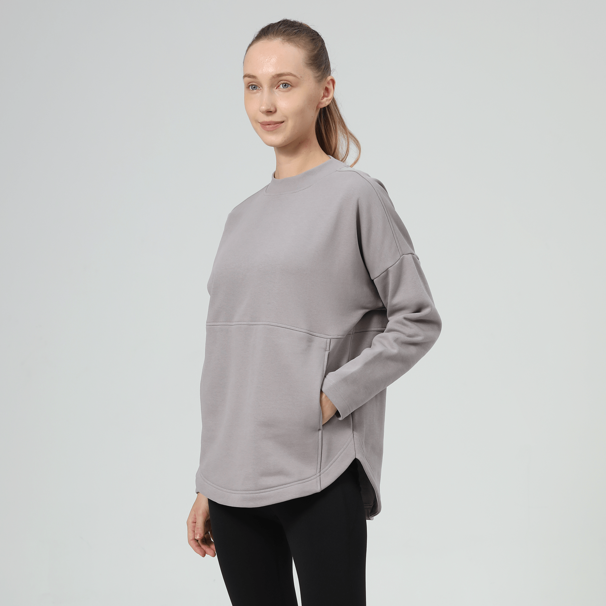 The Beaudry features a ribbed collar trim that adds a refined edge to its overall relaxed feel. Its drop shoulder loose fit silhouette offers a generous cut, ensuring freedom of movement and a laid-back look. Front inseam pockets are subtly integrated, providing practical storage without compromising style. The high-low hem detail enhances the garment's contemporary aesthetic, making it a stylish choice for everyday wear. Crafted from a soft blend of 80% cotton and 20% polyester, the Beaudry combines durability with softness, perfect for versatile, day-long comfort.