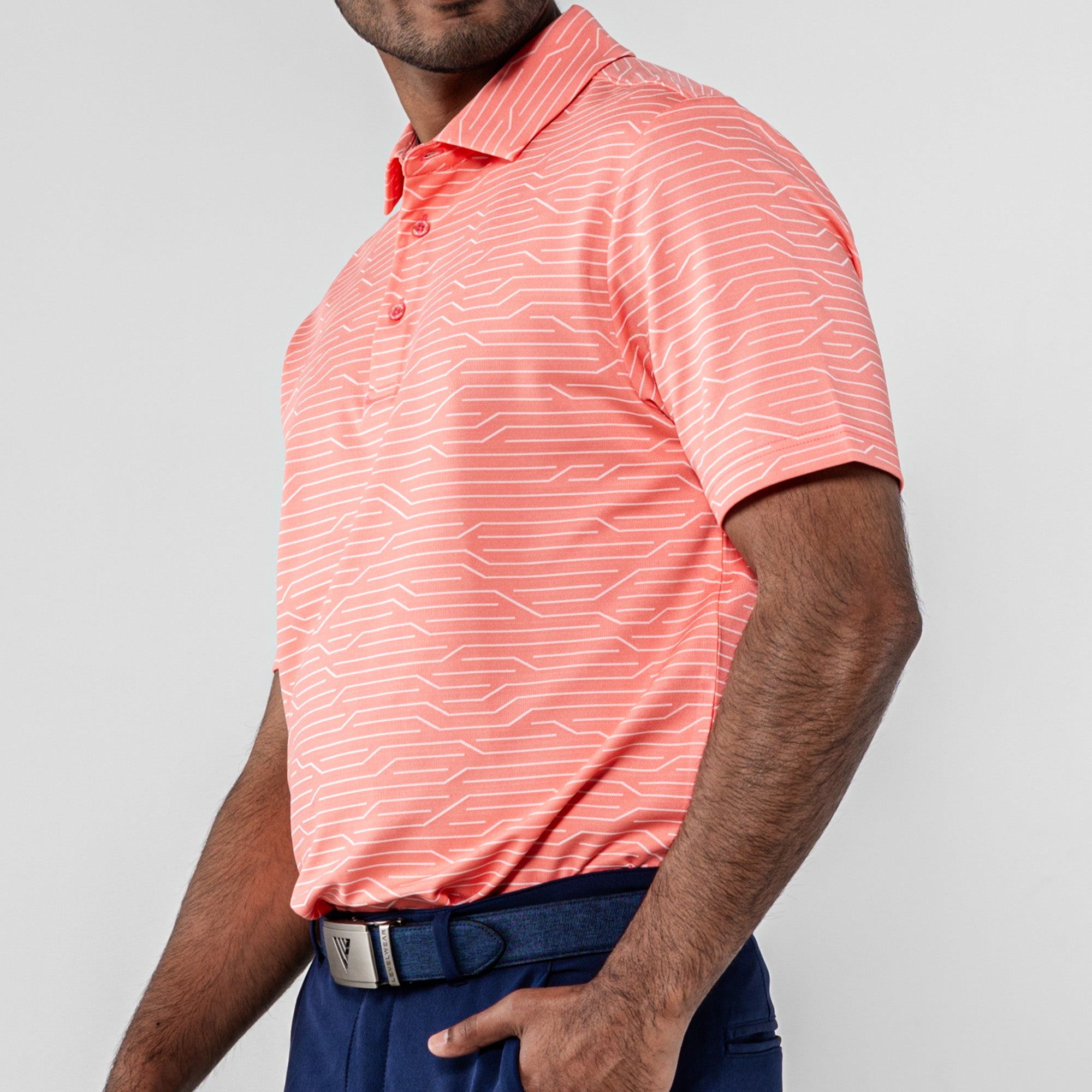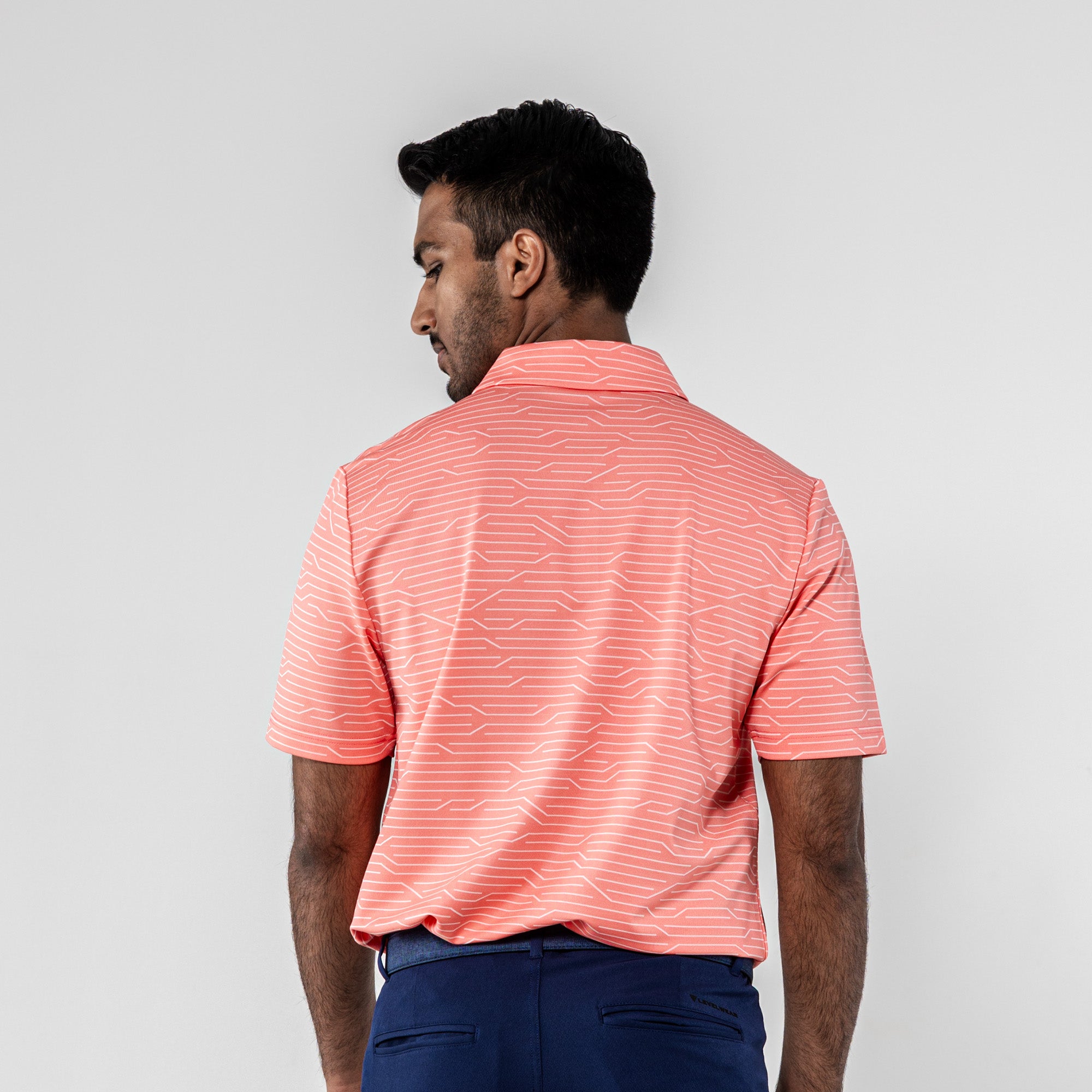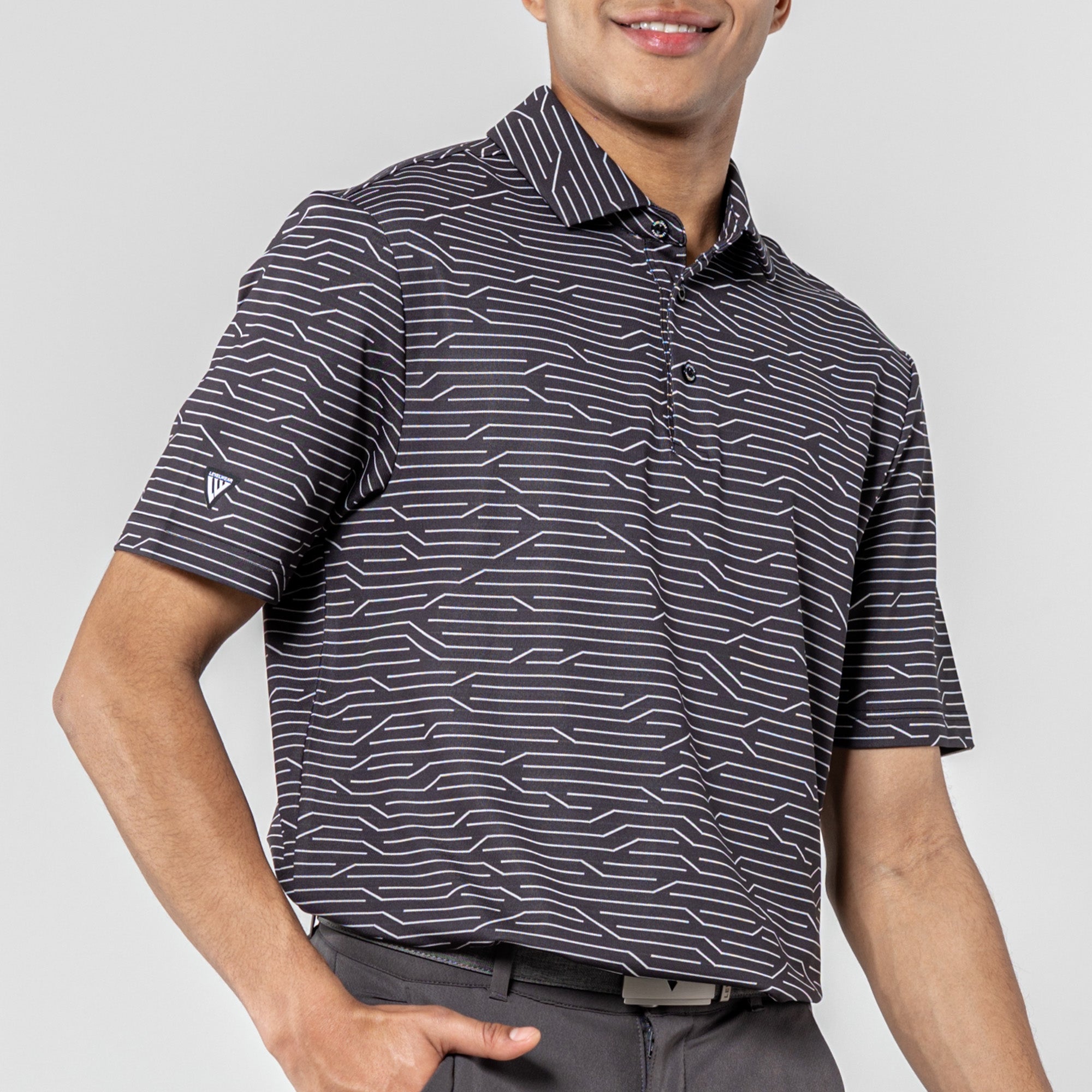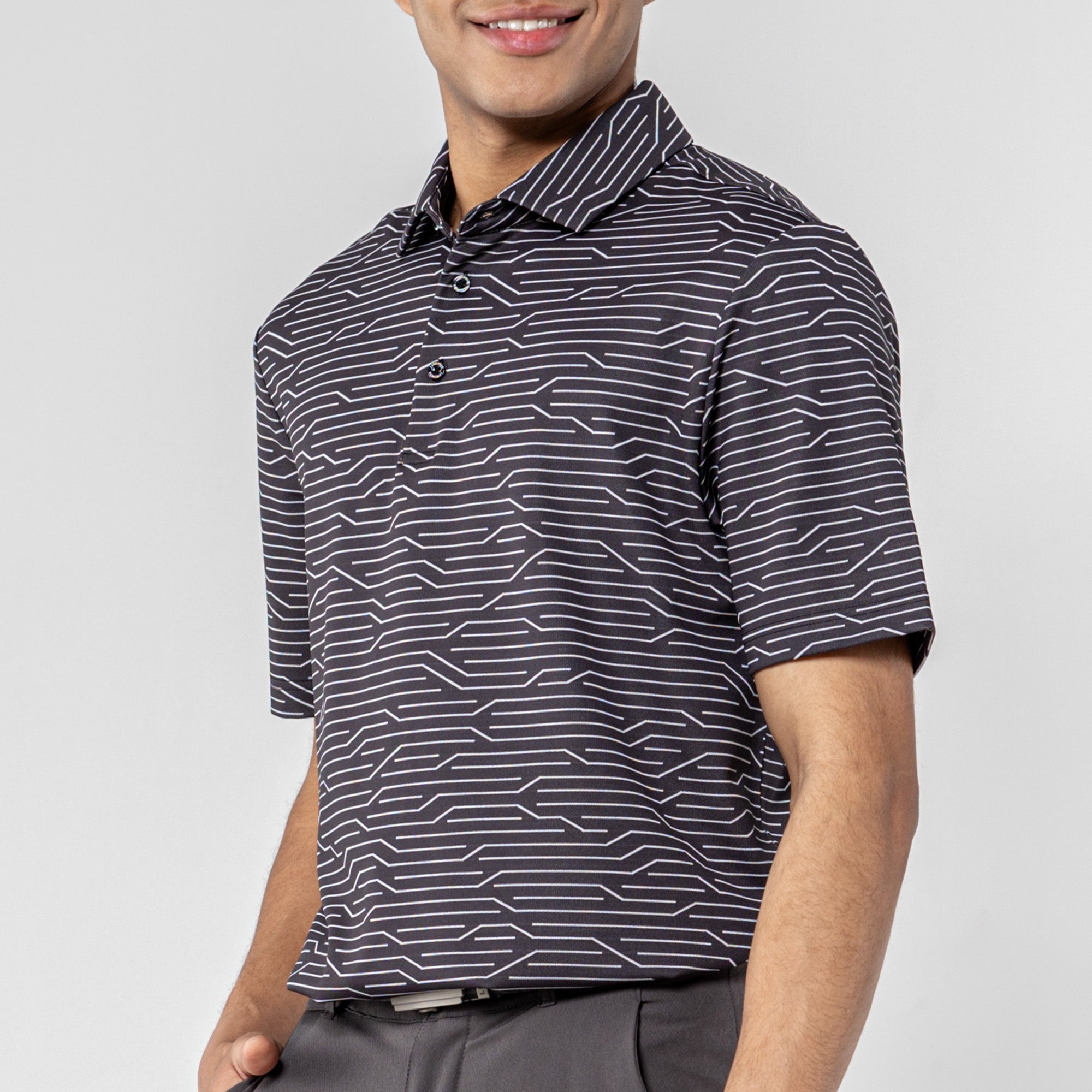 The Wired Polo is a modern twist on classic style. Crafted from a premium blend of 92% polyester and 8% spandex, this polo features a striking geometric jacquard knit for a contemporary edge. The self-fabric collar, complete with a built-in collar stay, adds a touch of sophistication to your look. Elevate your wardrobe with the Wired Polo, where comfort seamlessly meets refined design for a versatile and polished appearance.