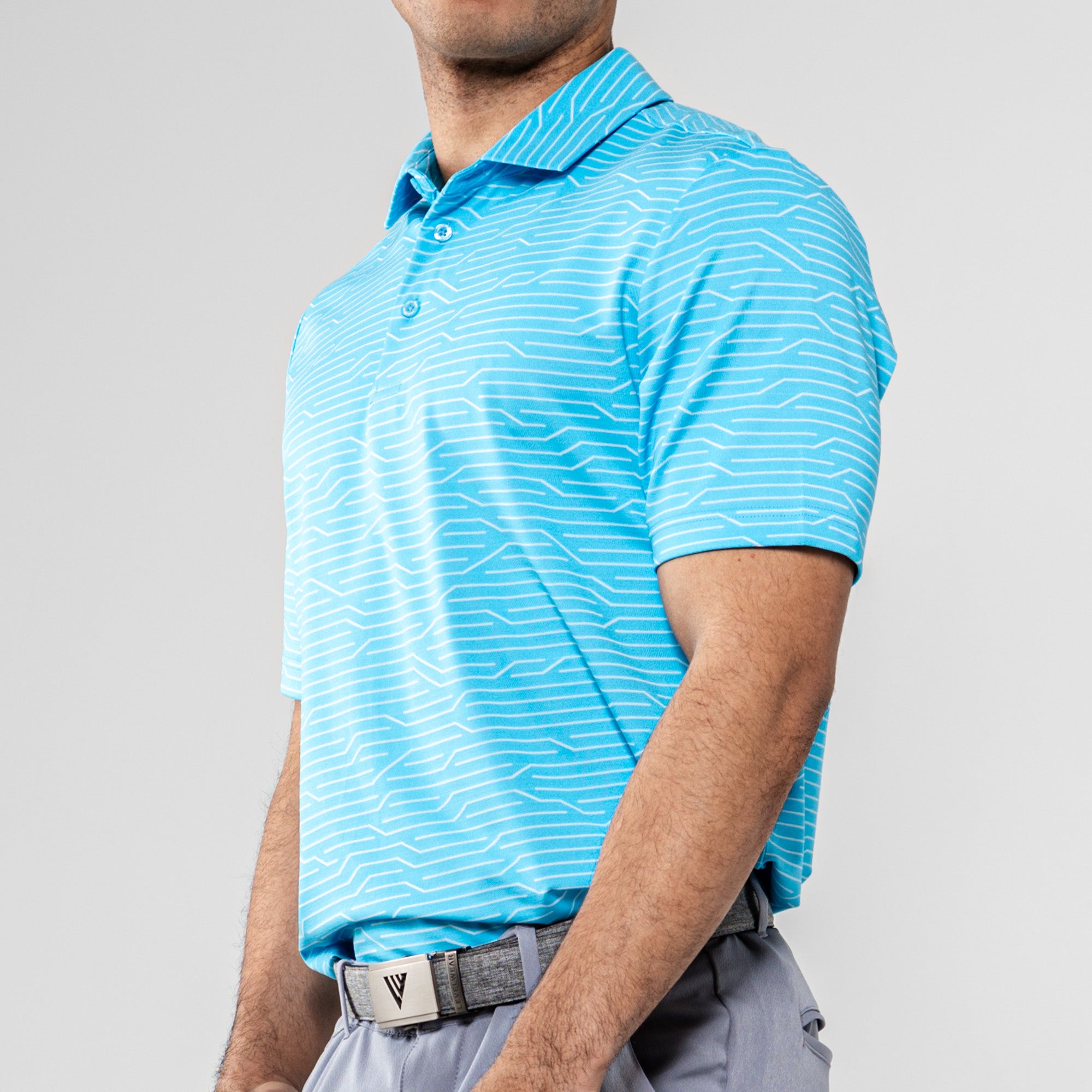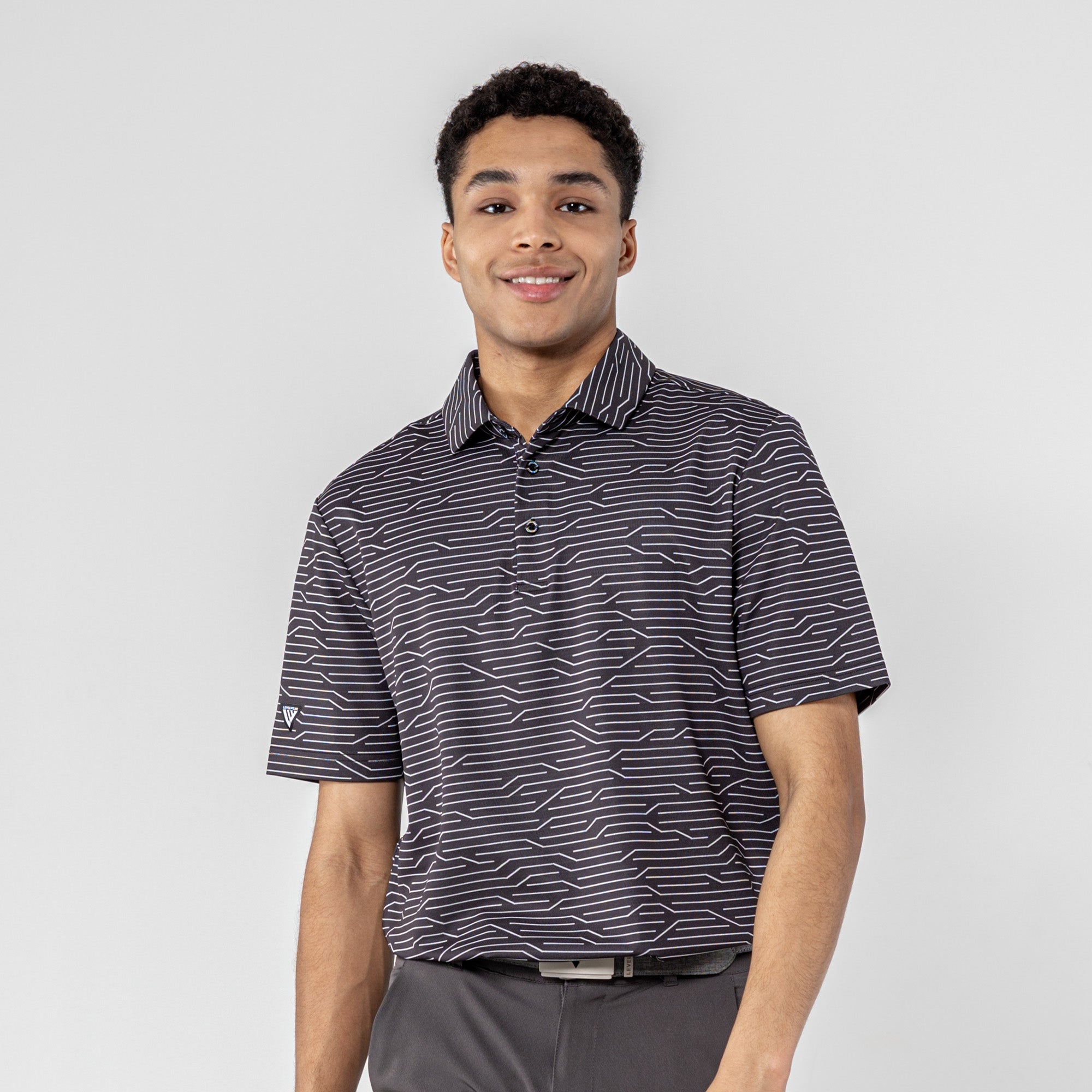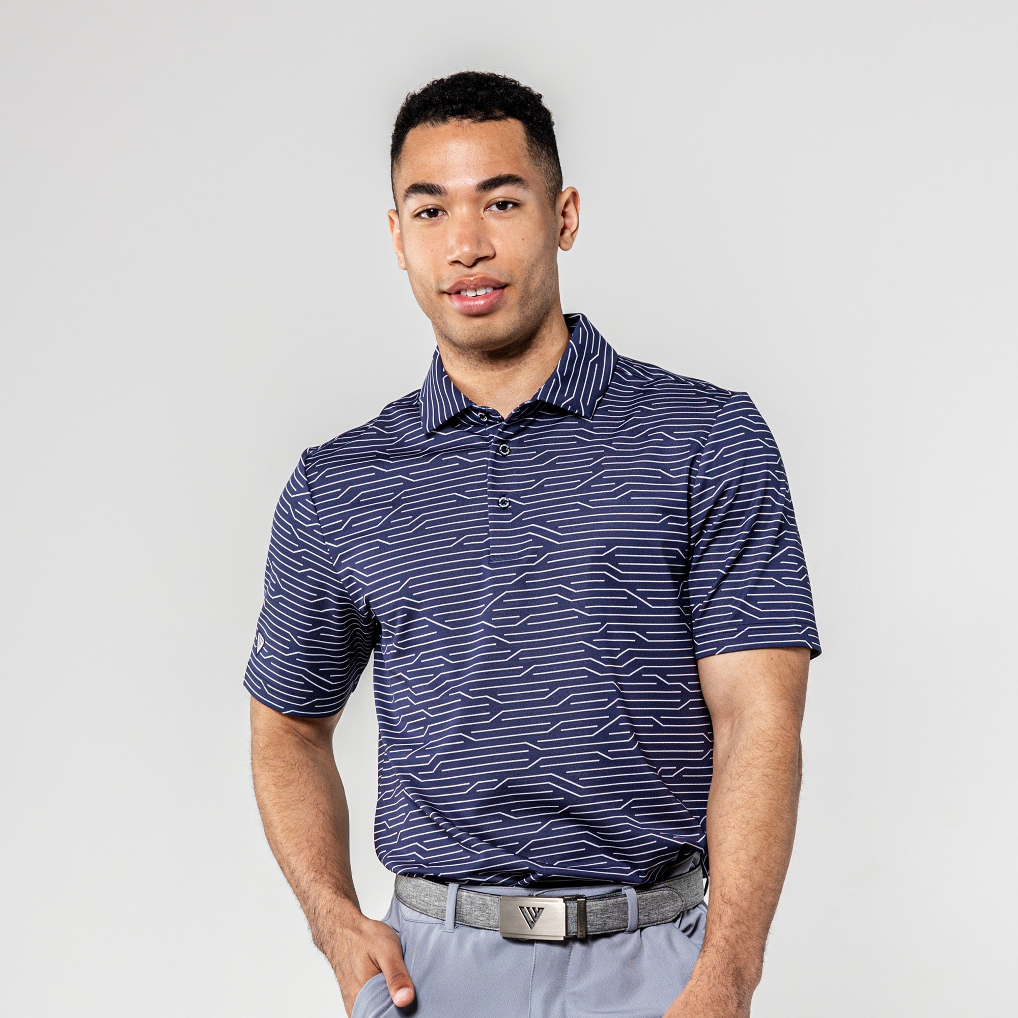 The Wired Polo is a modern twist on classic style. Crafted from a premium blend of 92% polyester and 8% spandex, this polo features a striking geometric jacquard knit for a contemporary edge. The self-fabric collar, complete with a built-in collar stay, adds a touch of sophistication to your look. Elevate your wardrobe with the Wired Polo, where comfort seamlessly meets refined design for a versatile and polished appearance.