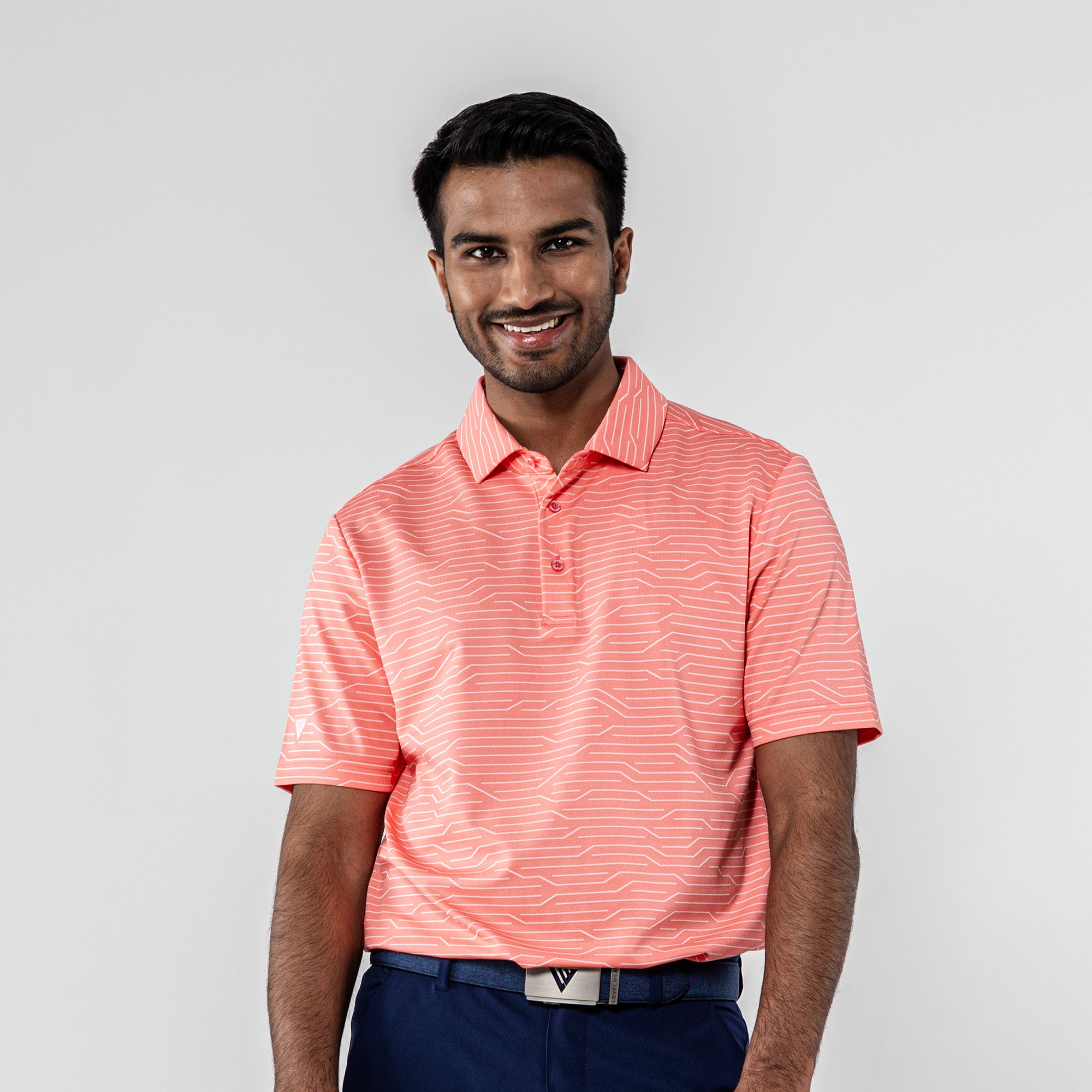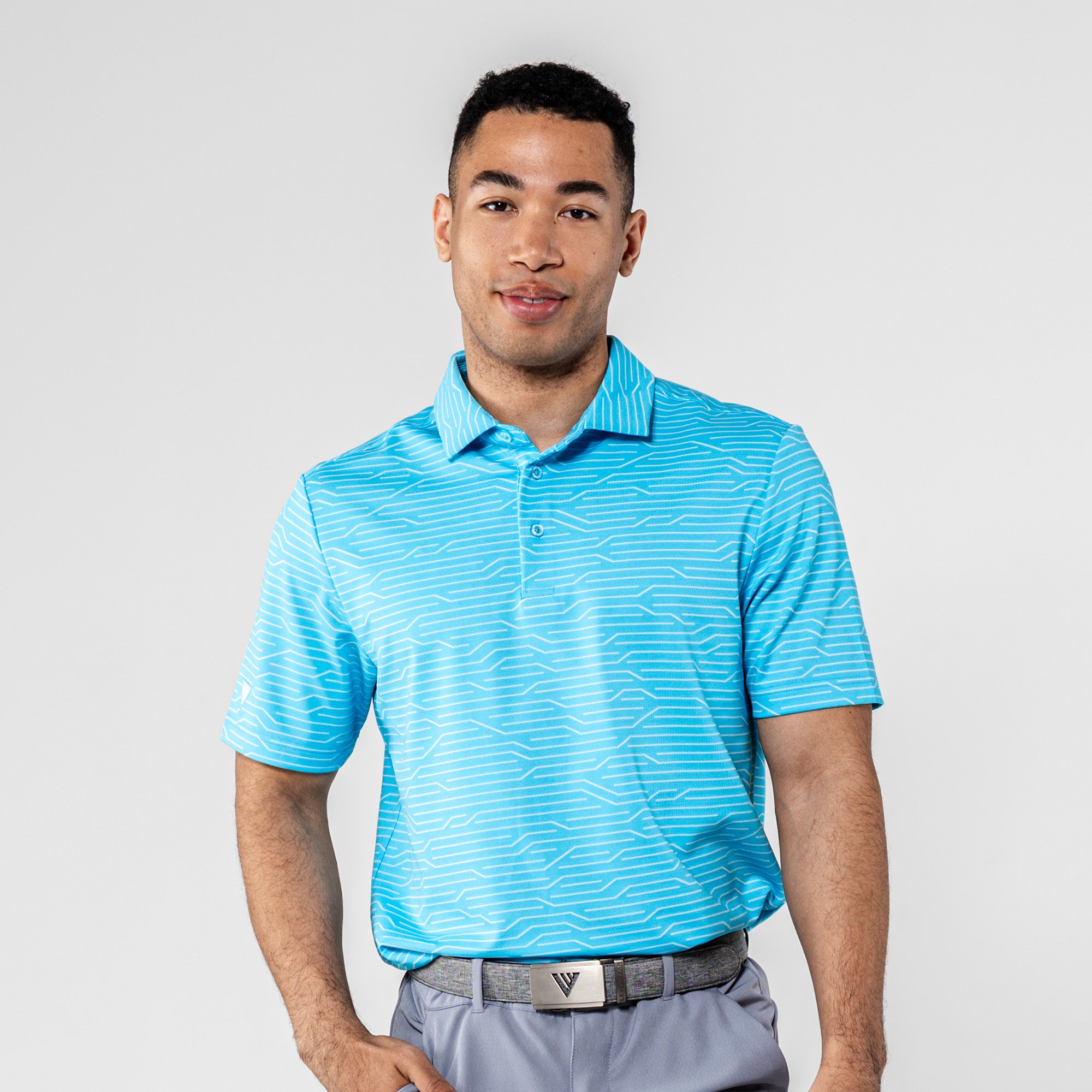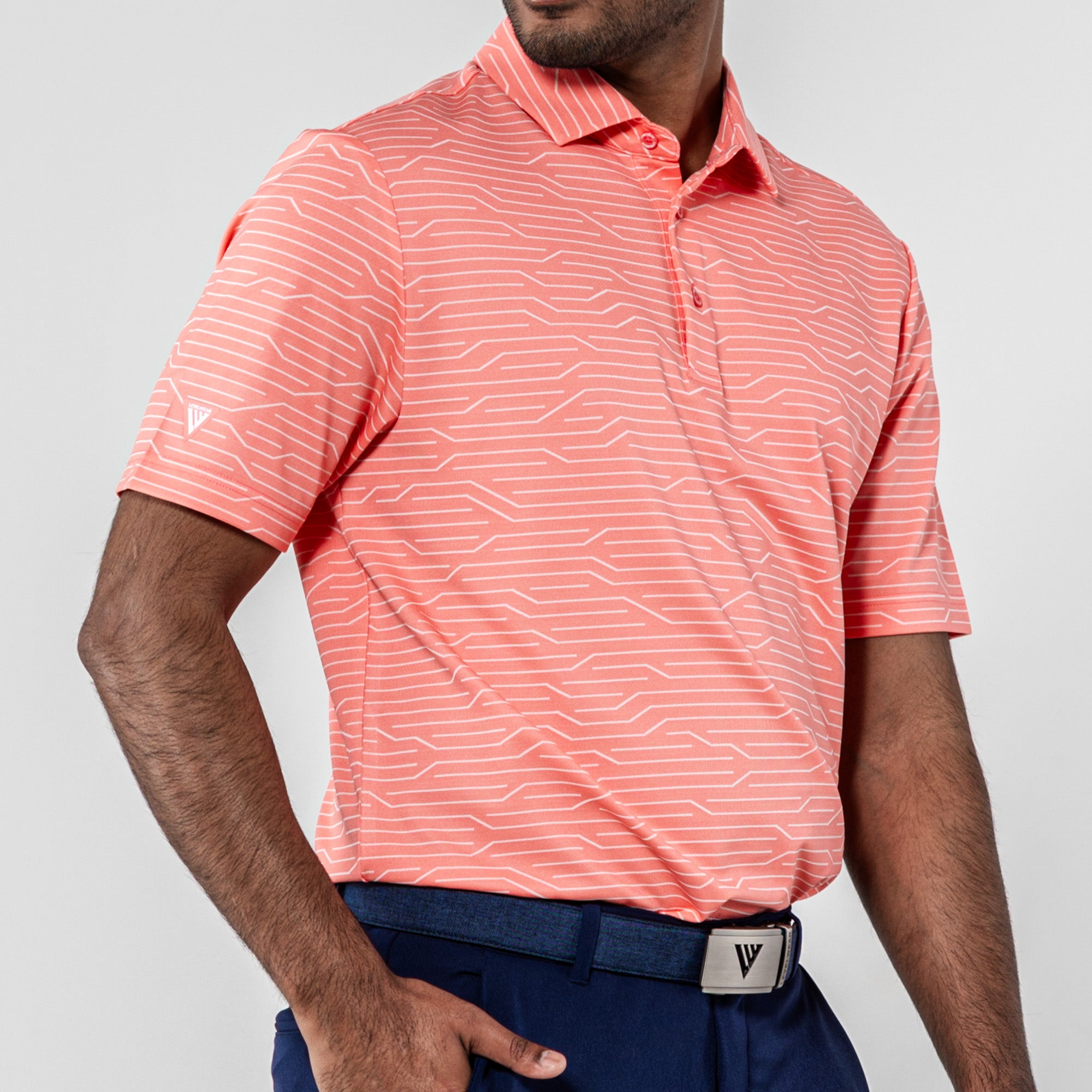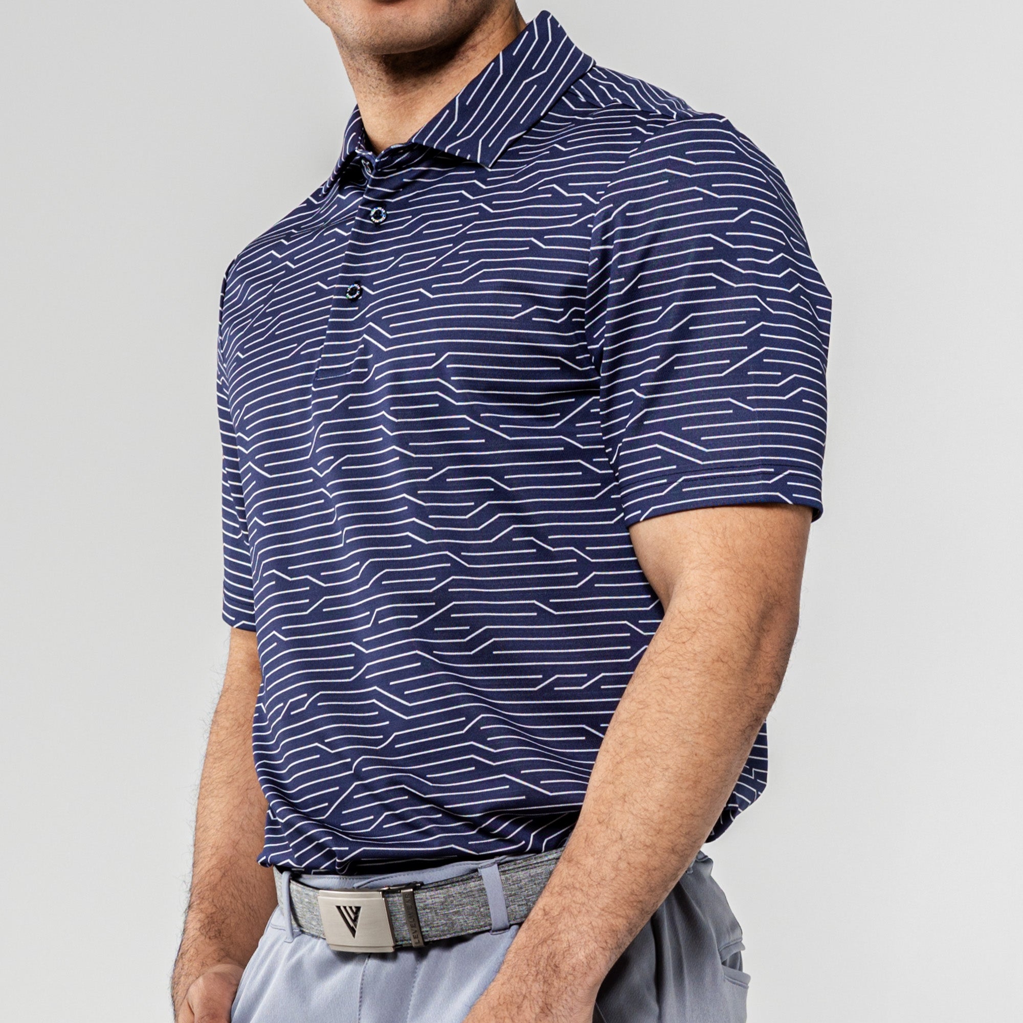The Wired Polo is a modern twist on classic style. Crafted from a premium blend of 92% polyester and 8% spandex, this polo features a striking geometric jacquard knit for a contemporary edge. The self-fabric collar, complete with a built-in collar stay, adds a touch of sophistication to your look. Elevate your wardrobe with the Wired Polo, where comfort seamlessly meets refined design for a versatile and polished appearance.